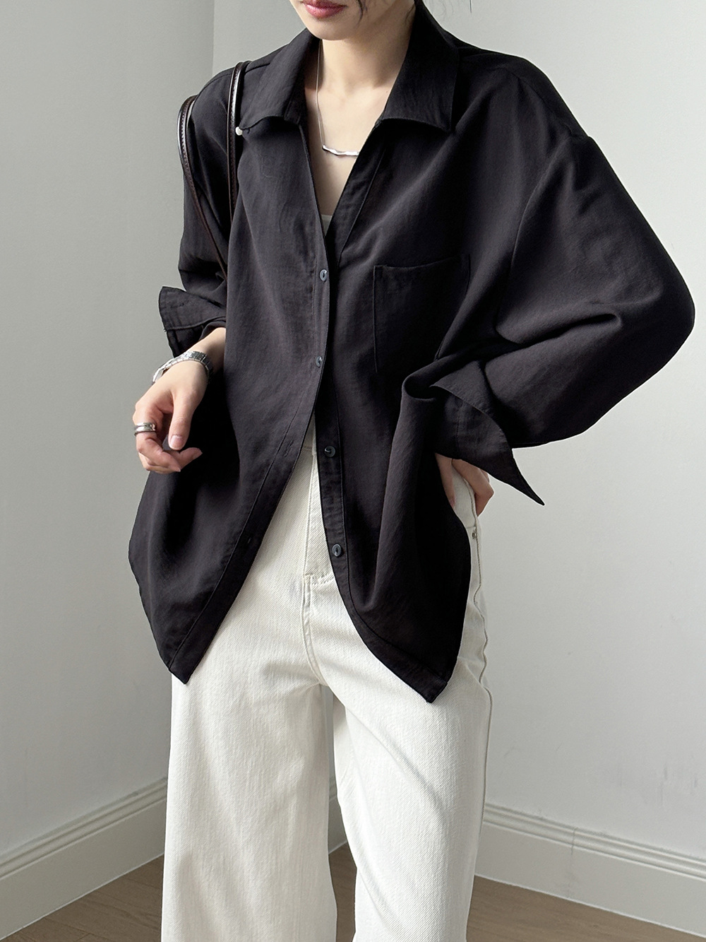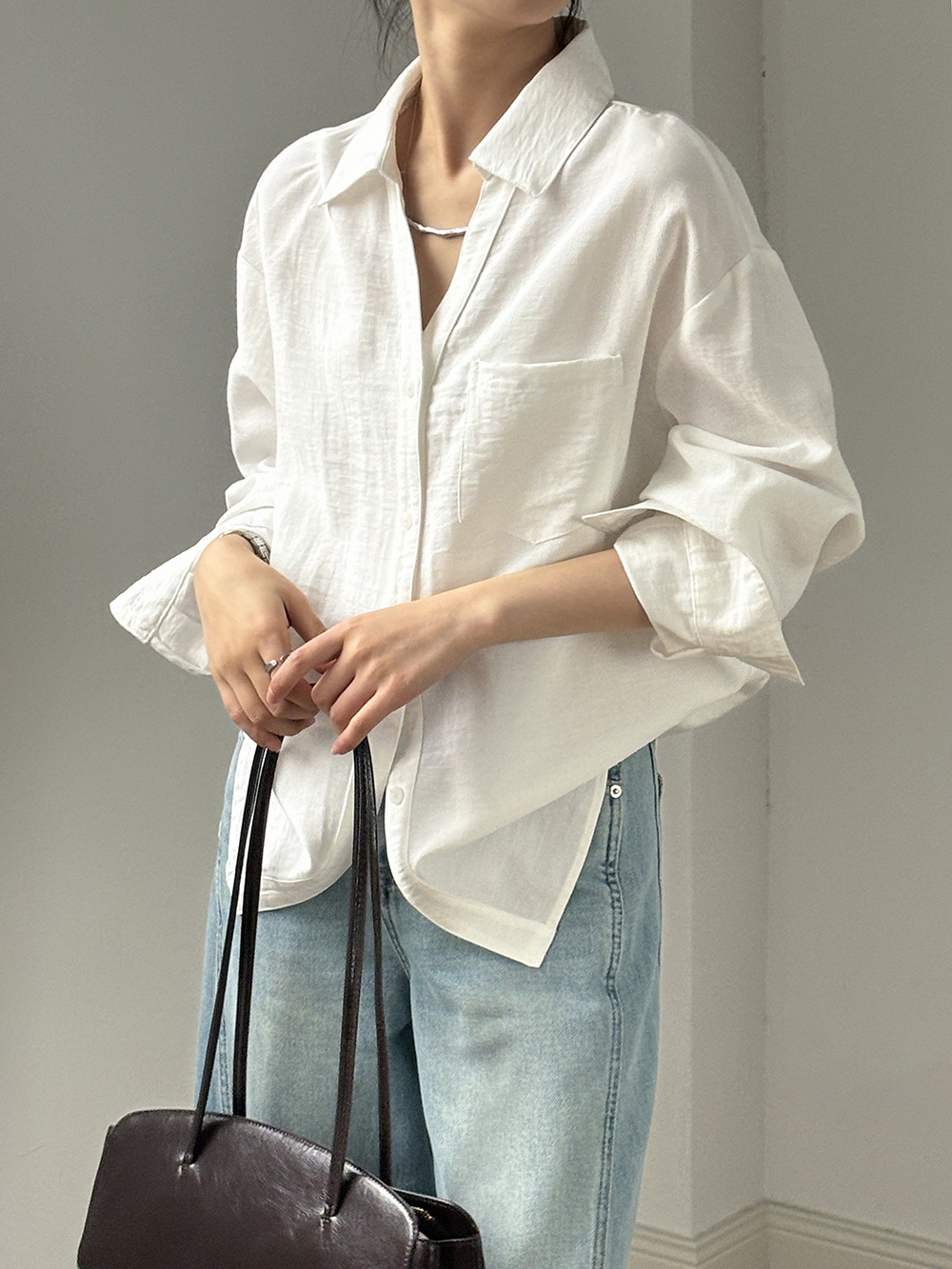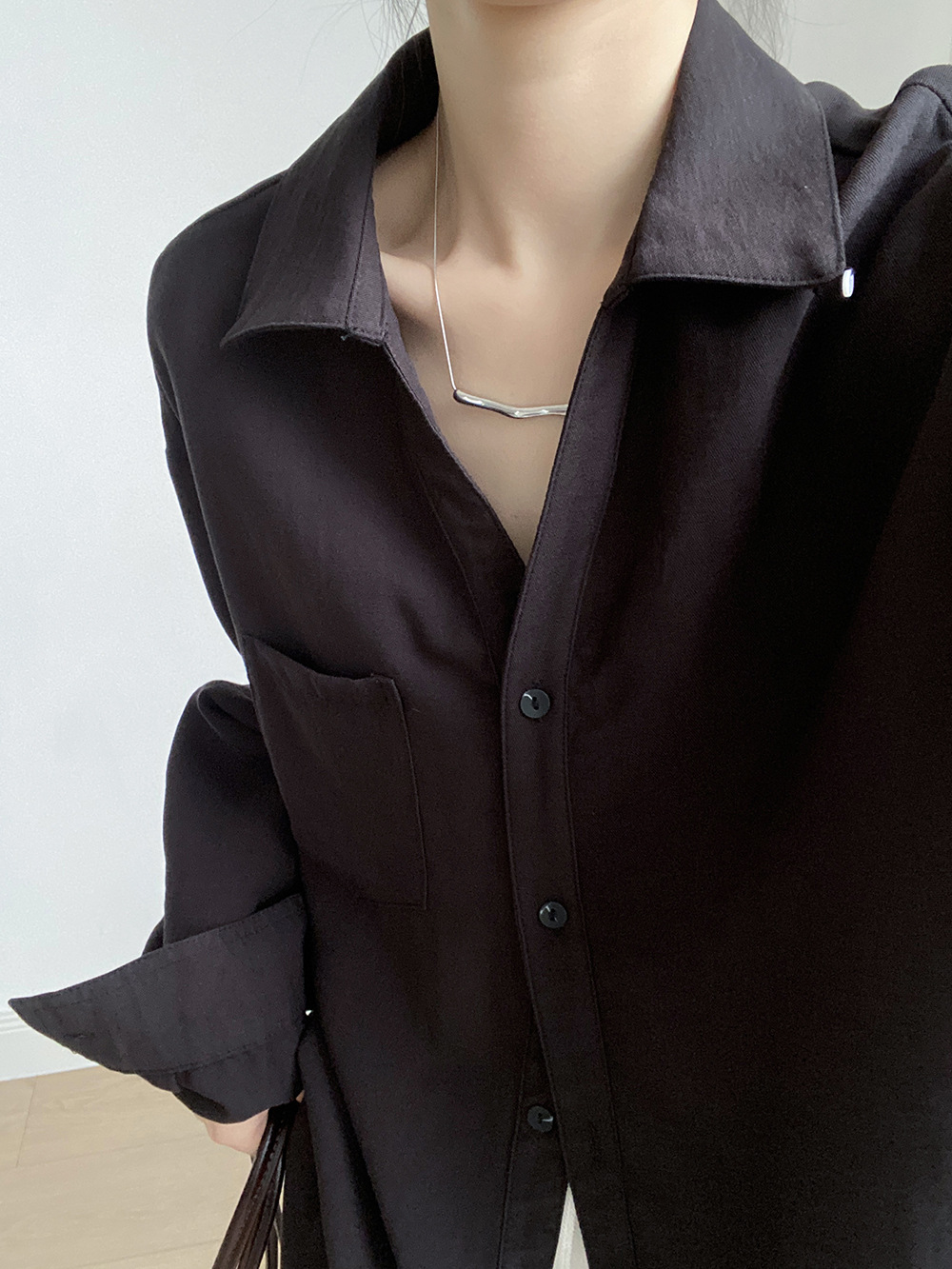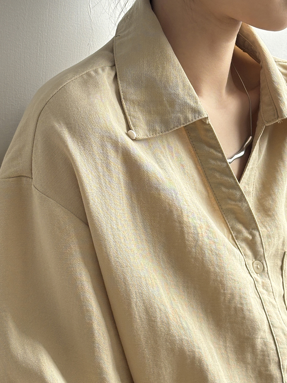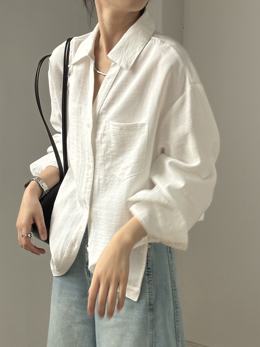 【专柜品牌品质】亚麻天丝棉V领衬衫 春夏季简约休闲长袖宽松上衣82209