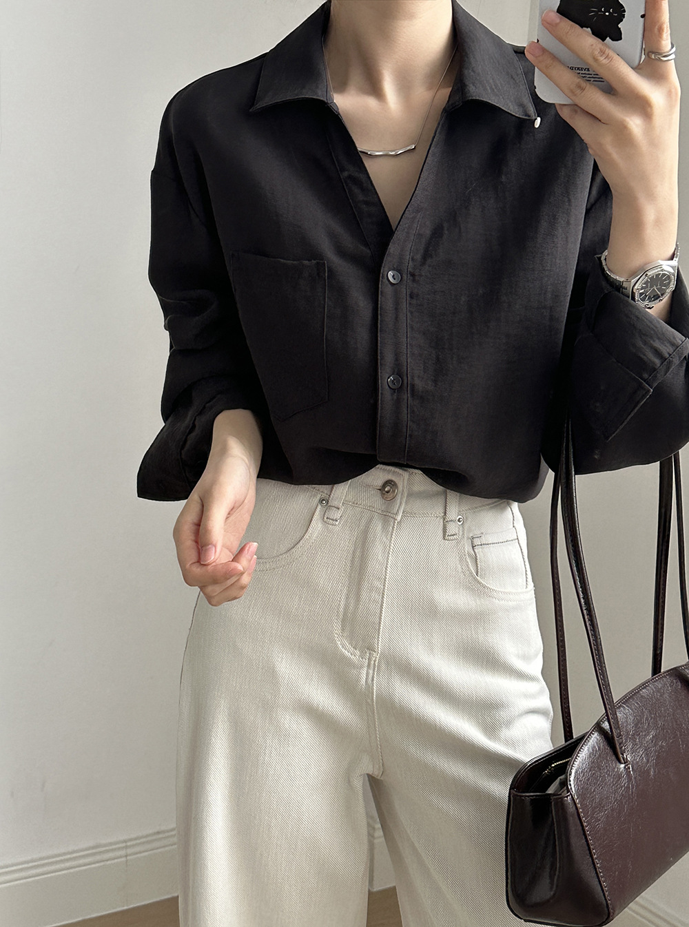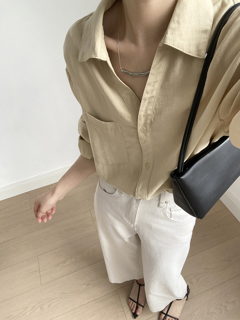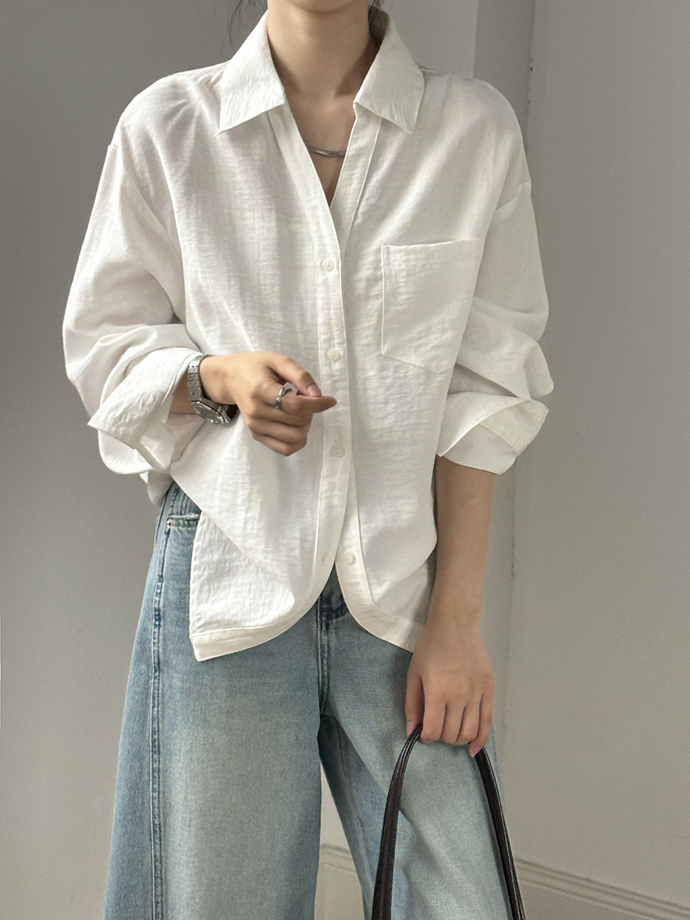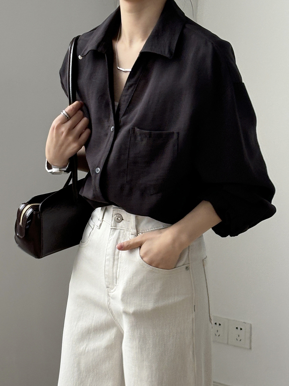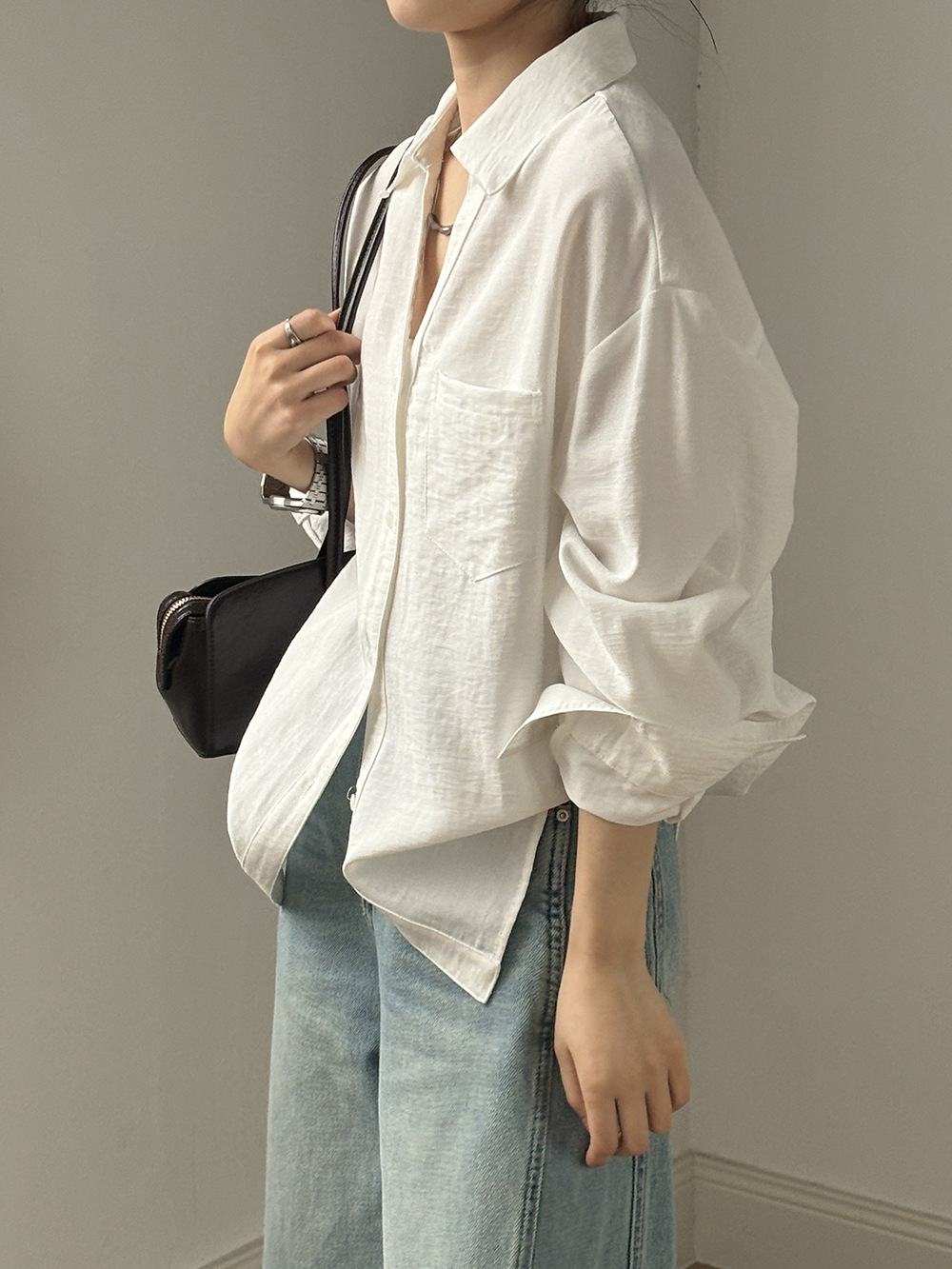 【专柜品牌品质】亚麻天丝棉V领衬衫 春夏季简约休闲长袖宽松上衣82209