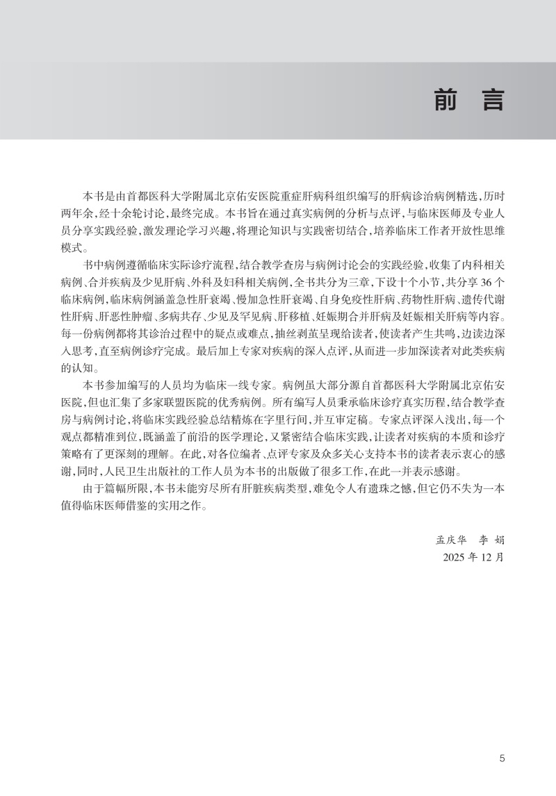 以肝病的多种临床问题为纲,每个临床问题精选典型病例和疑难病例,共约36个病例,突出病例的特点和代表性,强调对临床思维路径的解读。编写采用模块式形式,包括病史简介、诊治过程、点评分析等内容,最大的亮点是灵活穿插在诊治过程描写中体现的临床思维和转折点。本书立足临床实战,服务基层与专科并重,契合当前国家推动优质医疗资源下沉、加强专科医师能力建设的战略方向。作为一本高水平的临床案例集,不仅可用于住院医师规范化培训、专科进修学习,也可作为临床教学查房参考资料。