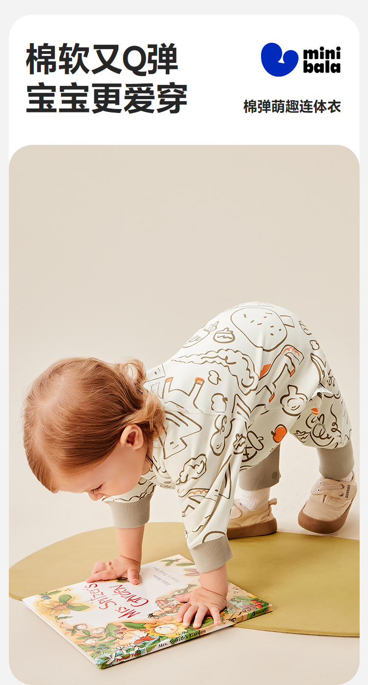 迷你巴拉新生儿连体衣宝宝衣服萌趣婴儿爬服柔软亲肤包屁衣