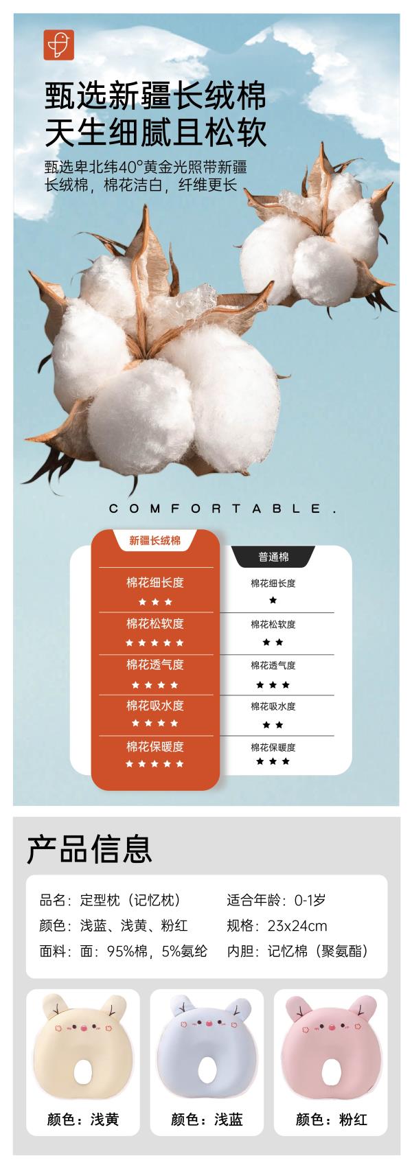 [新生儿定型枕]卓儿婴儿记忆枕头可爱安抚枕宝宝纠正头型枕柔软神器