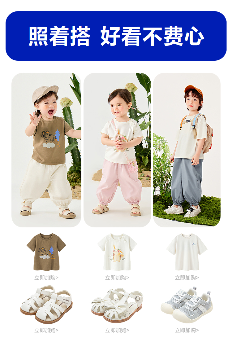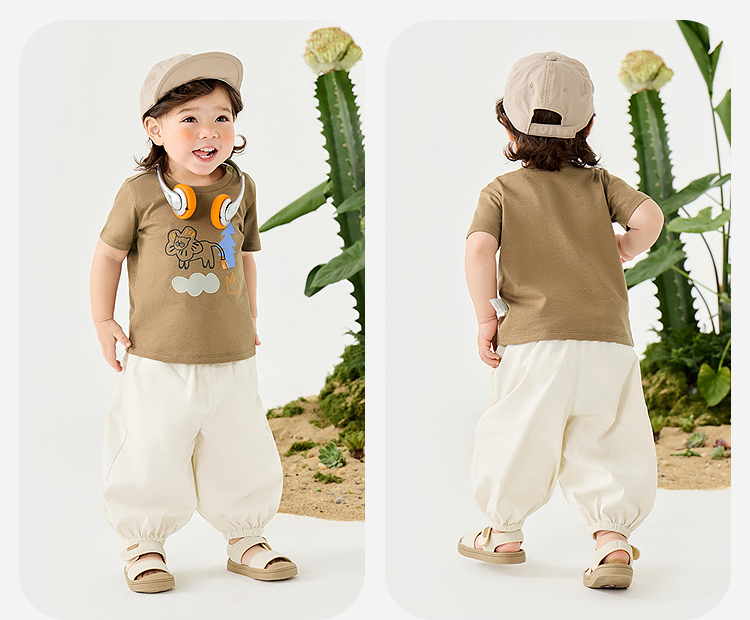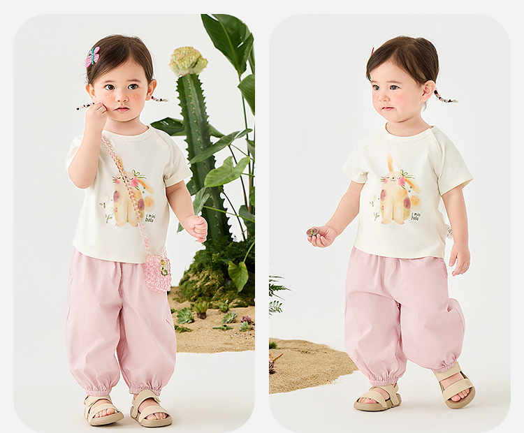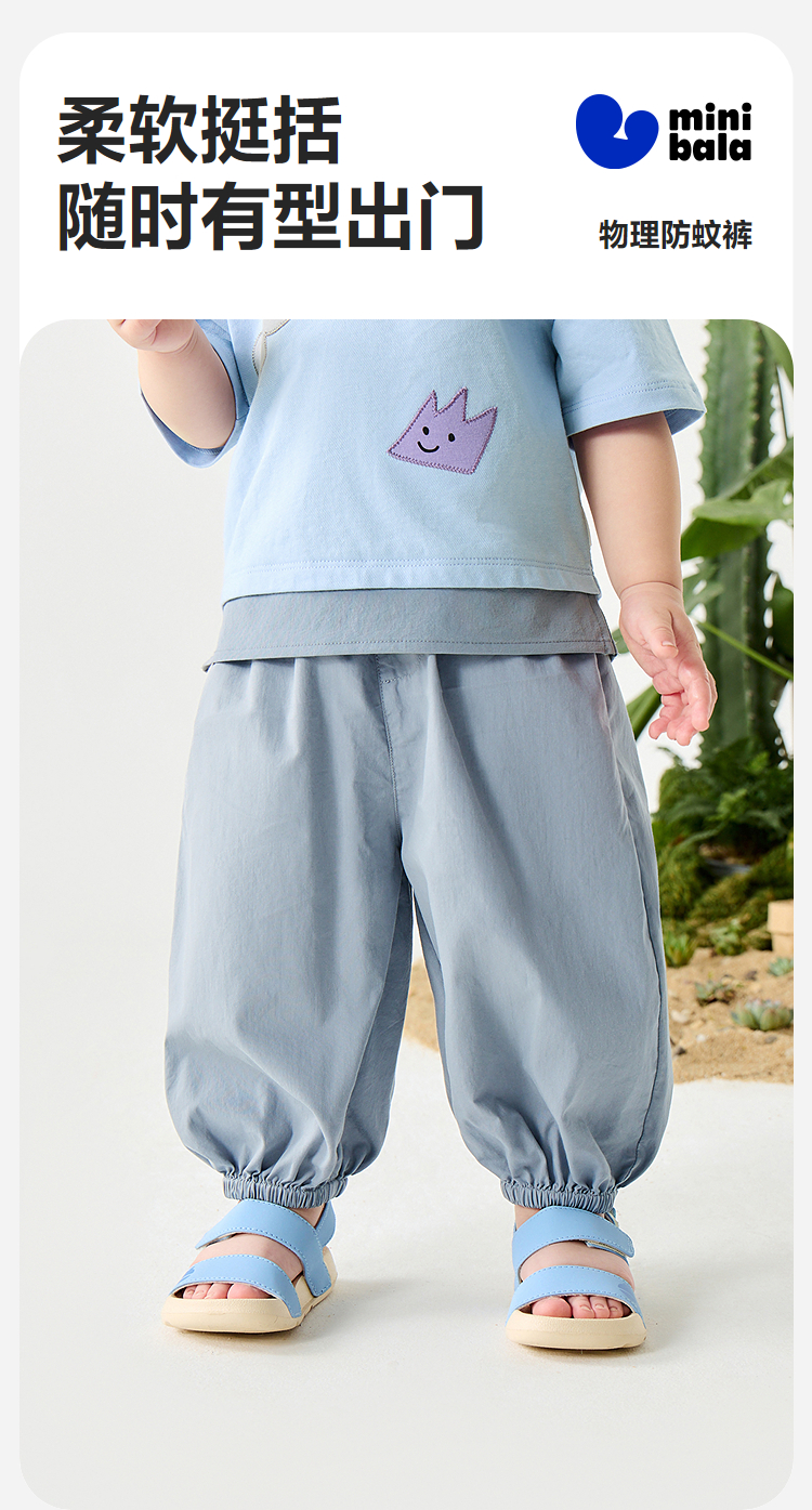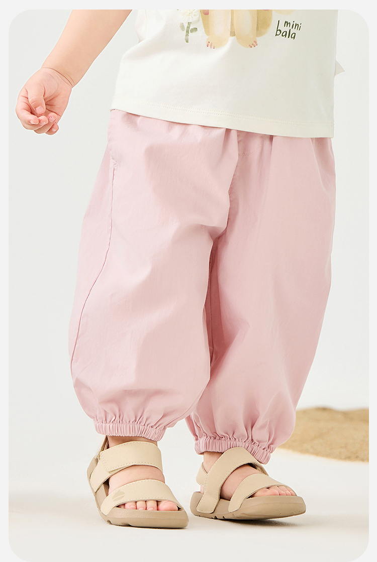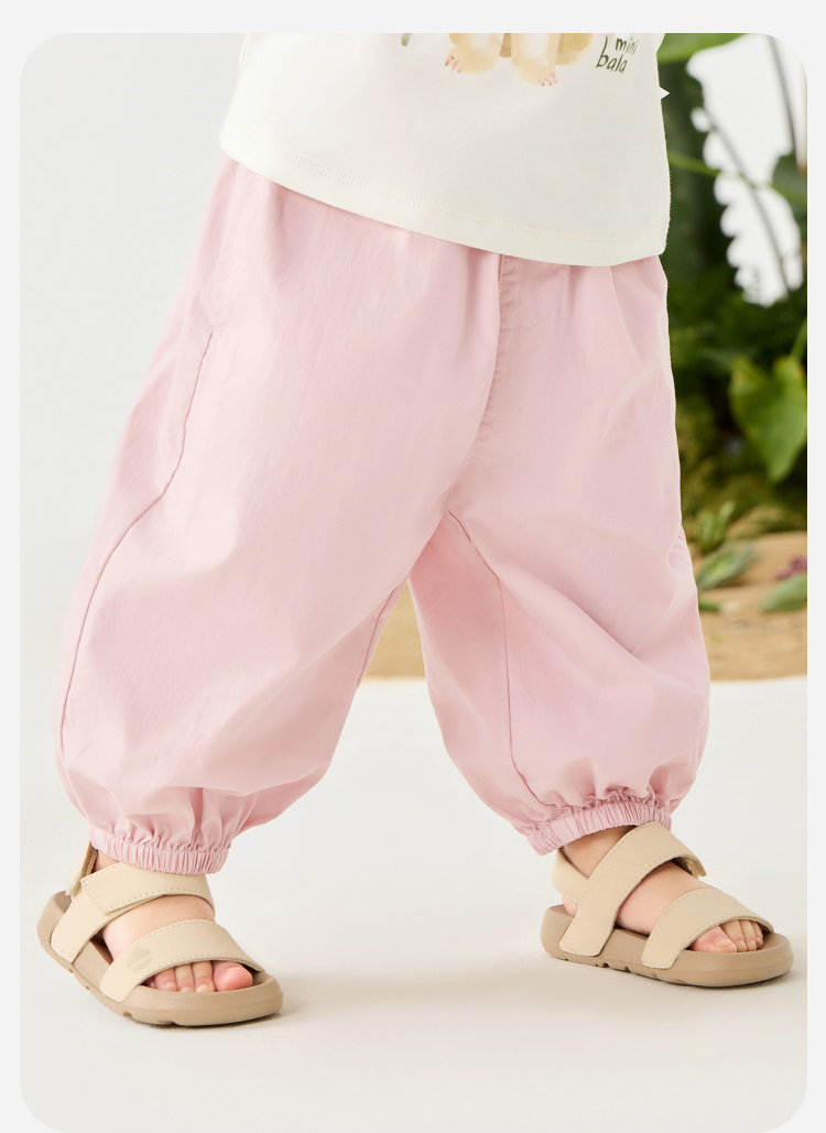 迷你巴拉男女童裤子夏季亲肤轻薄束口灯笼裤长裤儿童防蚊裤