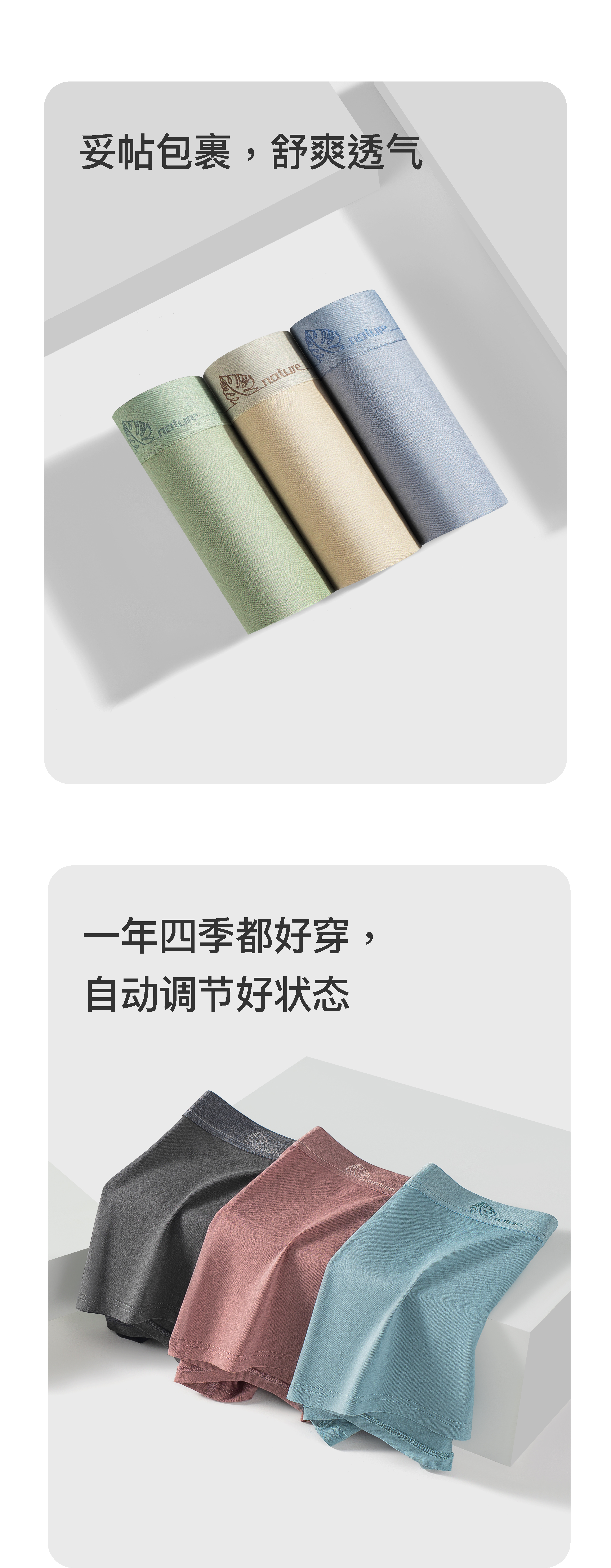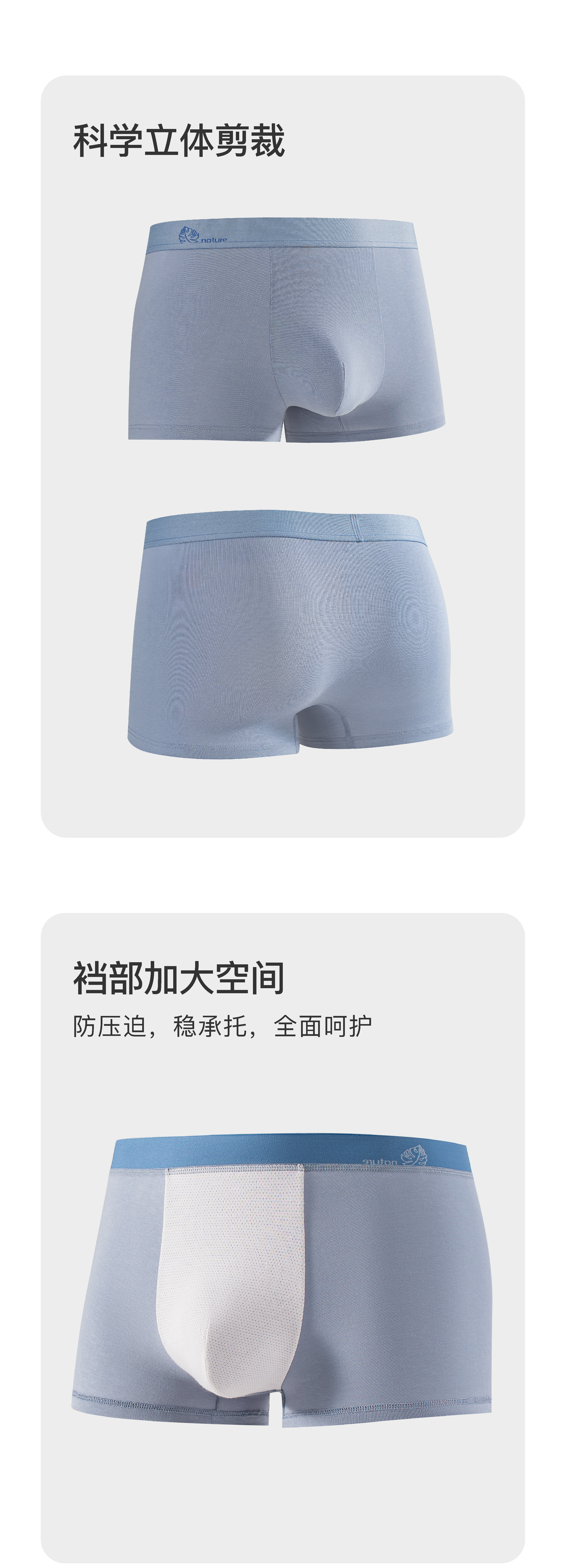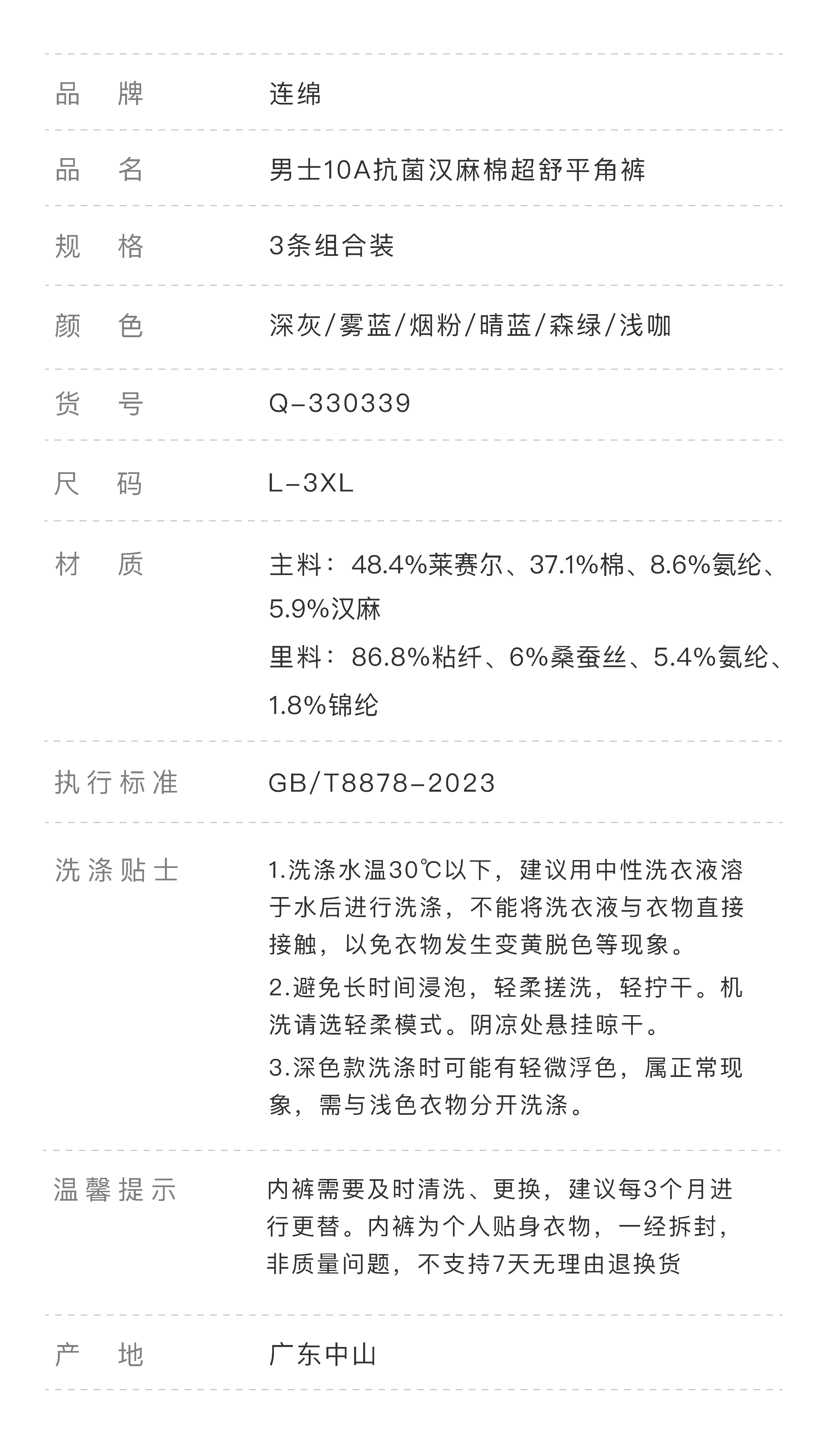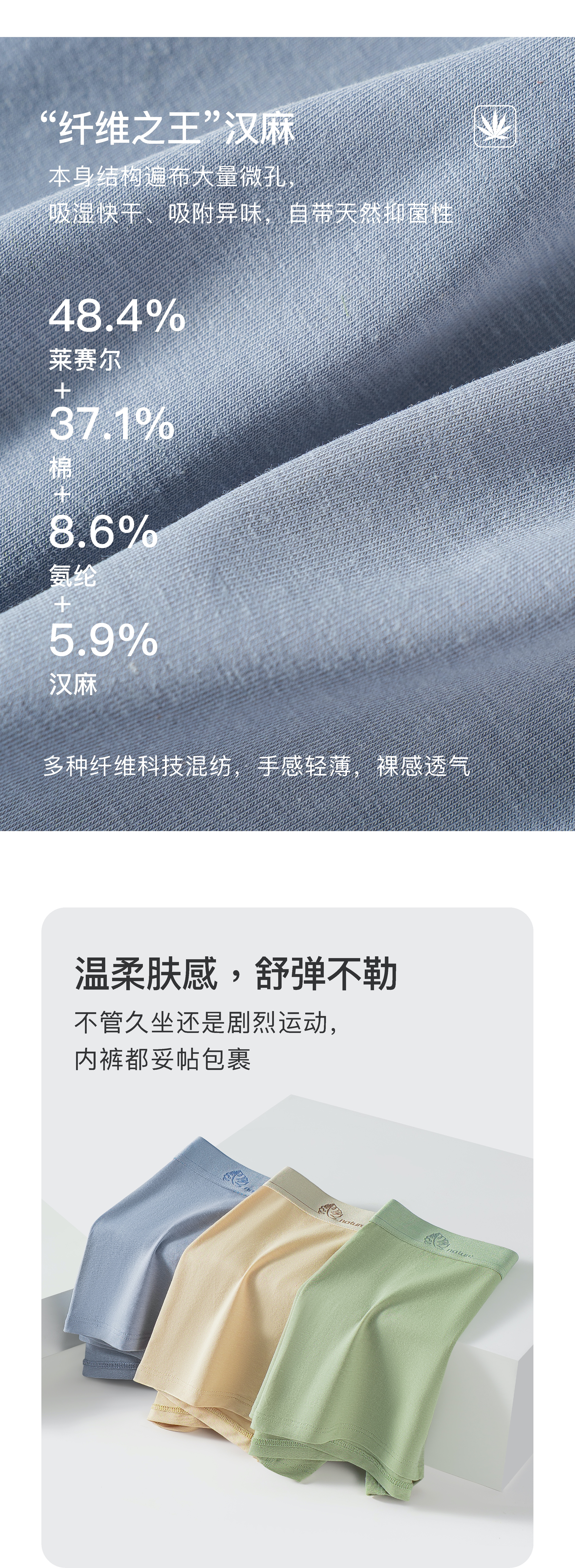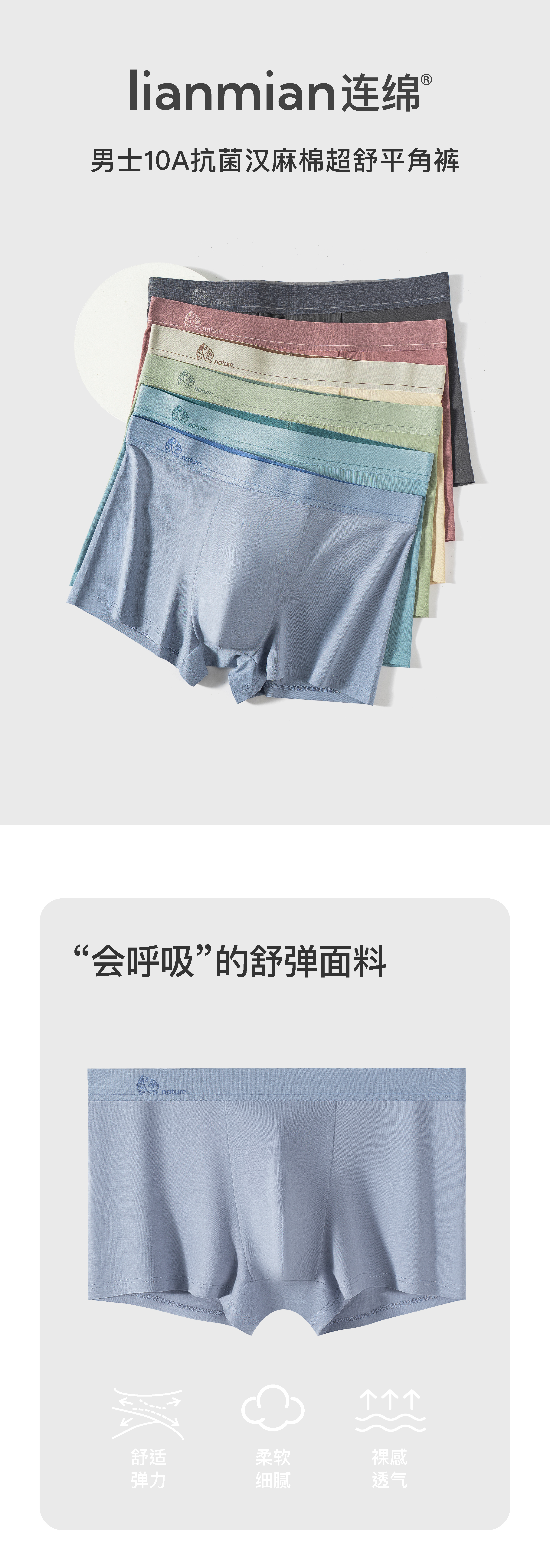 连绵·男士10A抗菌汉麻棉超舒平角裤(3条装)
