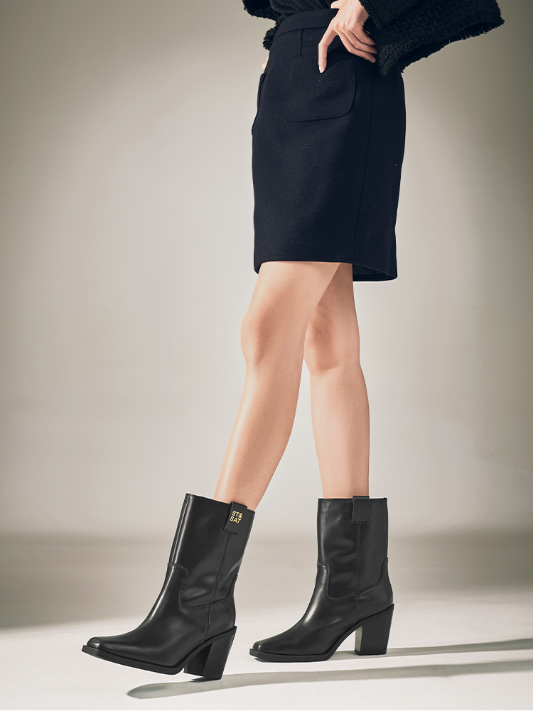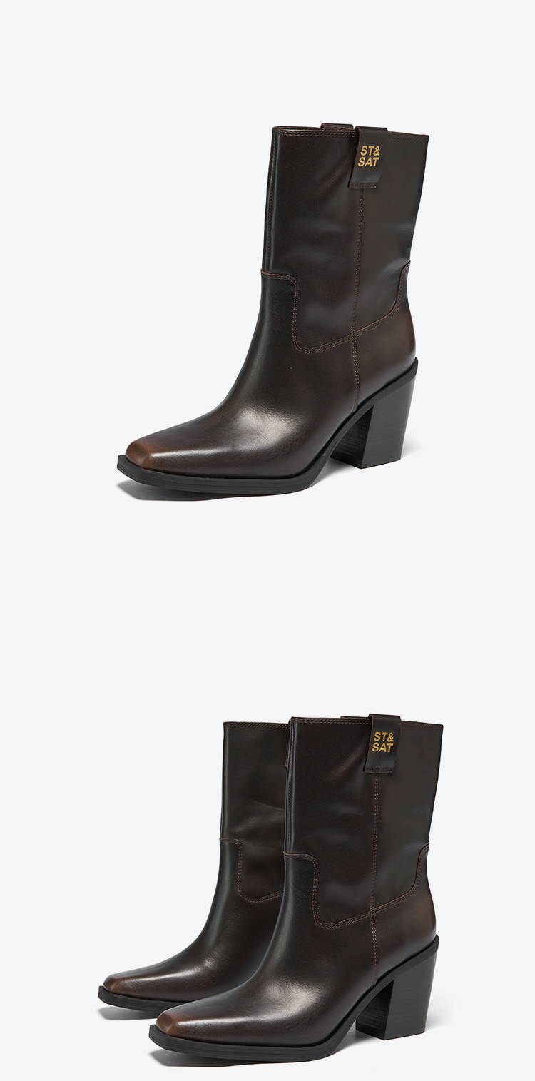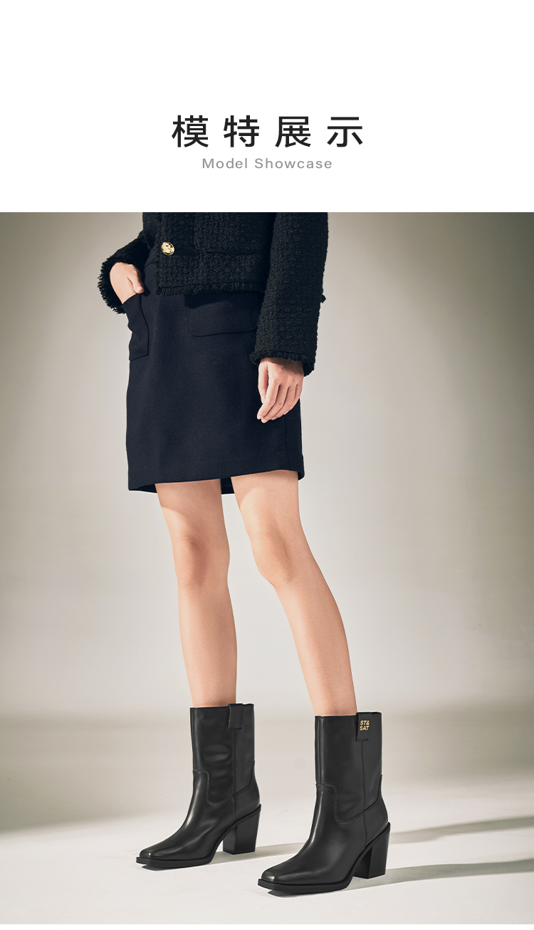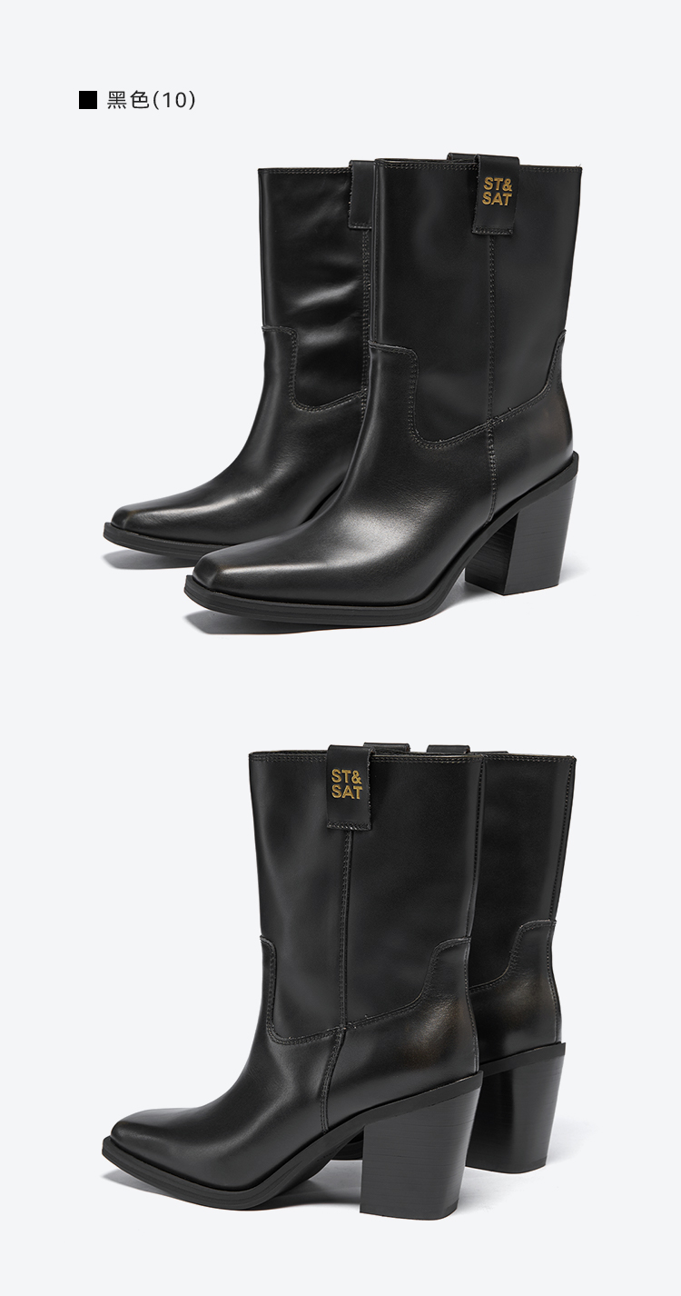 星期六复古方头潮流粗跟西部牛仔靴SSC4116421