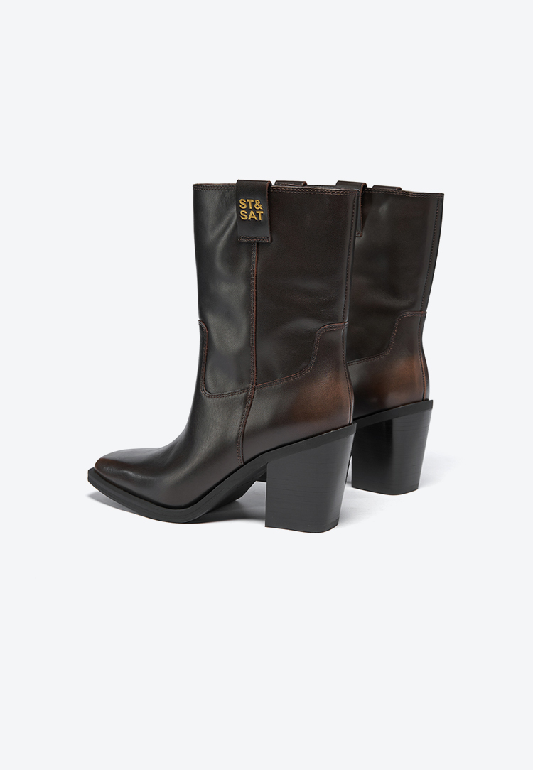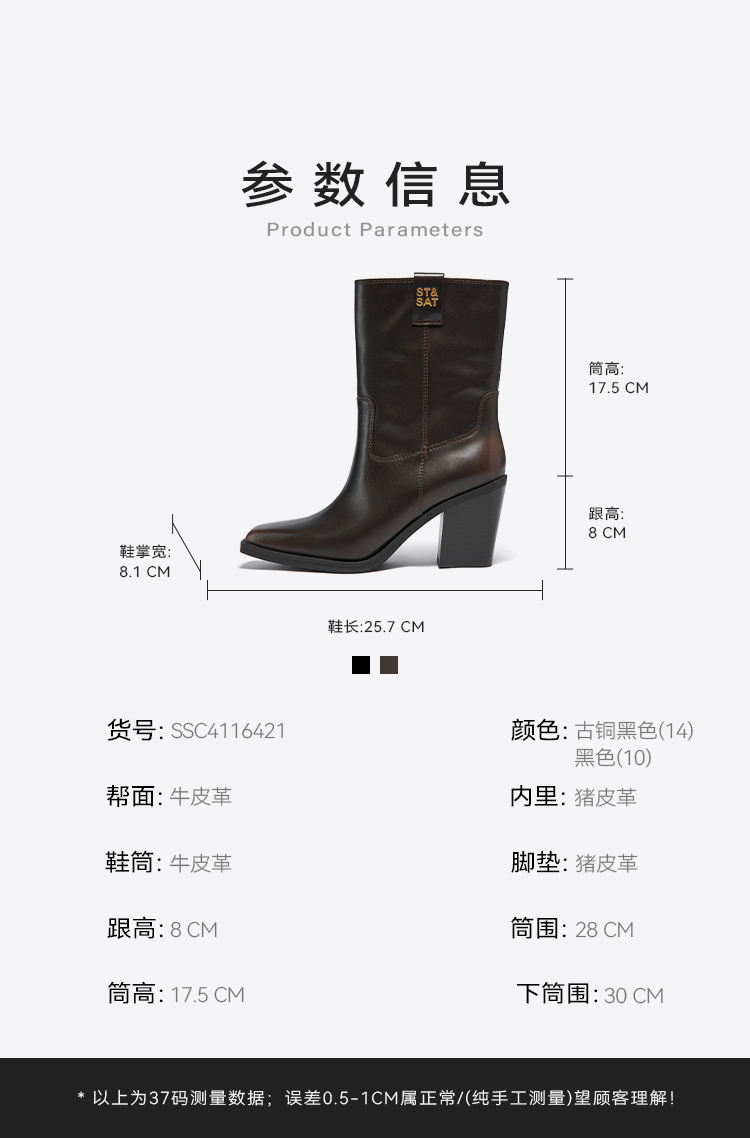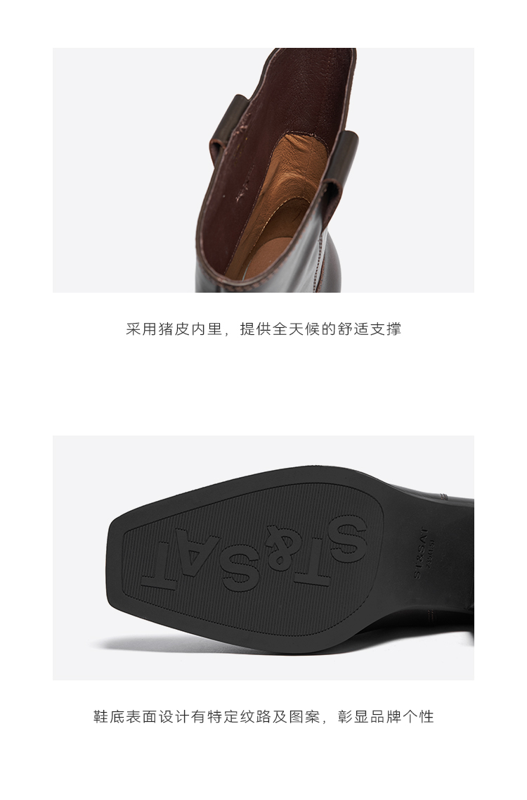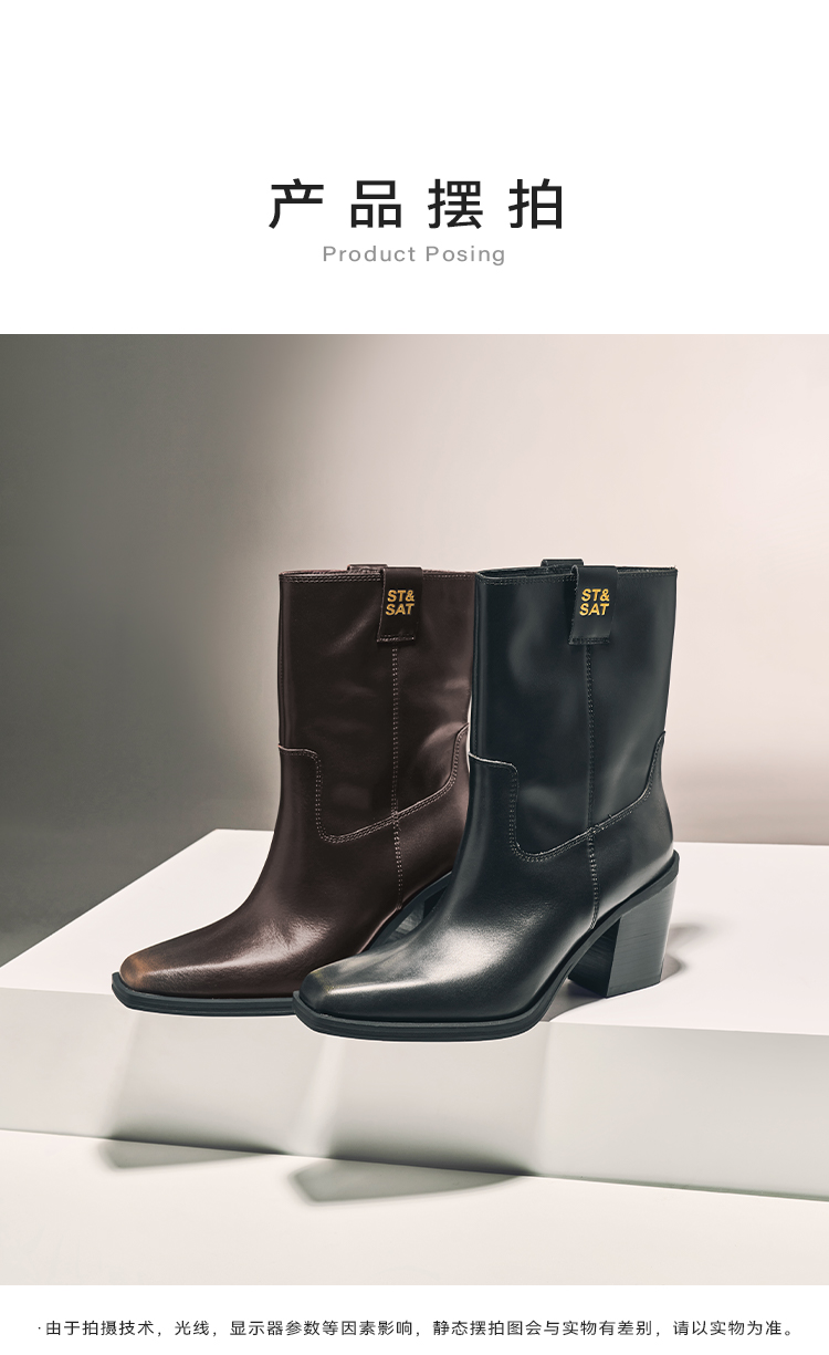 星期六复古方头潮流粗跟西部牛仔靴SSC4116421
