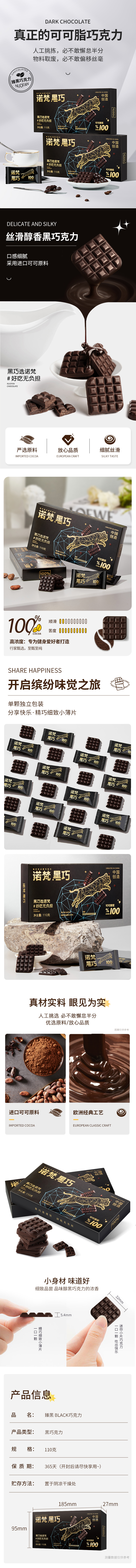 【会员专享】诺梵100%每日纯黑巧克力礼盒装可可脂散装纯脂休闲烘焙零食送女友