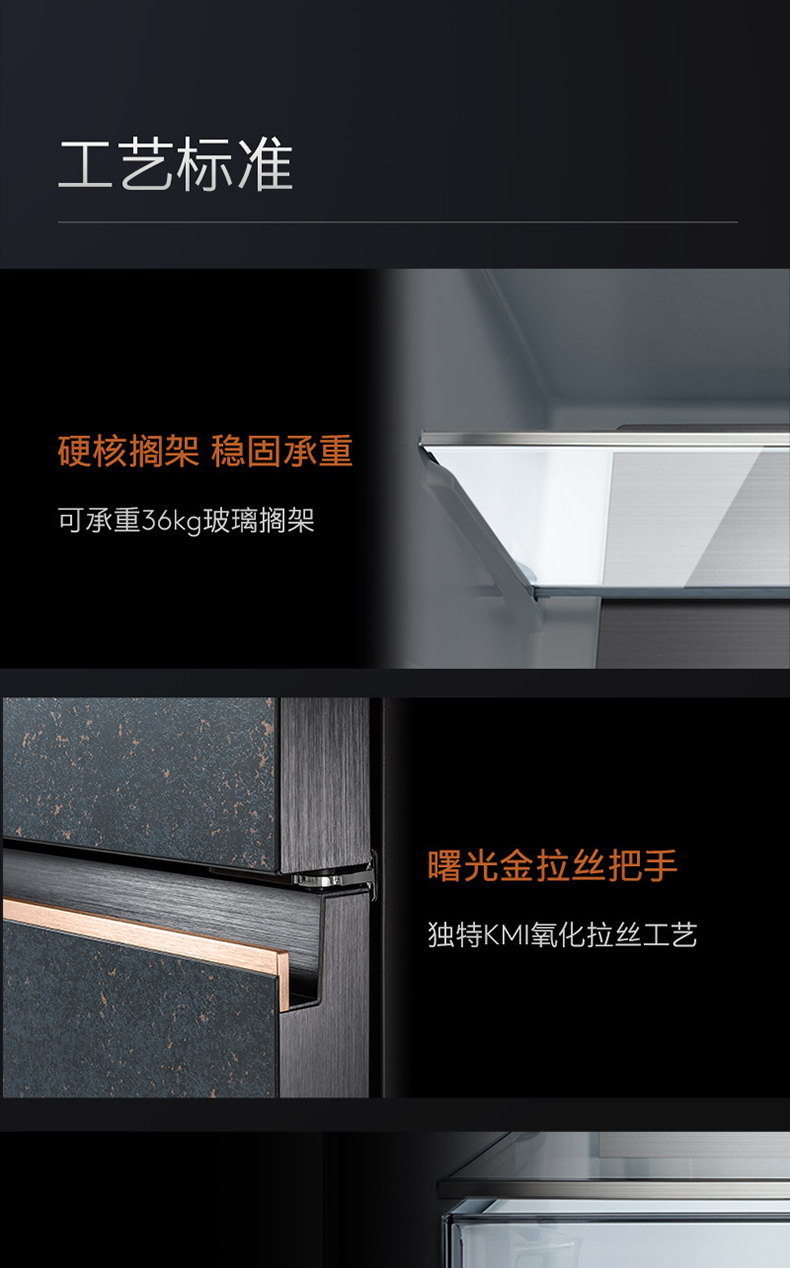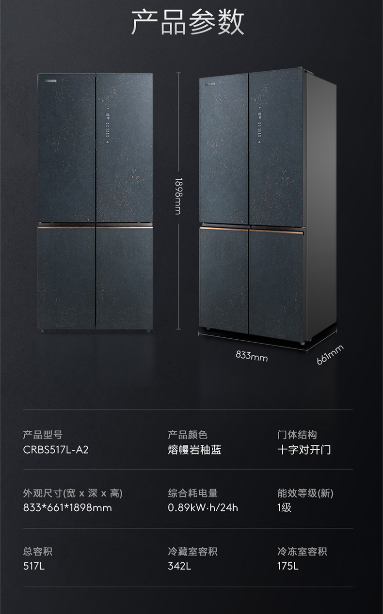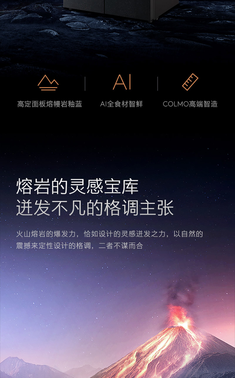 COLMO冰箱517升十字对开门变频智能微晶一周鲜高端冰箱CRBS517L-A2熔幔岩秞蓝