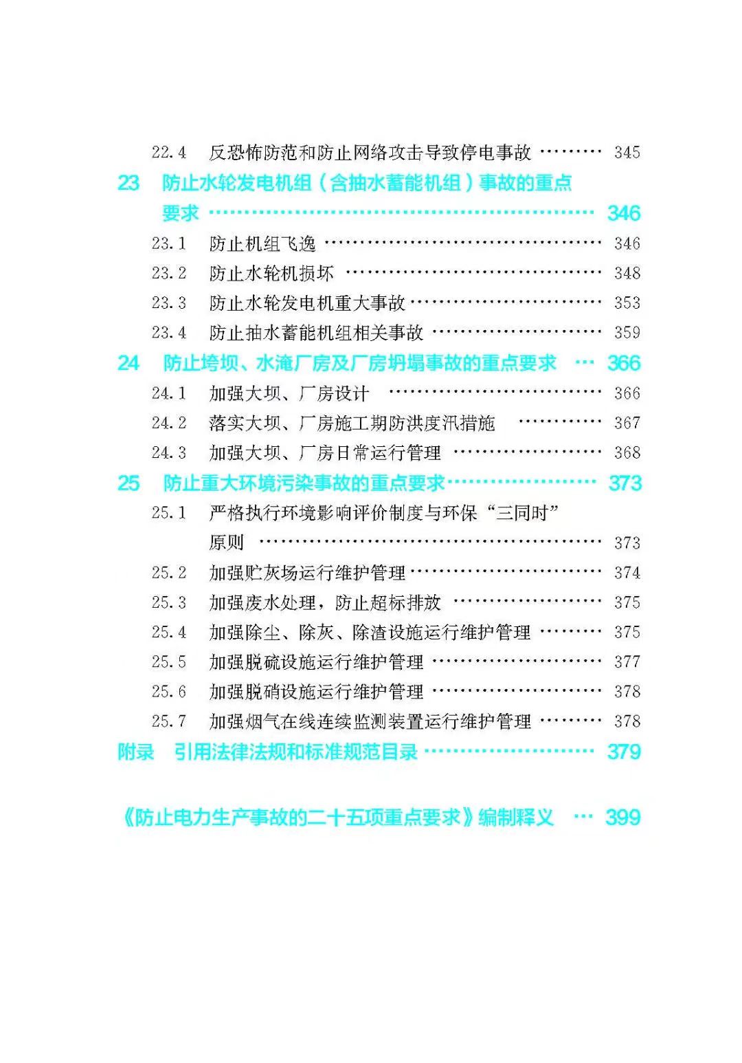 国家能源局组织编写,总结从2014年至今防止电力生产事故的成功经验,吸取事故教训,依据国家安全生产有关法律法规和标准规范,针对当前电力安全生产工作中存在的突出问题和面临的新形势,修订和完善事故预防措施。《二十五项反措及编制释义(2023年版)》适用于全国各火电厂、热电厂、水电厂、抽水蓄能电站、风电场和各电网企业、输变电企业、供电企业、农电企业,以及各设计、科研、施工单位等,覆盖面十分广泛。