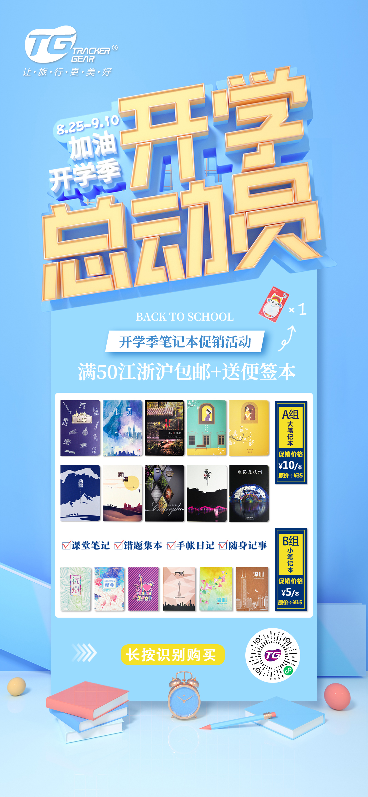 开学季笔记本单品5元起(满50元江浙沪包邮送励志便签本·状元)