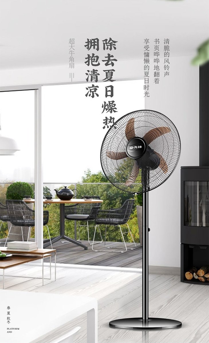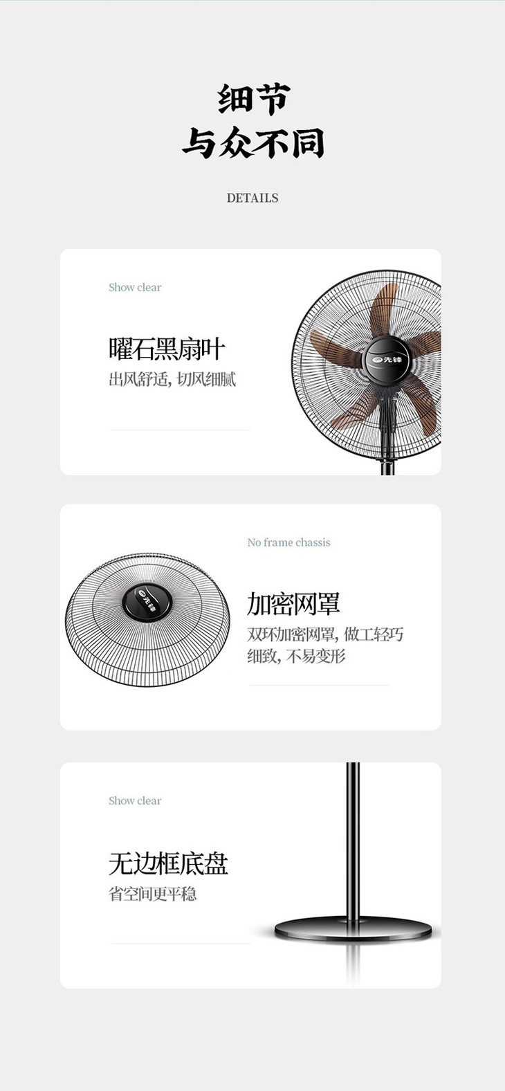 先锋(SINGFUN)电风扇/落地扇/工业风扇/立式大风量风扇FS45-19A 黑色【XF】产地直发