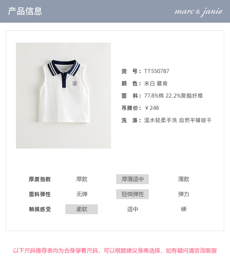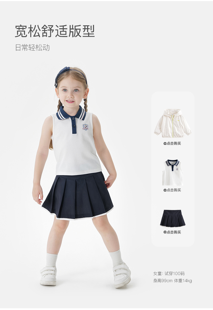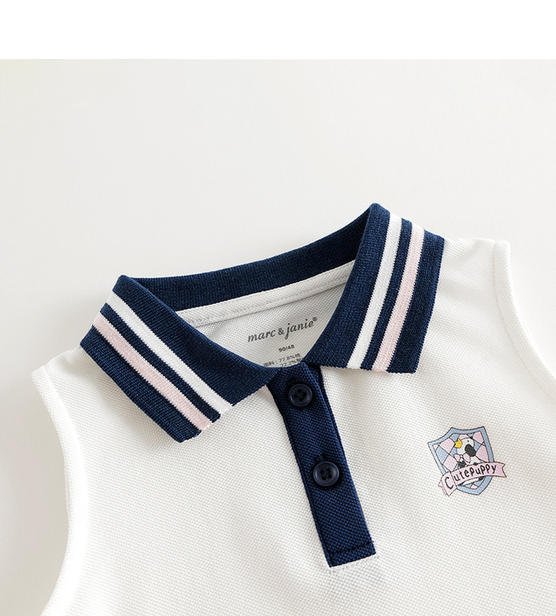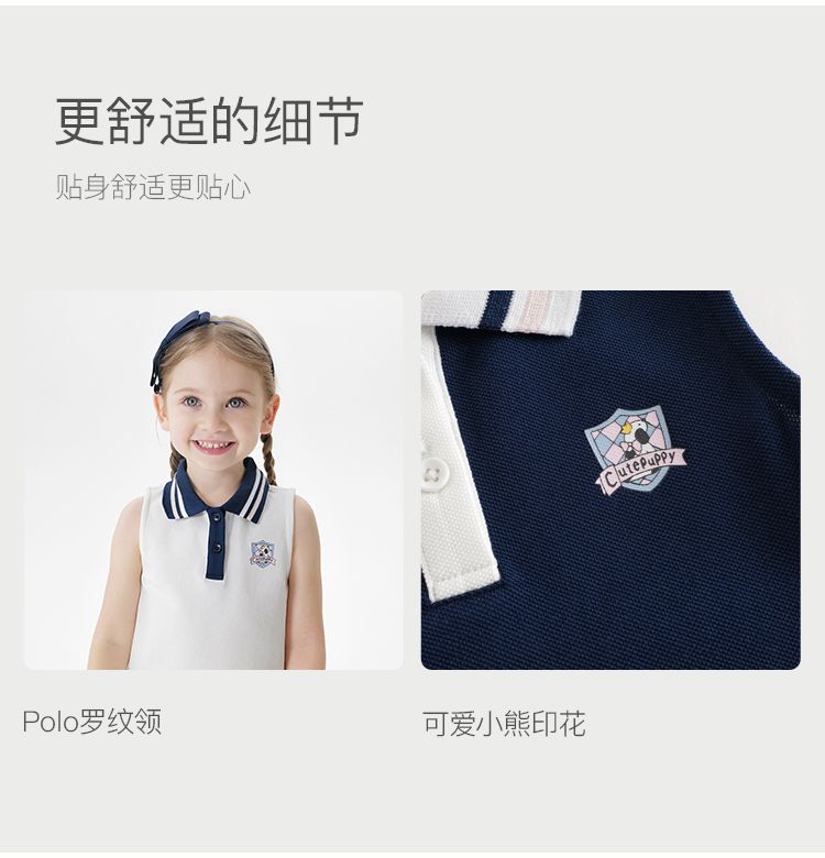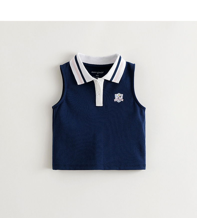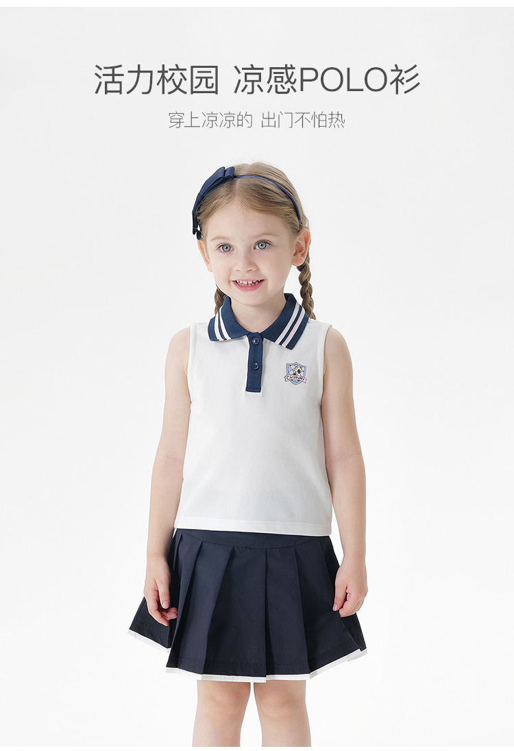 【凉感】马克珍妮女童活力学院无袖polo衫T恤 儿童夏装新款550787