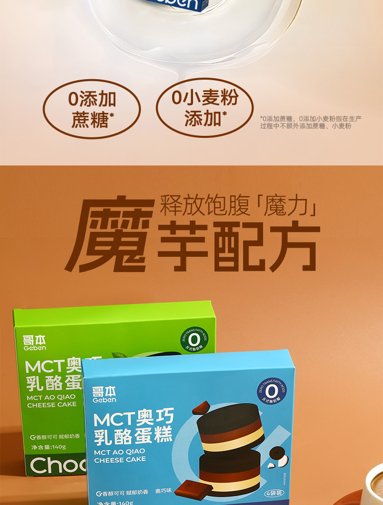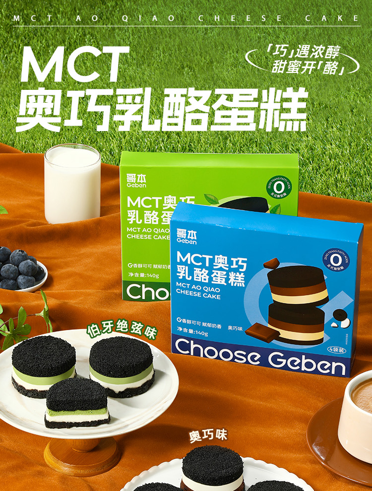 【闪电旗舰店】【赤藓糖醇添加量6%】【冷链产品不支持无理由退货】哥本™MCT奥巧乳酪蛋糕(奥巧味/伯牙绝弦味)140克(4枚)/盒