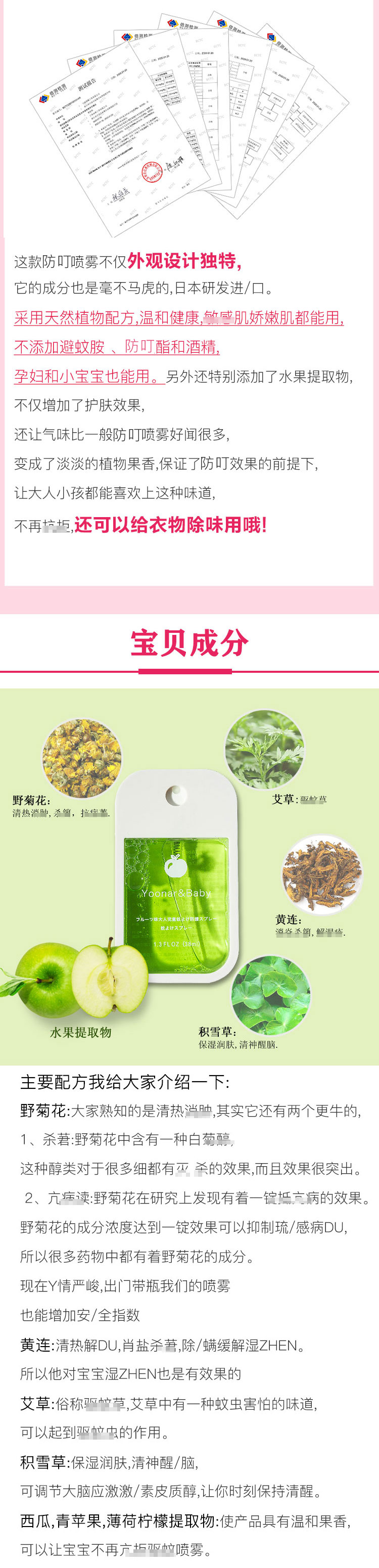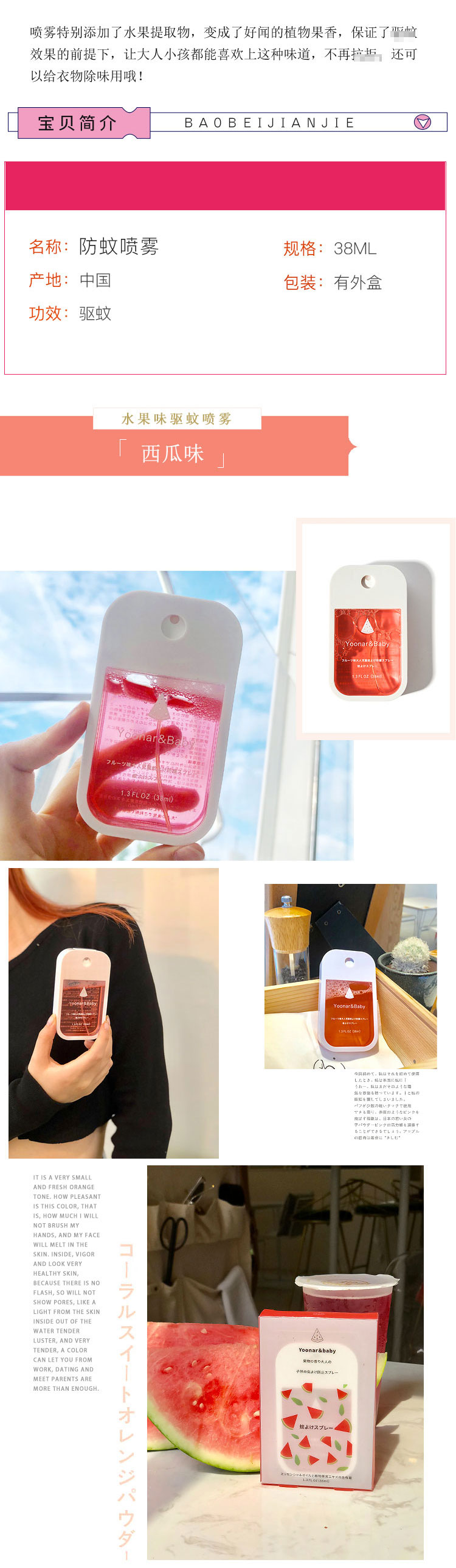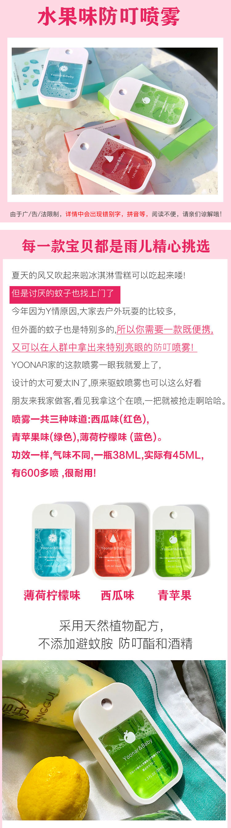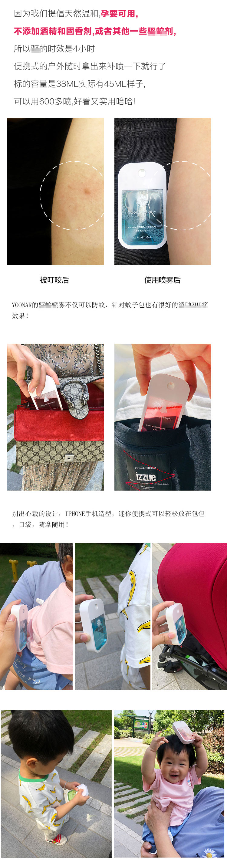 日本Yoonar驱蚊水防蚊虫喷雾儿童成人宝宝孕妇便携式植物提取安心JPY带授权招加盟代理