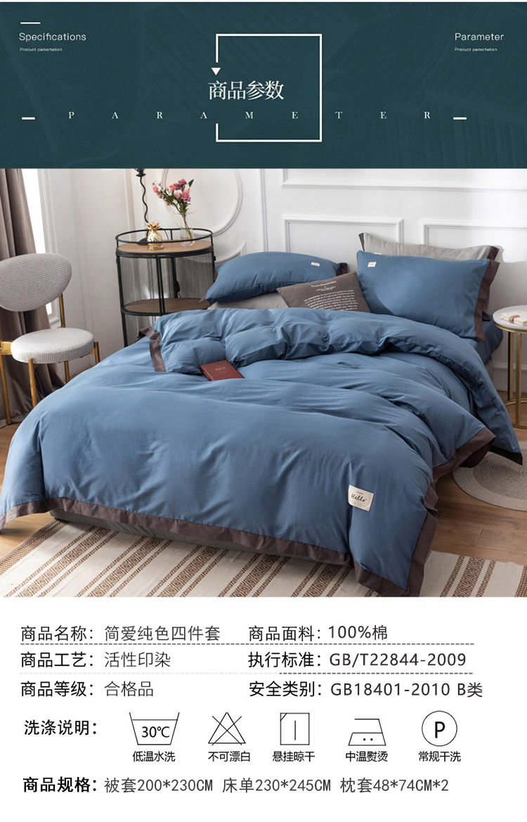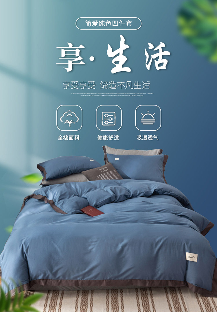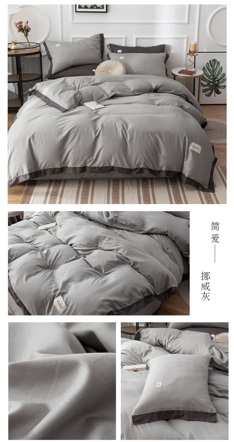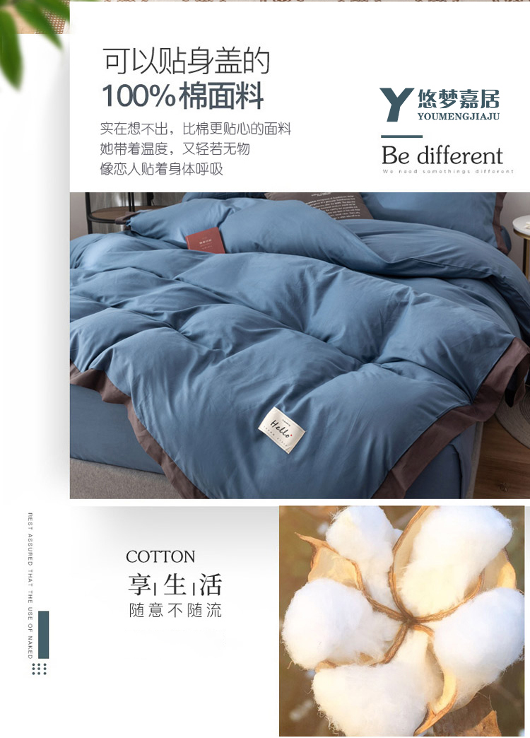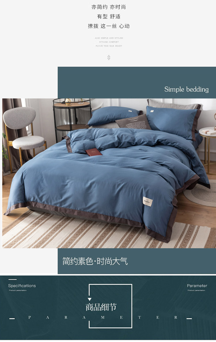 悠梦嘉居简爱纯色四件套北欧简约风纯色拼角大气200*230四季通用YJ-1010