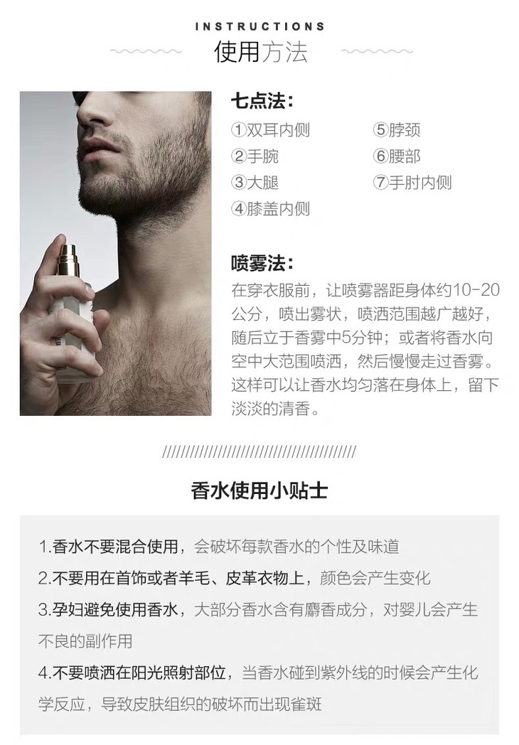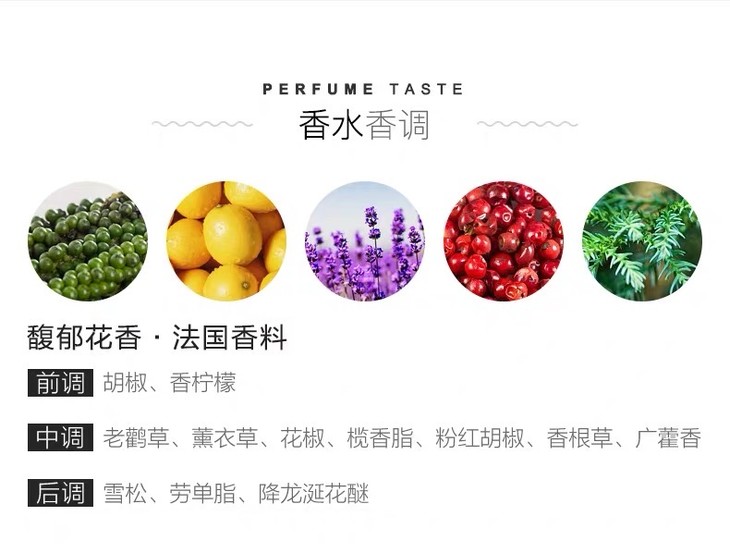 前调:柑橘、葡萄柚、薄荷、粉红胡椒、肉豆蔻