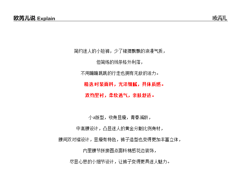- “精致”是欧芮儿olrain品牌文化的核心,欧芮儿认为,精致的女人,不但要外在动人,更要内在迷人,内外兼修,有魅力、有气质、有内涵,自信而不自傲,优雅而不矫揉,自有万种风情而不轻浮,更不故作矜持。