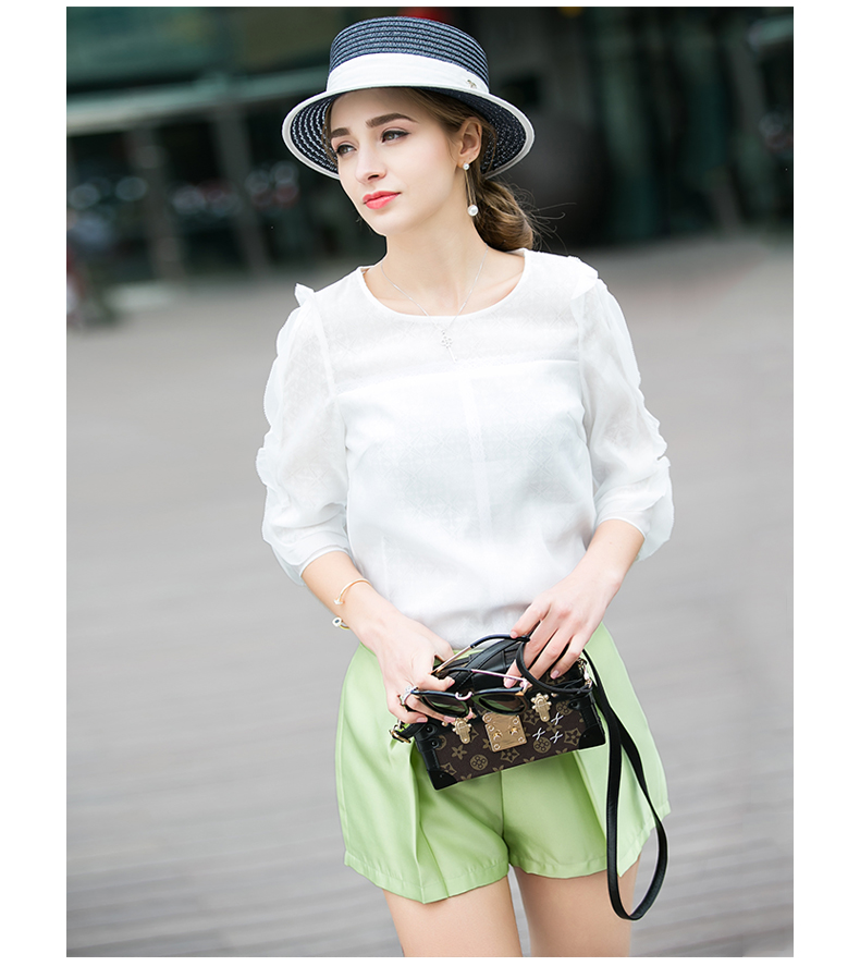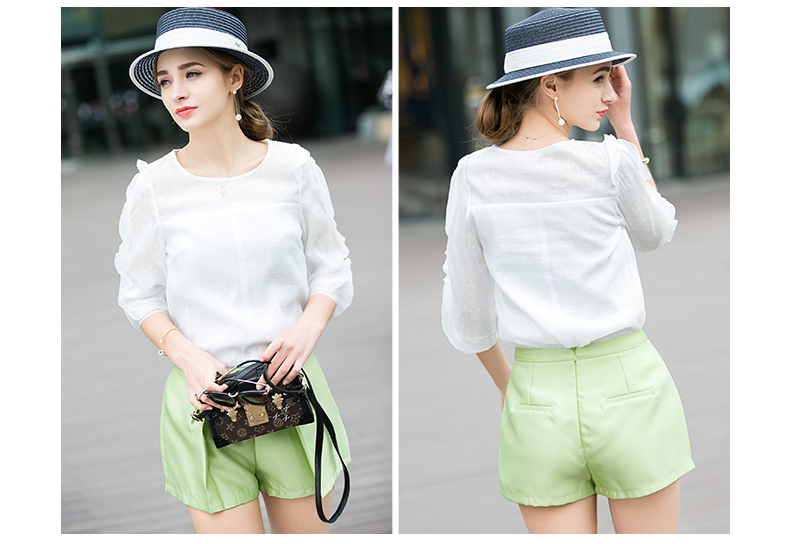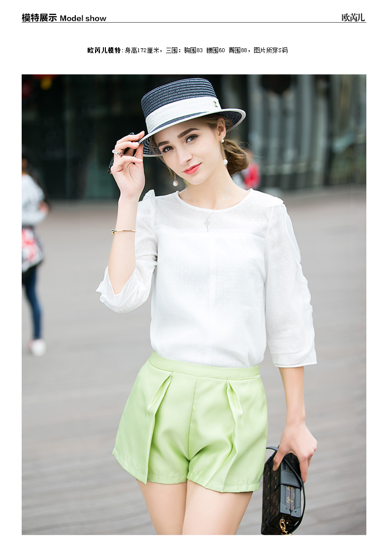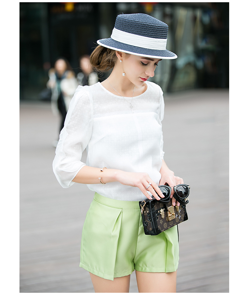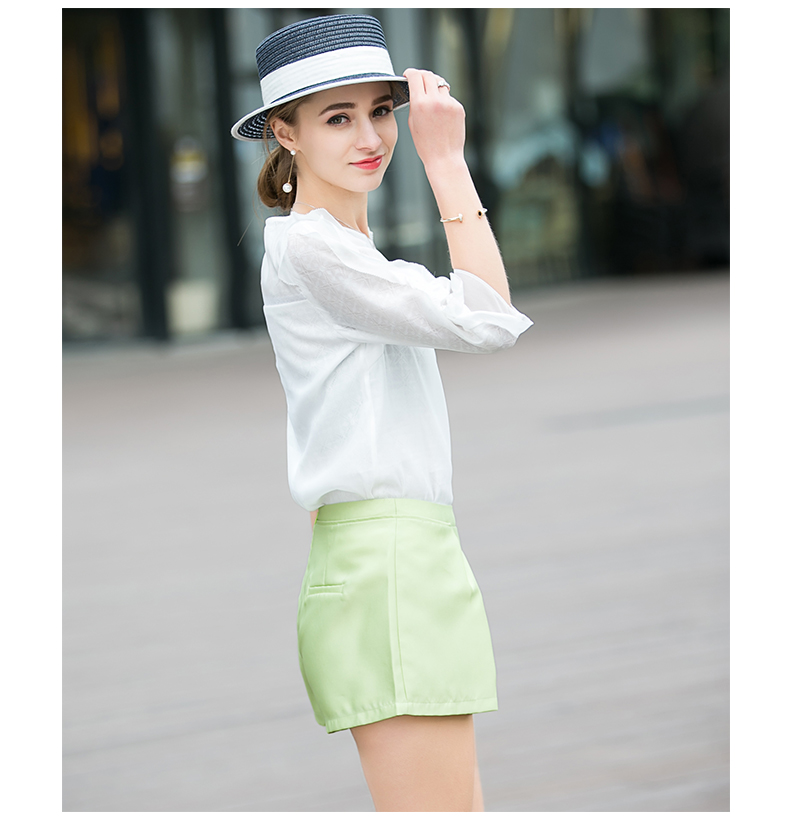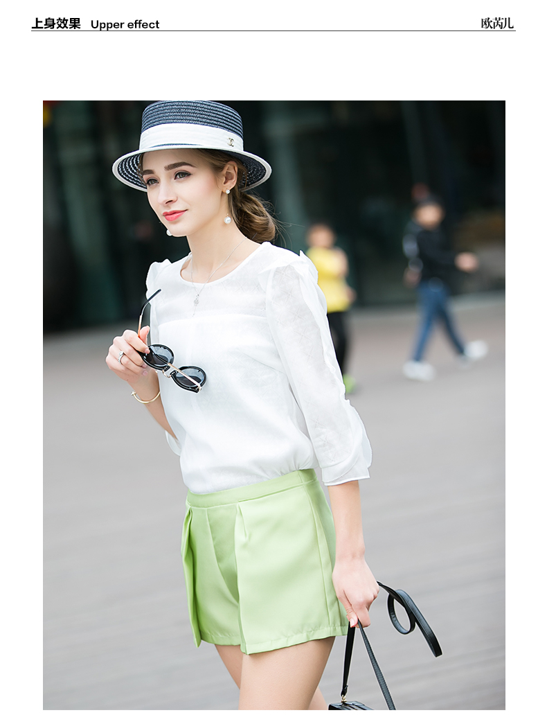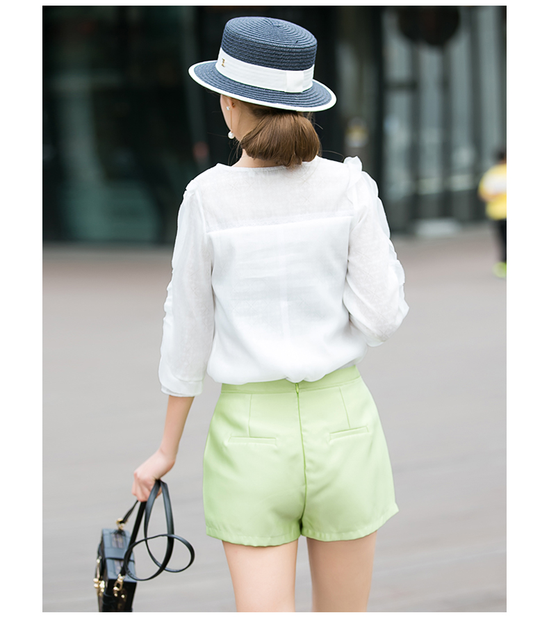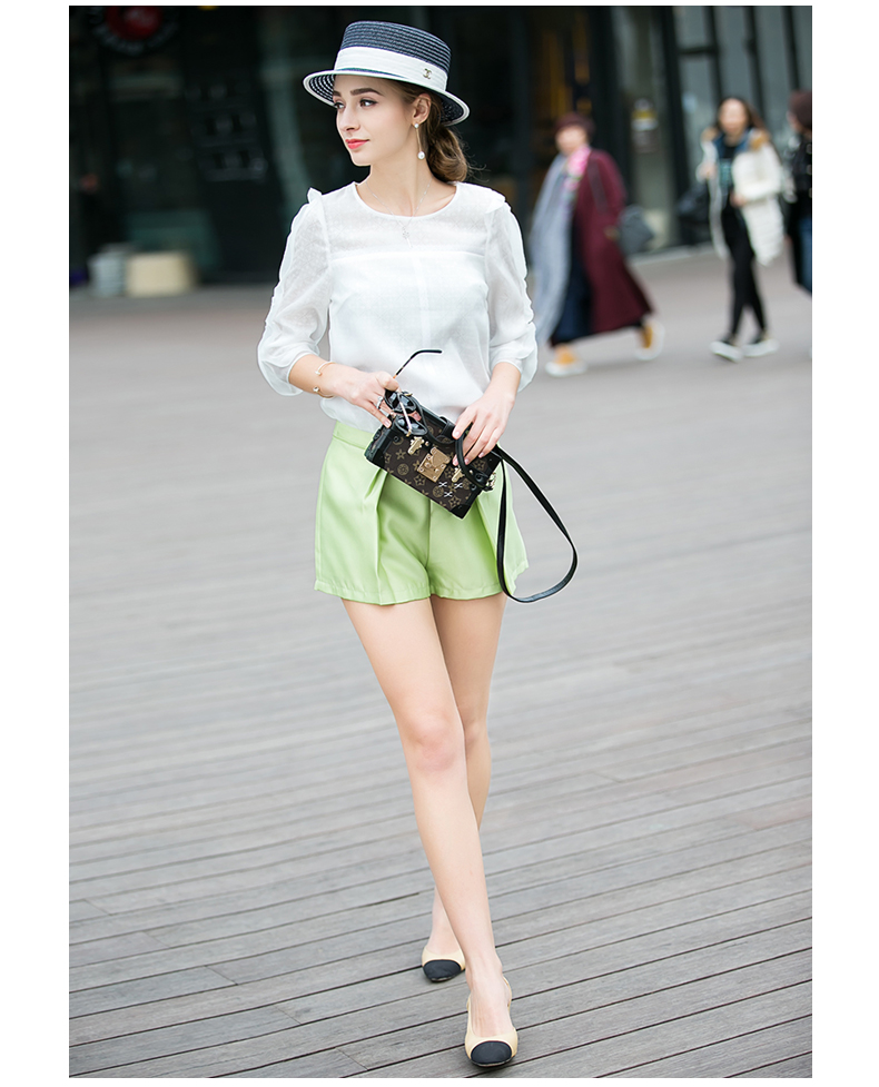 OLrain法式高级穿搭绿色休闲裤女夏季2022年新款高腰显瘦a字短裤