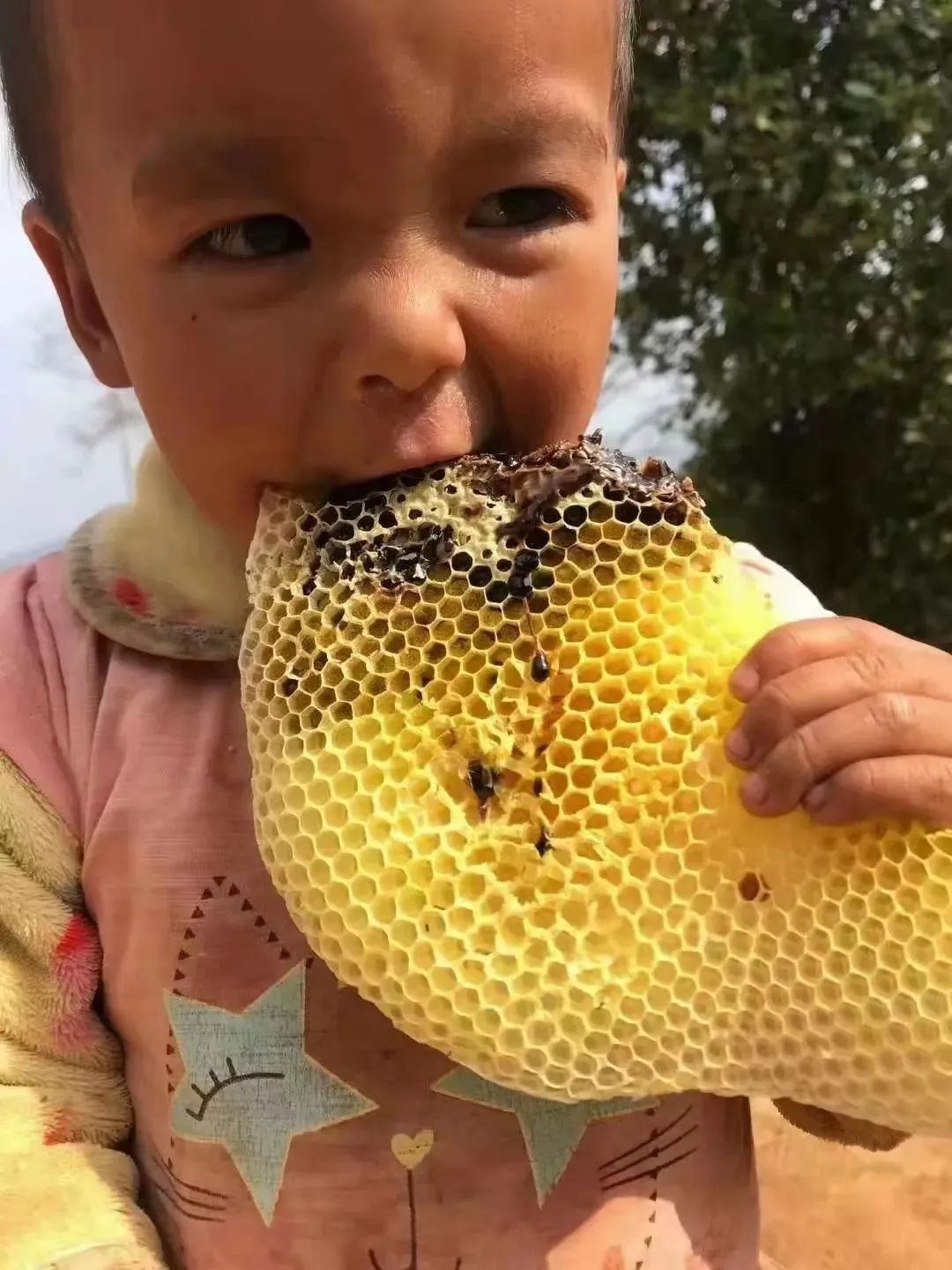 最后就看取蜜的技巧。电视里见养蜂人取蜜皆要捂实手脚,头戴纱网;山里人可不,他们都是徒手取蜜——其实这技术里也包含着智慧逻辑:不伤蜜蜂、适度取蜜,才是人与自然和谐相处之道。