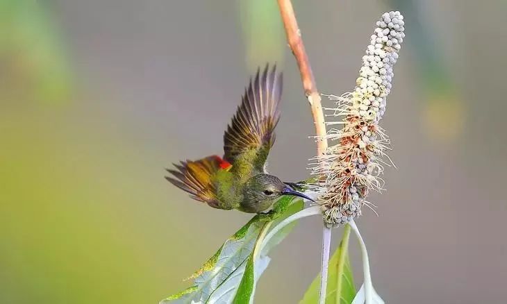 米团花每年3月左右开放,4月末就凋零,它的花蜜甜度很高,是野蜂和小鸟们特别喜爱的蜜源植物。今年3月初我最后一次进高黎贡,正好碰到头茬米团花开放,学着孙哥的样子拿花朵在手掌上轻敲,紫黑色的花蜜纷纷洒在手上,虽然不过是星星点点的几滴花蜜,用舌尖轻舐仍有明显的甜香味飘进口腔。