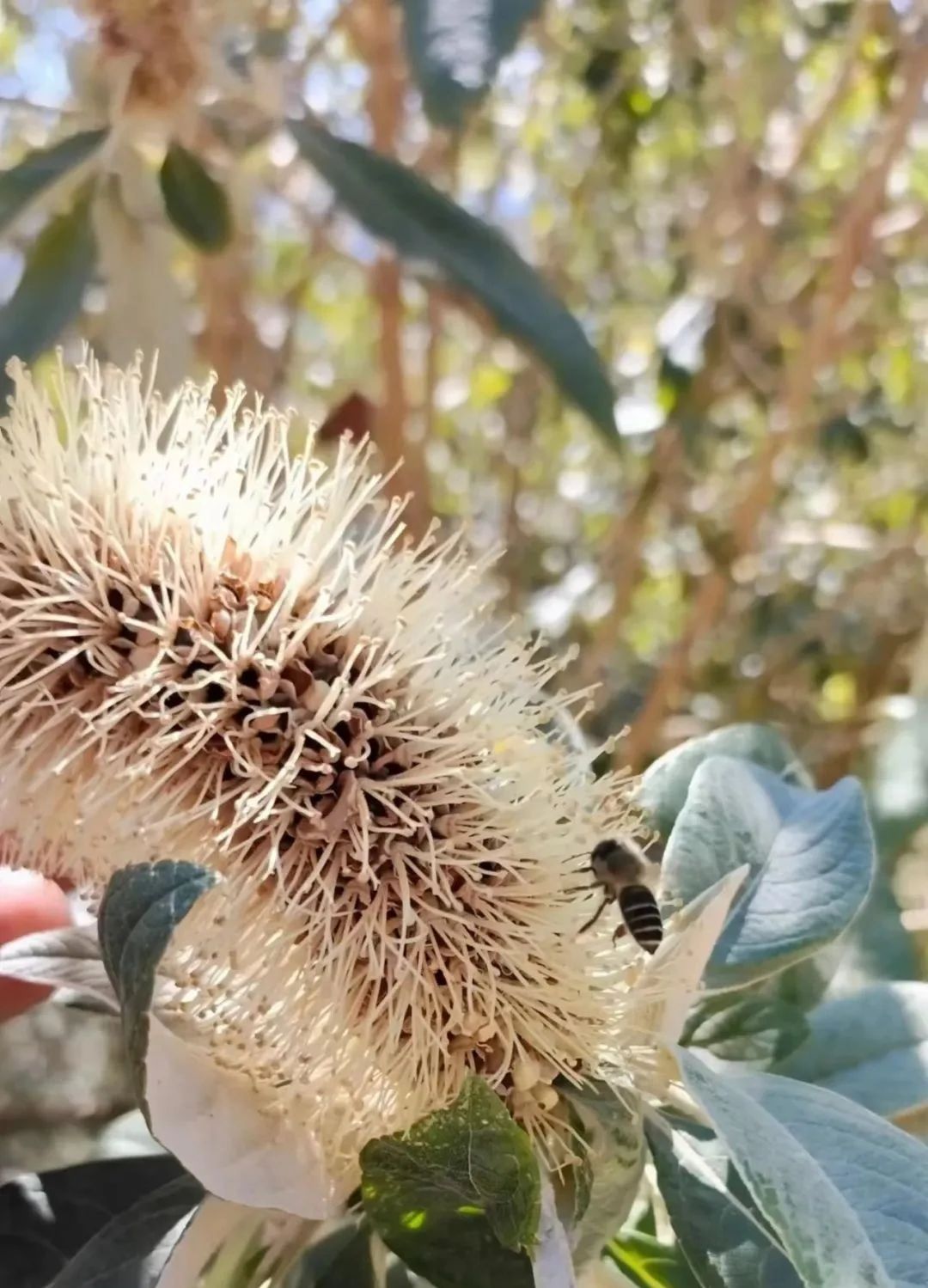 整个3月上旬到4月中下旬,米团花盛放的季节到来,会吸引无数野蜂围绕取蜜,野蜂取了花蜜后回巢酿造,经过1-2周,成熟的花蜜才终于能瓜熟蒂落。