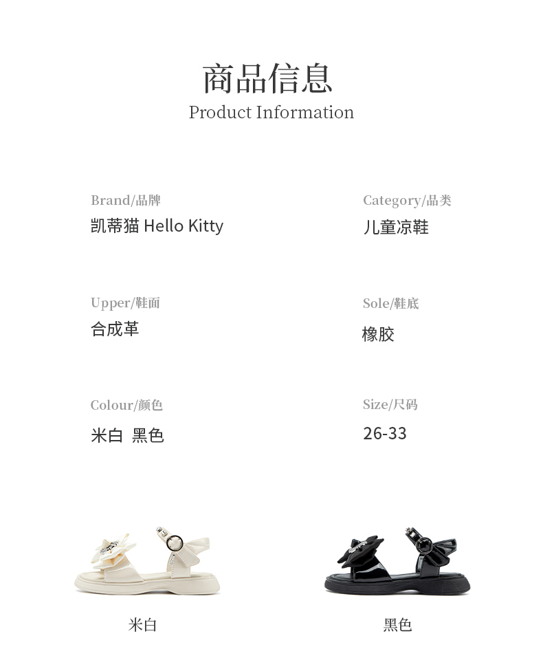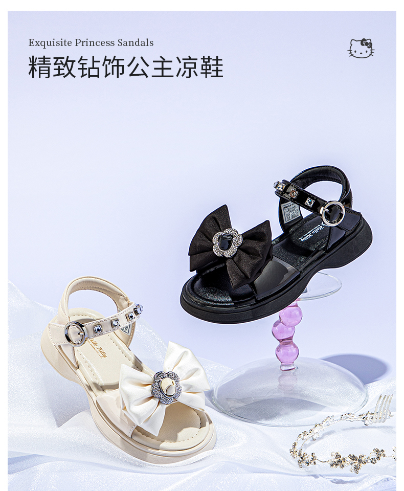 HelloKitty童鞋女童公主凉鞋夏季儿童沙滩鞋女孩蝴蝶结鞋26-33 K4526857