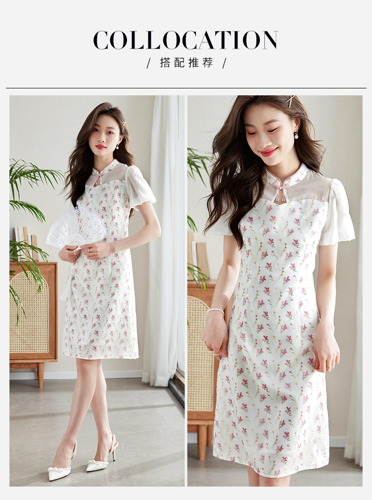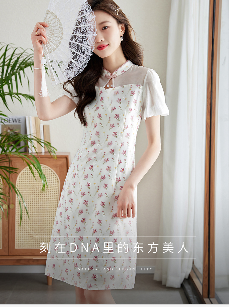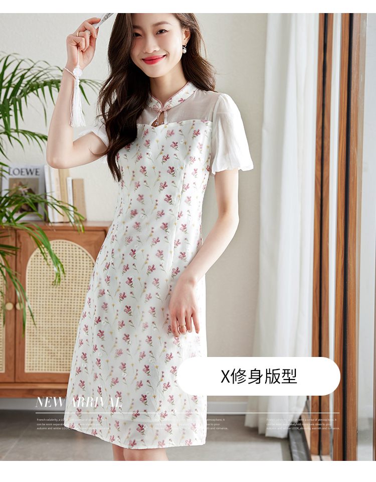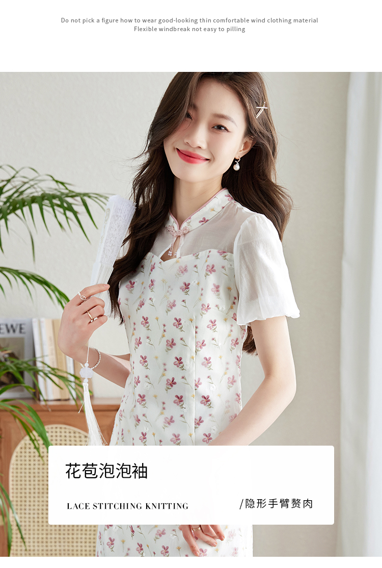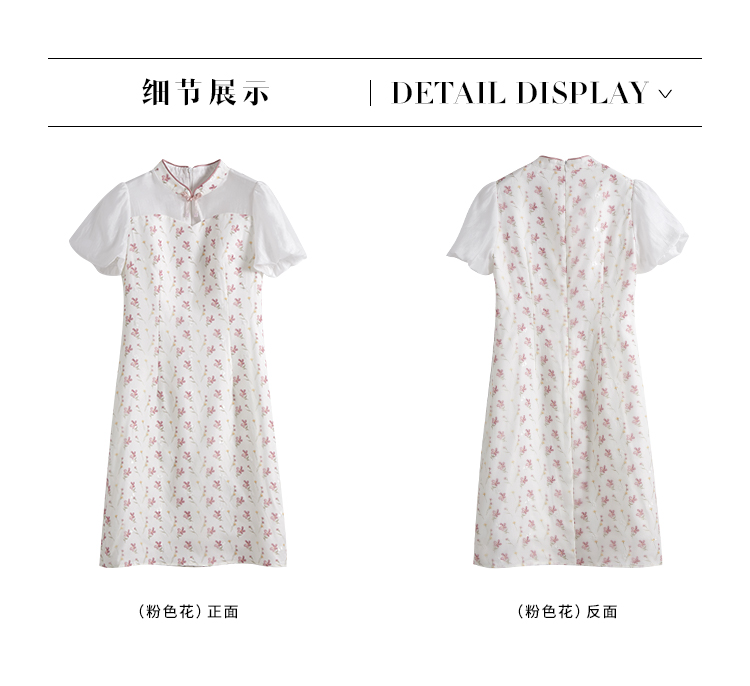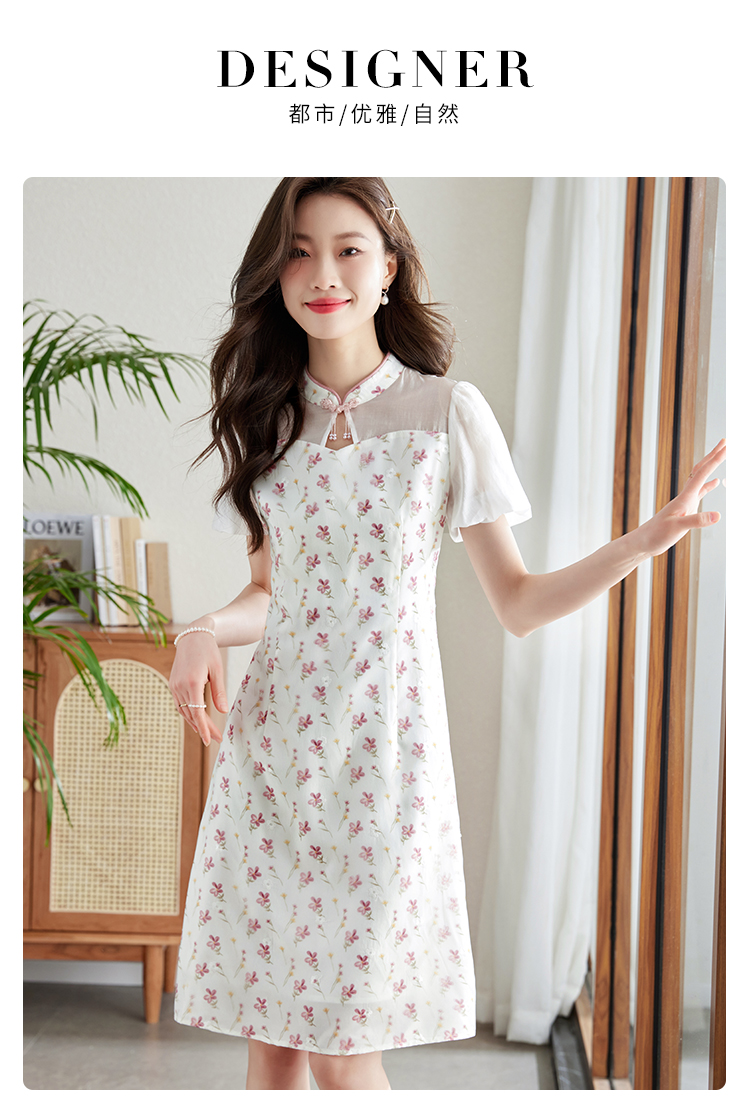 【专属特价】熙世界【烟雨江南】改良版旗袍连衣裙女夏季花苞泡泡袖雪纺碎花裙