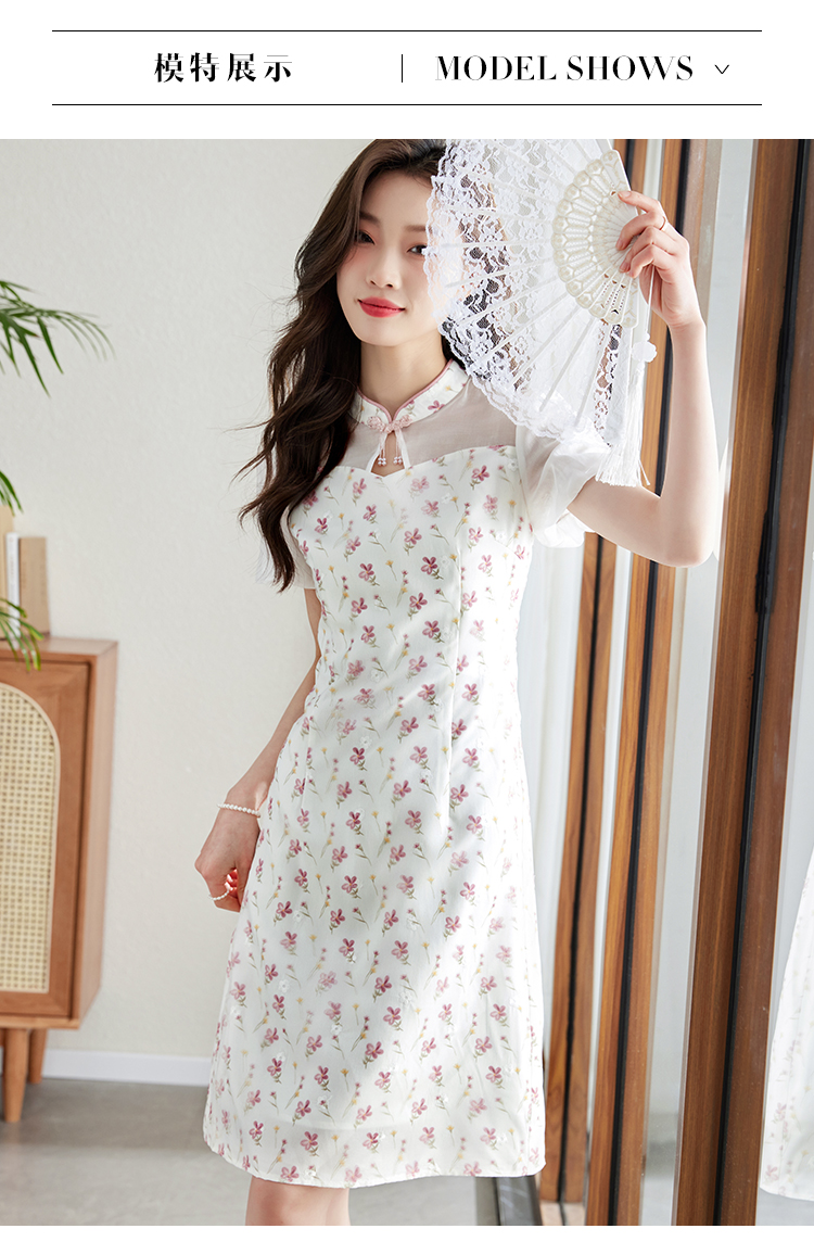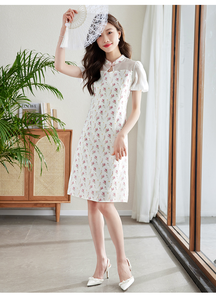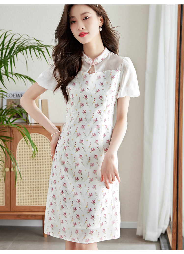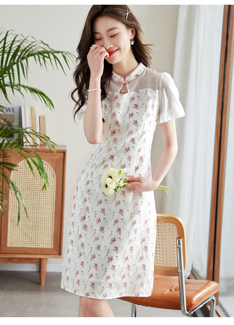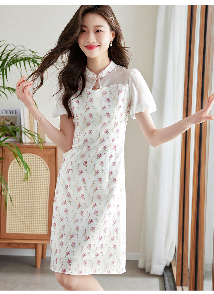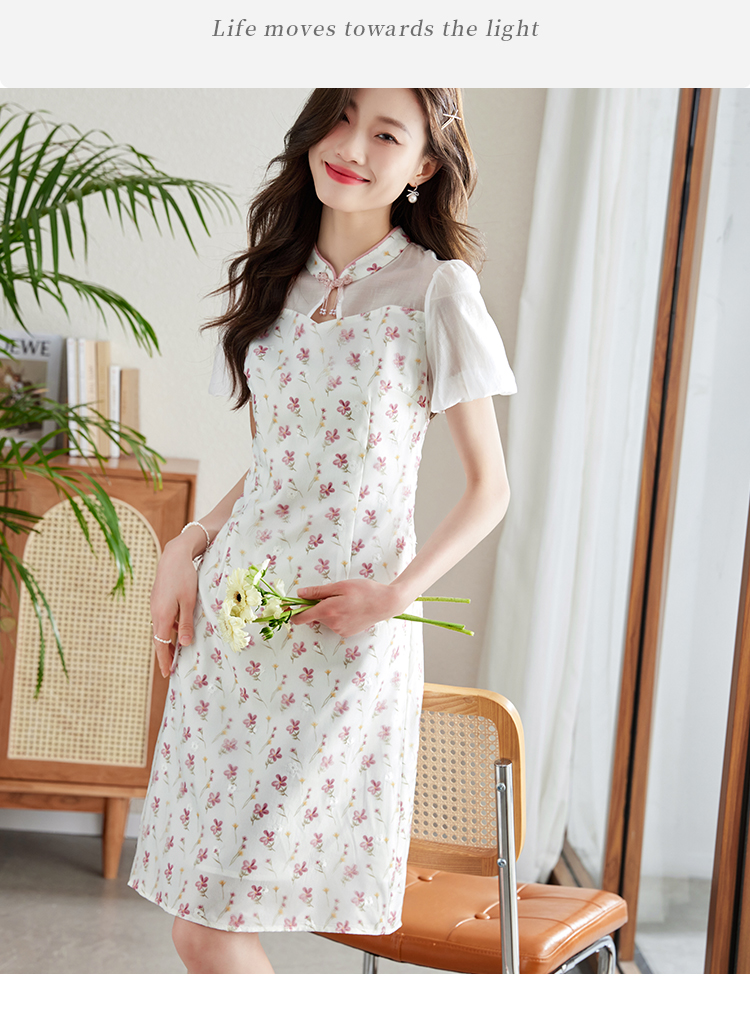 【专属特价】熙世界【烟雨江南】改良版旗袍连衣裙女夏季花苞泡泡袖雪纺碎花裙