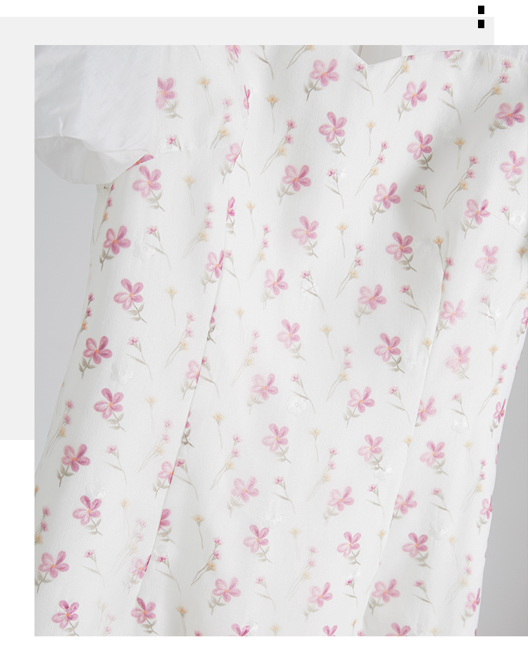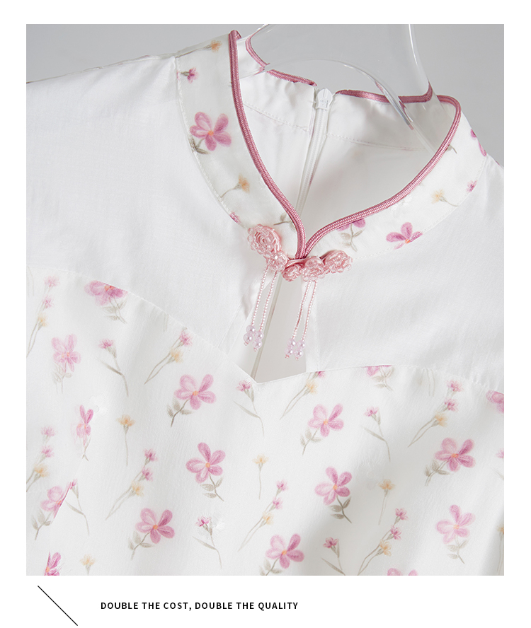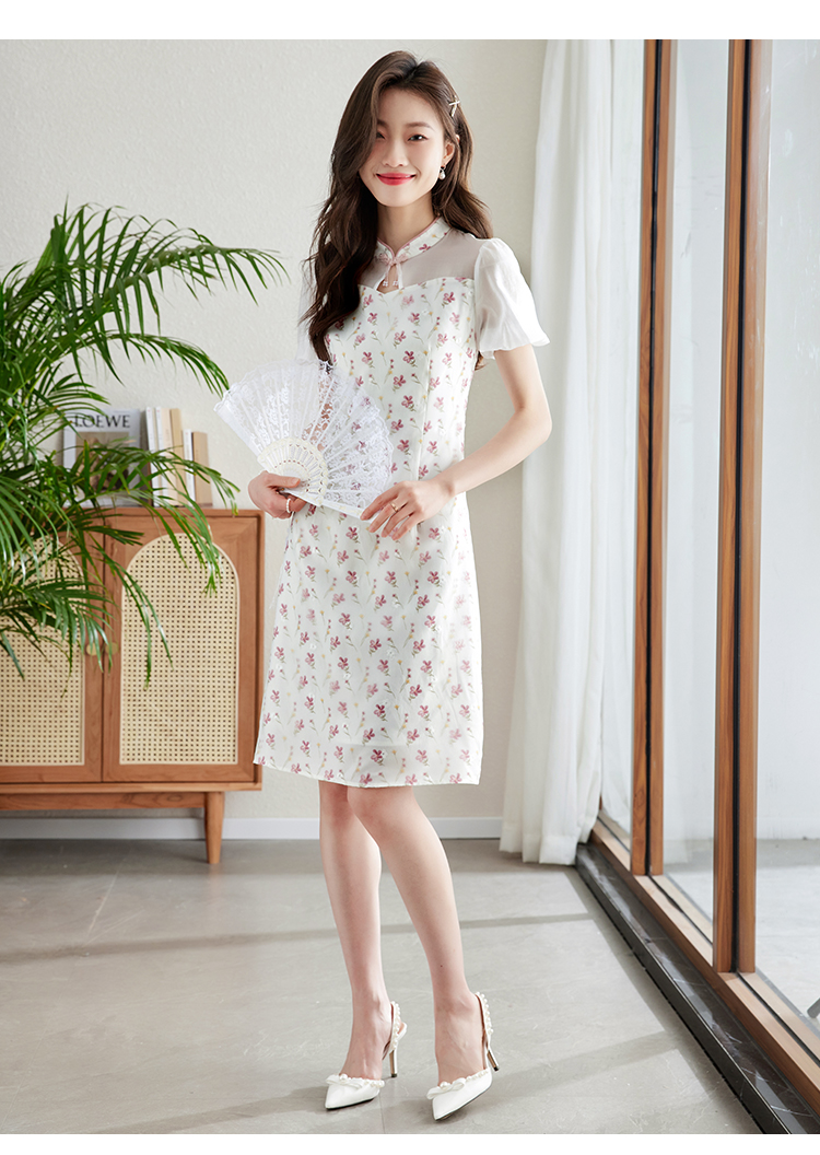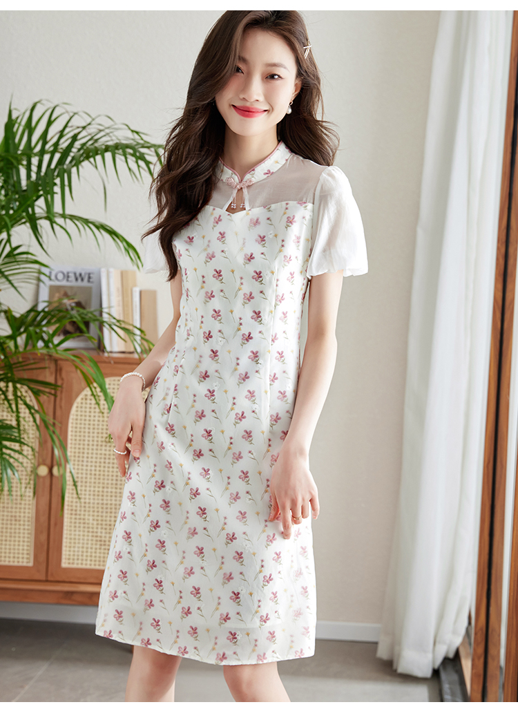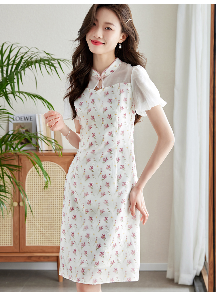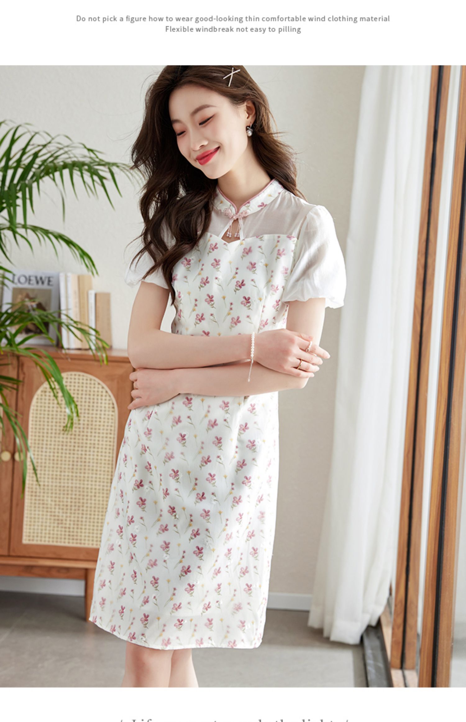 【专属特价】熙世界【烟雨江南】改良版旗袍连衣裙女夏季花苞泡泡袖雪纺碎花裙