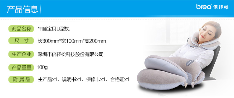 倍轻松(breo)u型枕颈椎枕NP D091办公室午休枕午睡枕头 护颈枕飞机旅行枕 双层设计