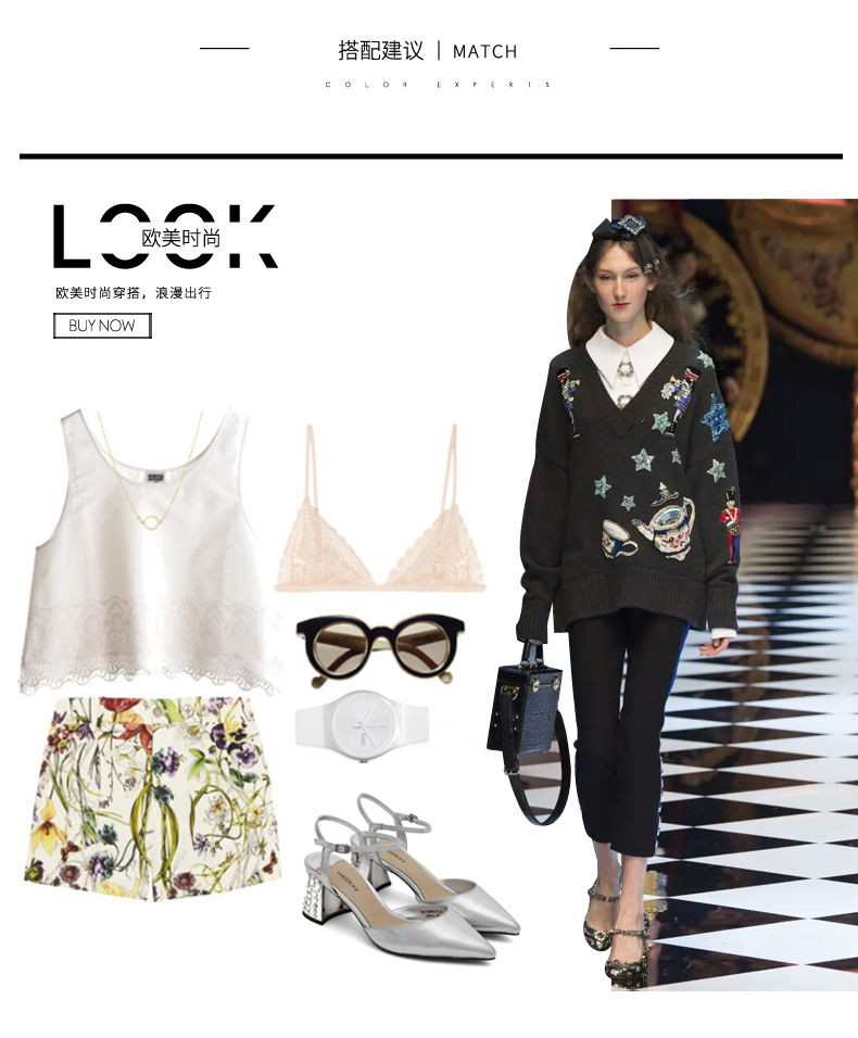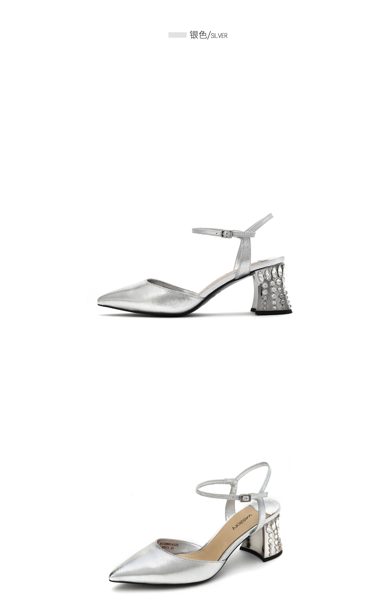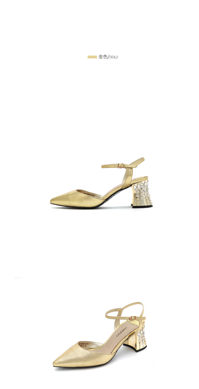 westory夏季新款凉鞋女尖头中空一字扣粗跟高跟鞋女鞋W272H60141