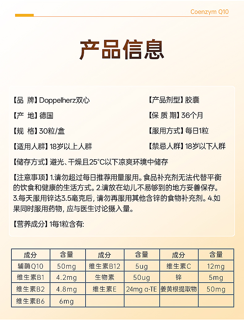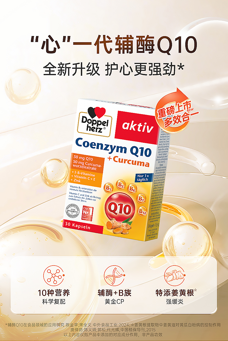 【德国双心】辅酶q10姜黄胶囊升级版辅酶保护心脏 3盒装