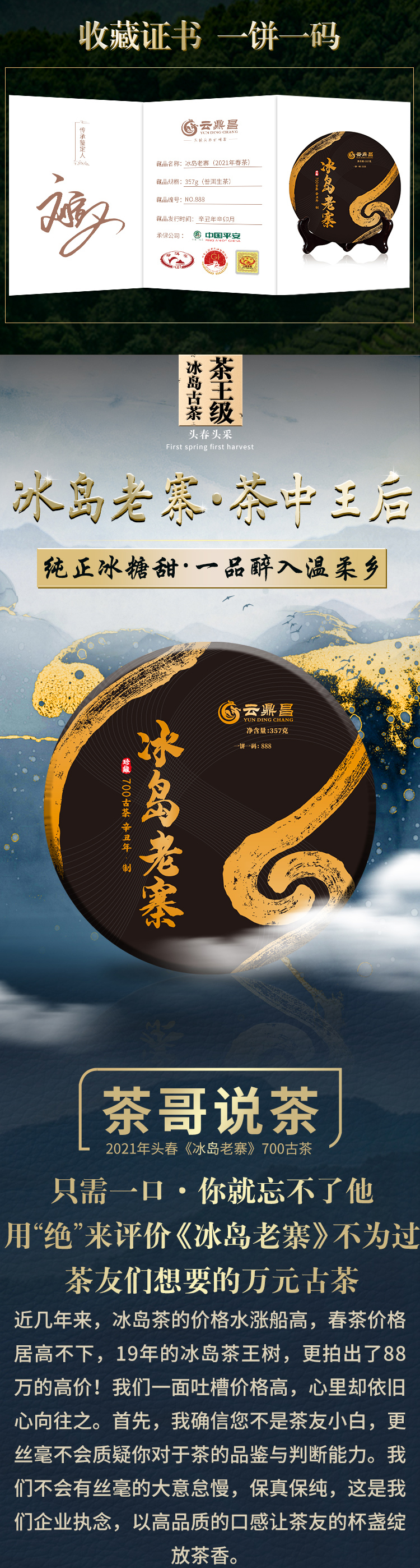 【冰岛老寨】2021年普洱茶生茶云南临沧古茶春茶饼茶357g