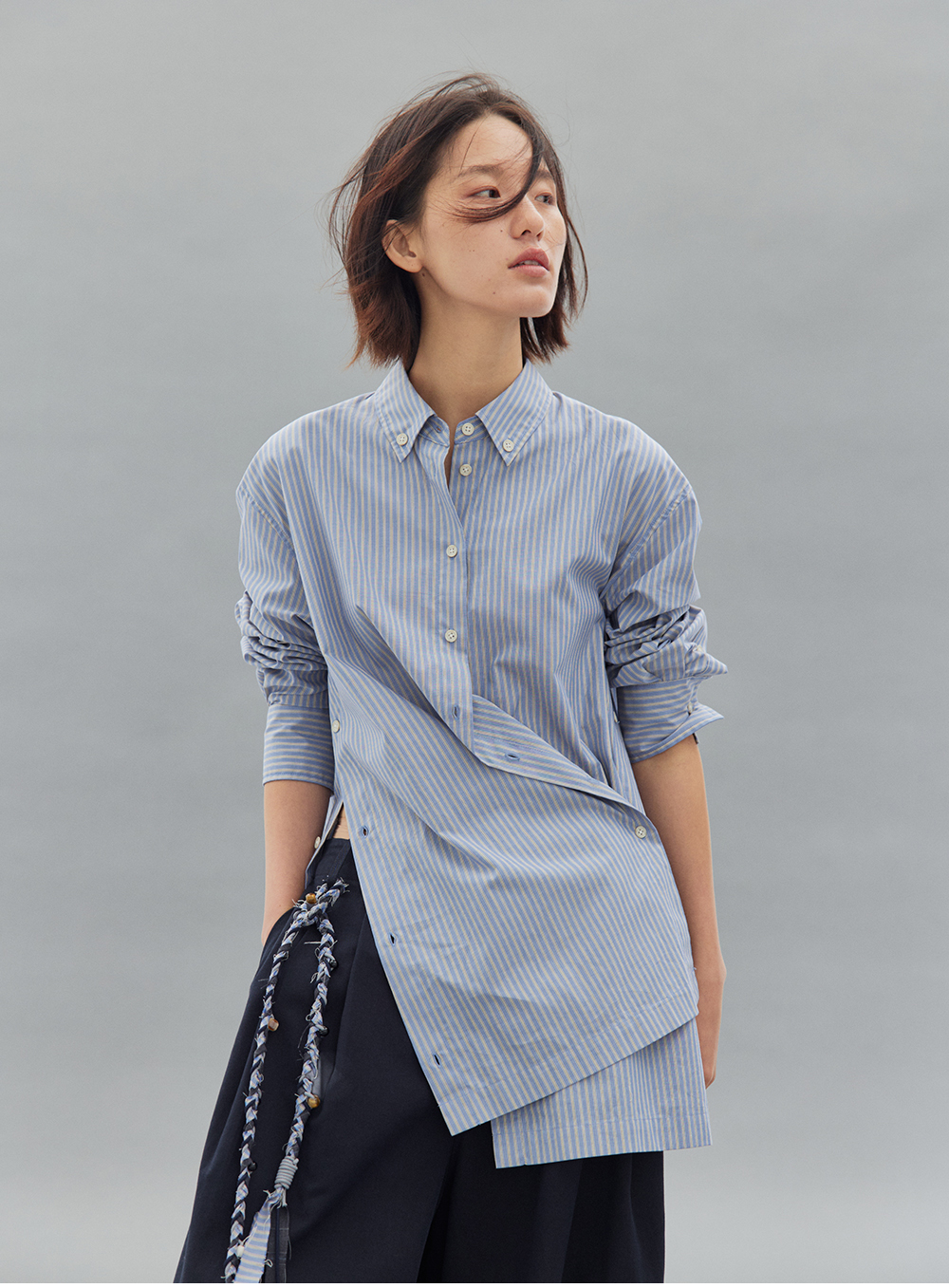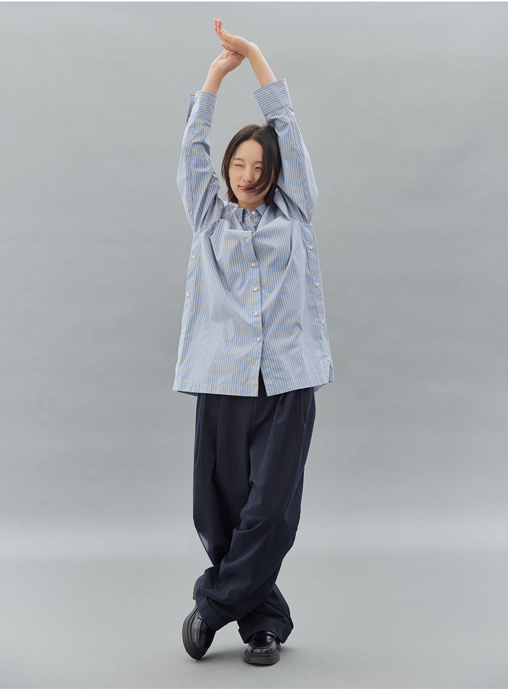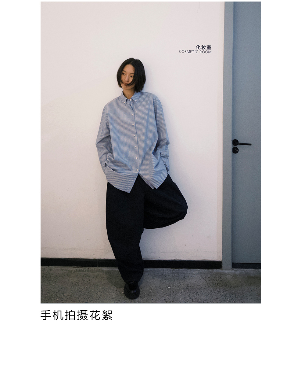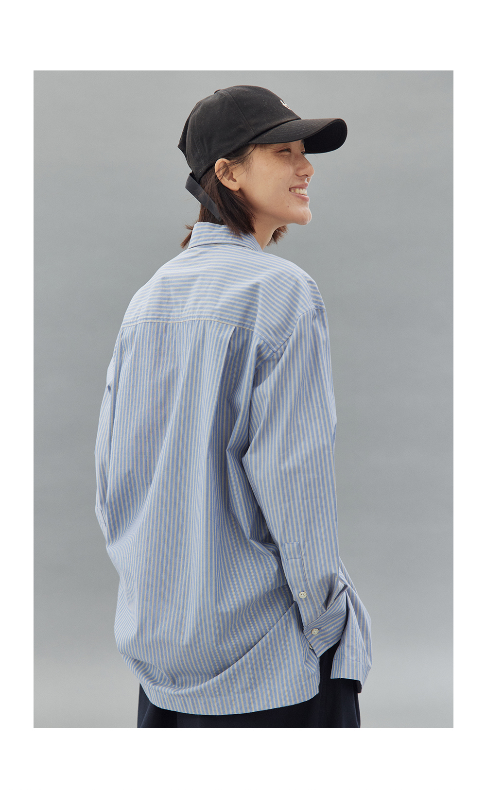 步履不停/4C11206C/初秋竖条纹休闲纯棉衬衫上衣外套