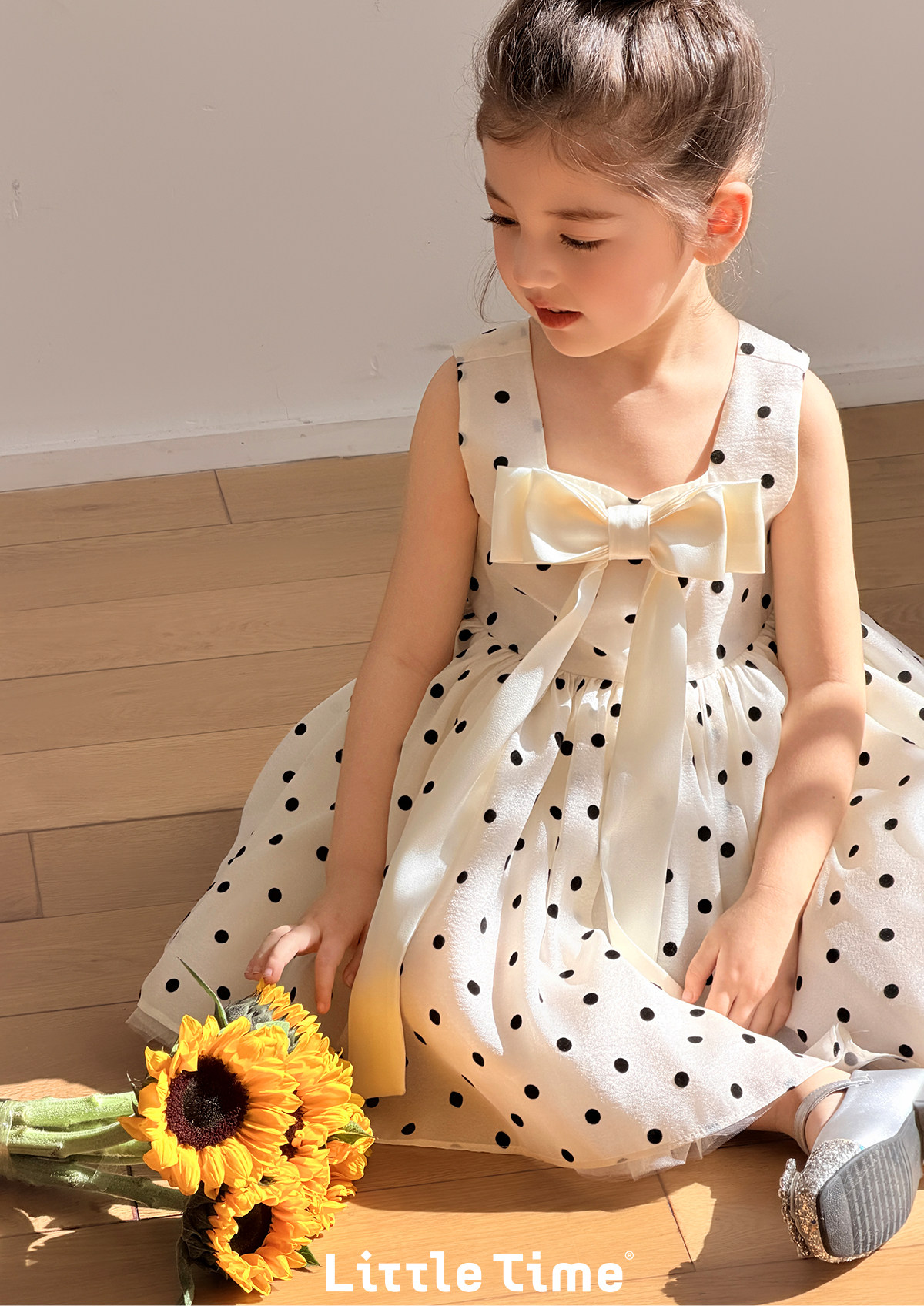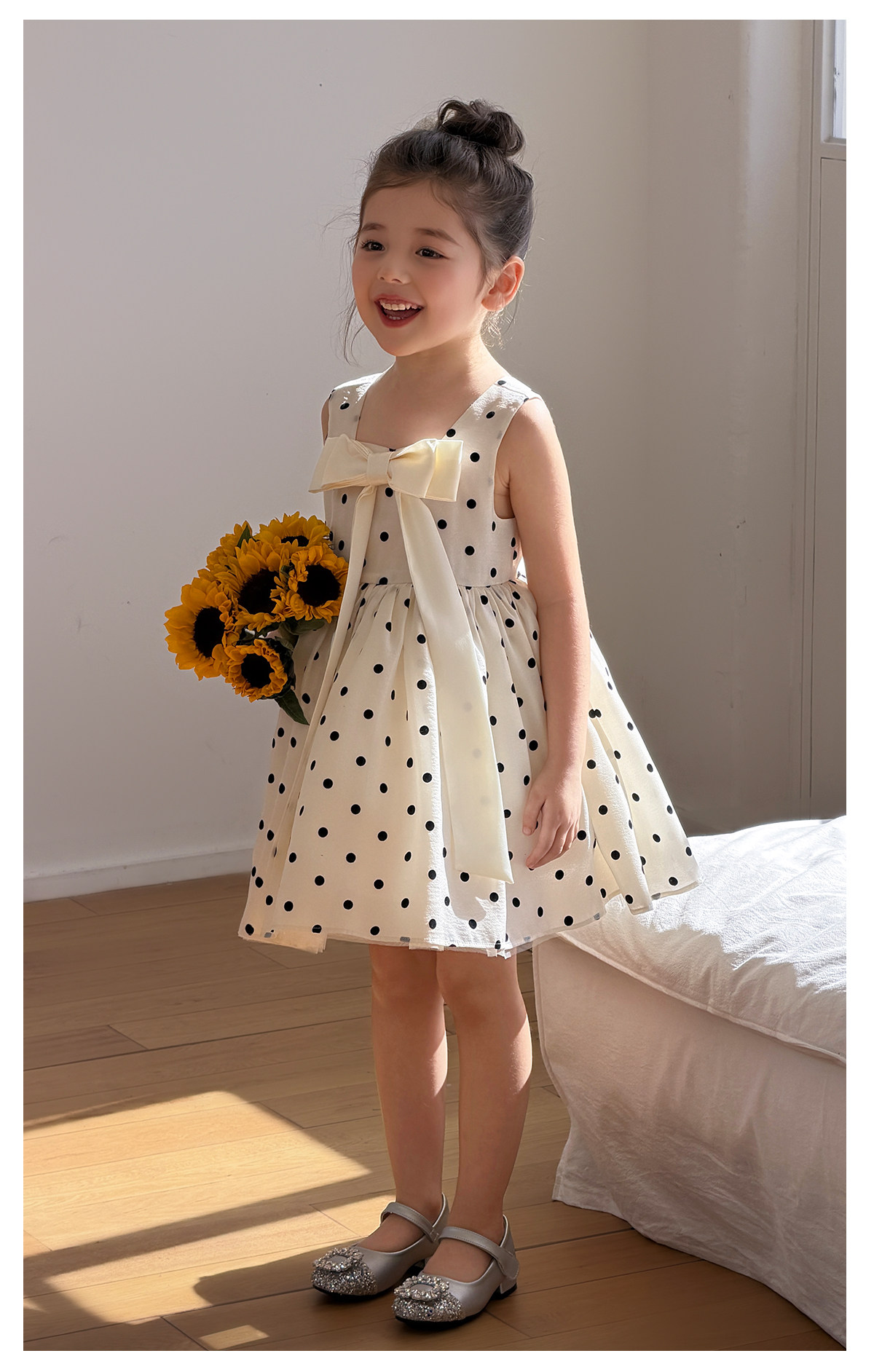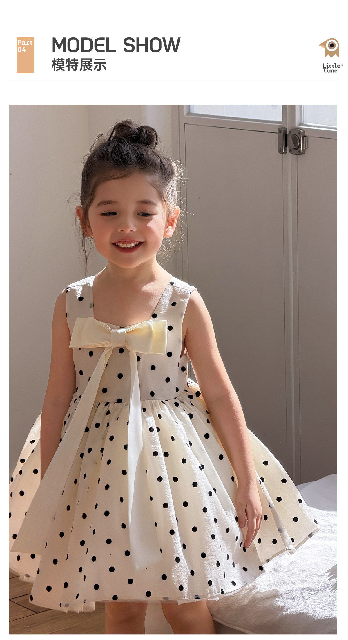 littletime2026春夏女童无袖波点连衣裙蝴蝶结背心裙洋气公主裙