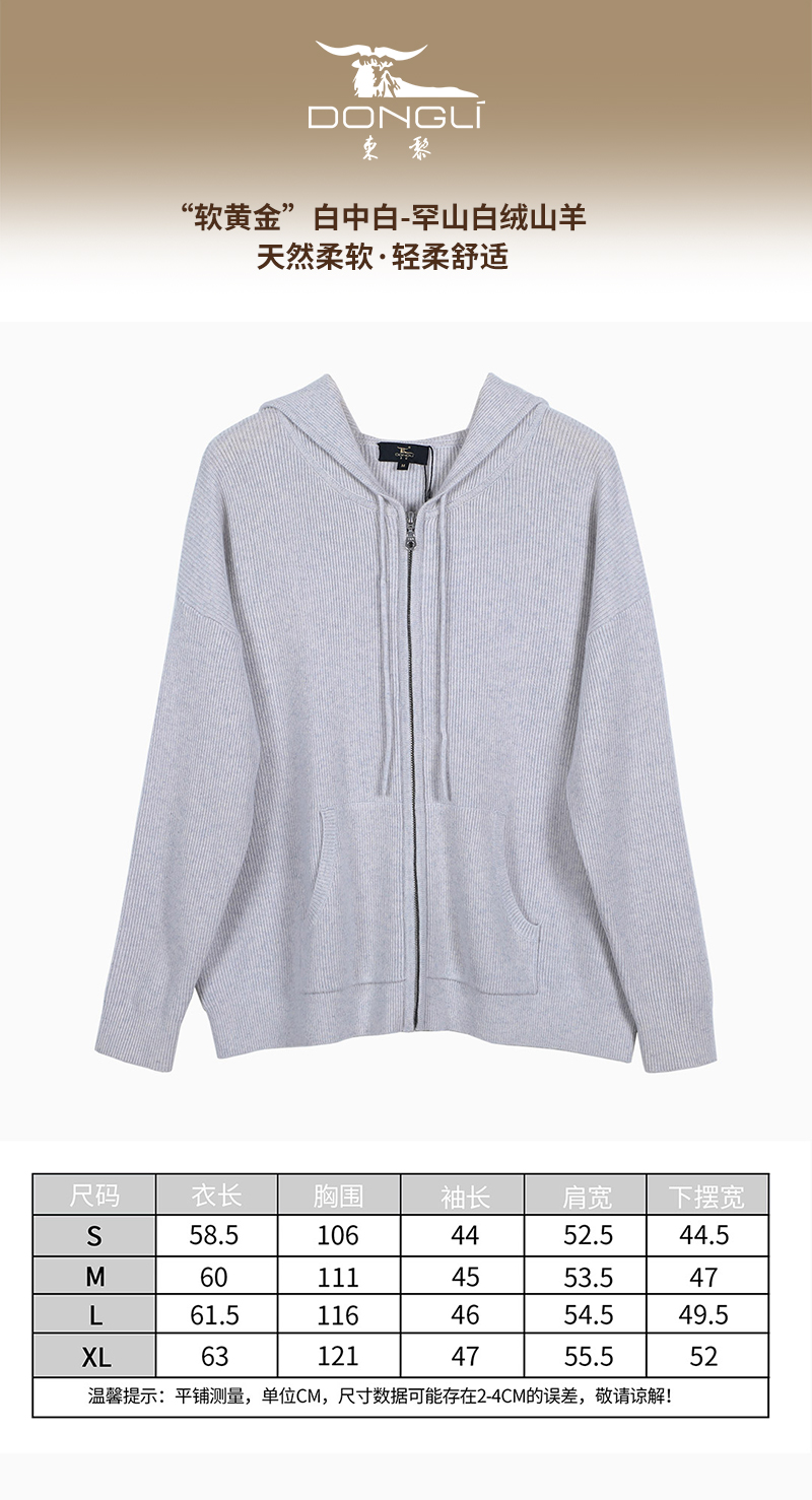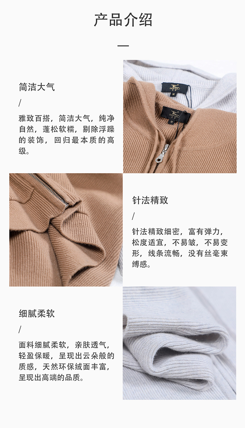 WSR-21BBC38小山羊绒运动风女士拉链帽衫