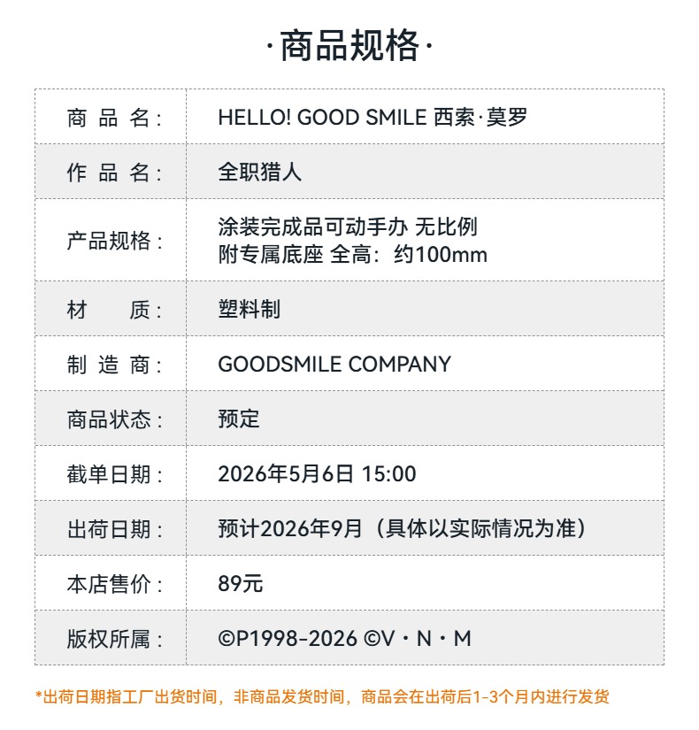【GSC预售定金】HELLO! GOOD SMILE 西索·莫罗 全职猎人