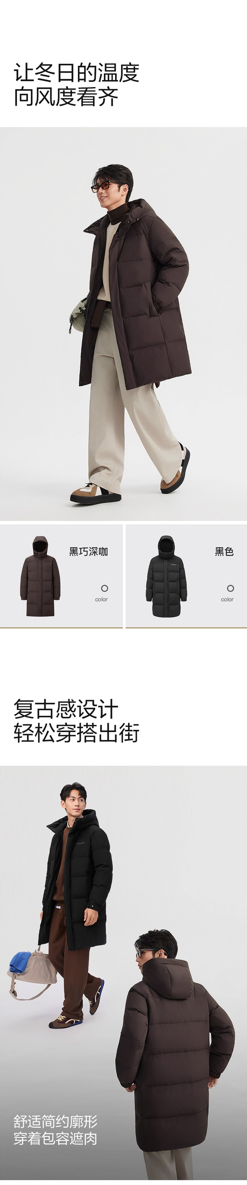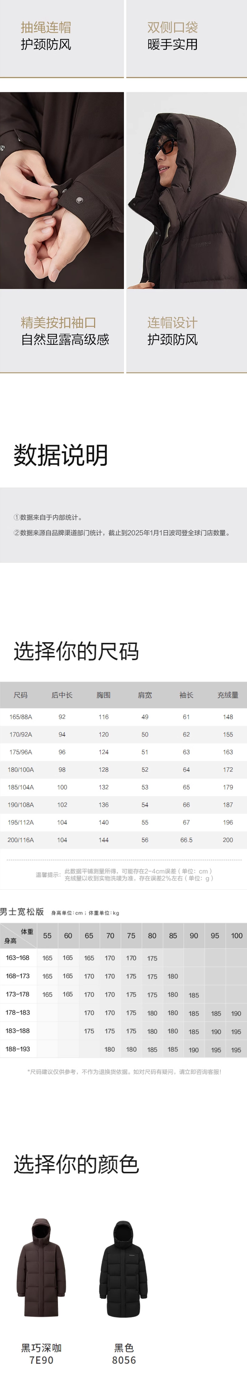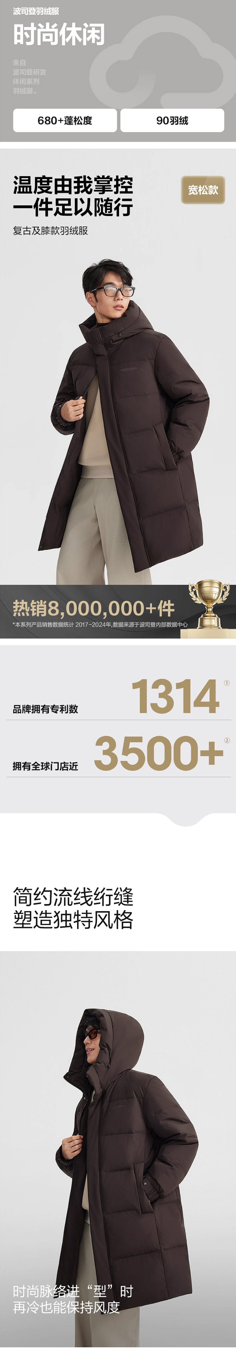 波司登2025新款羽绒服男休闲中长款连帽B250245277