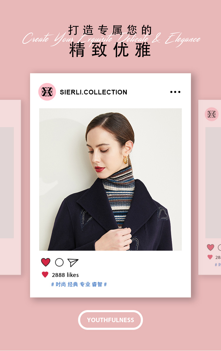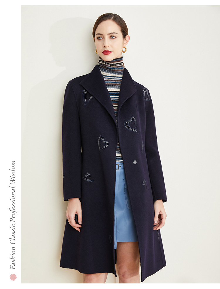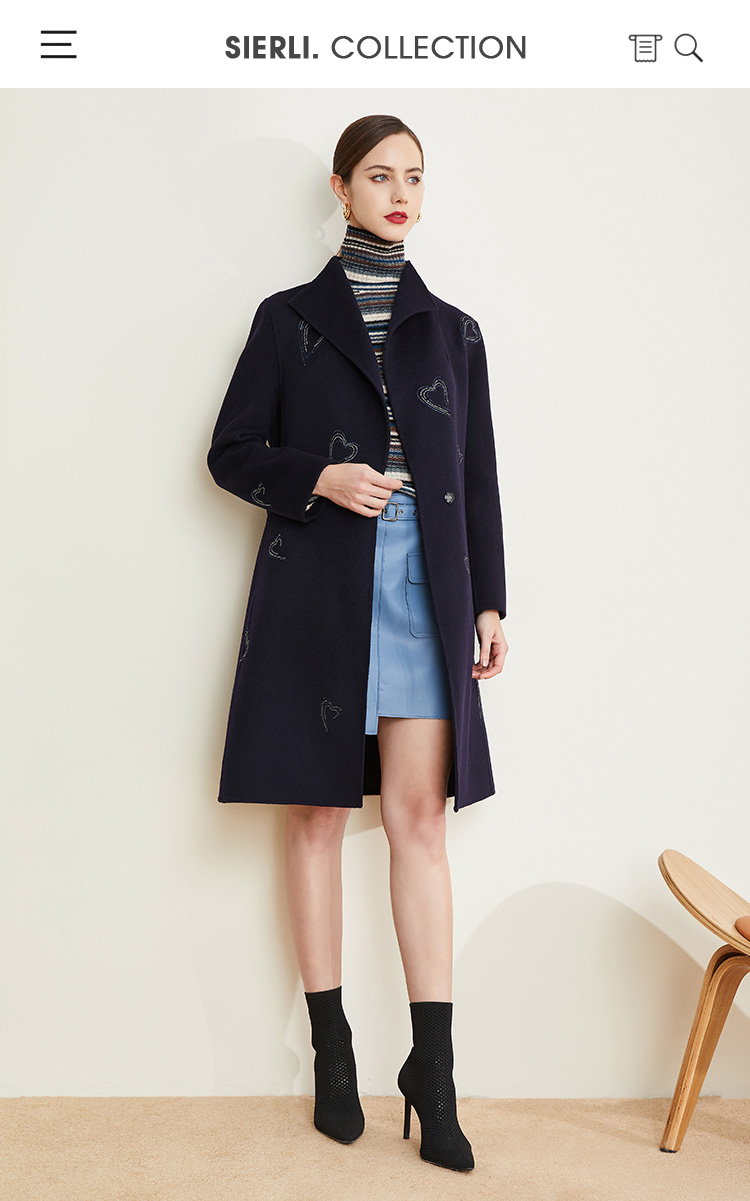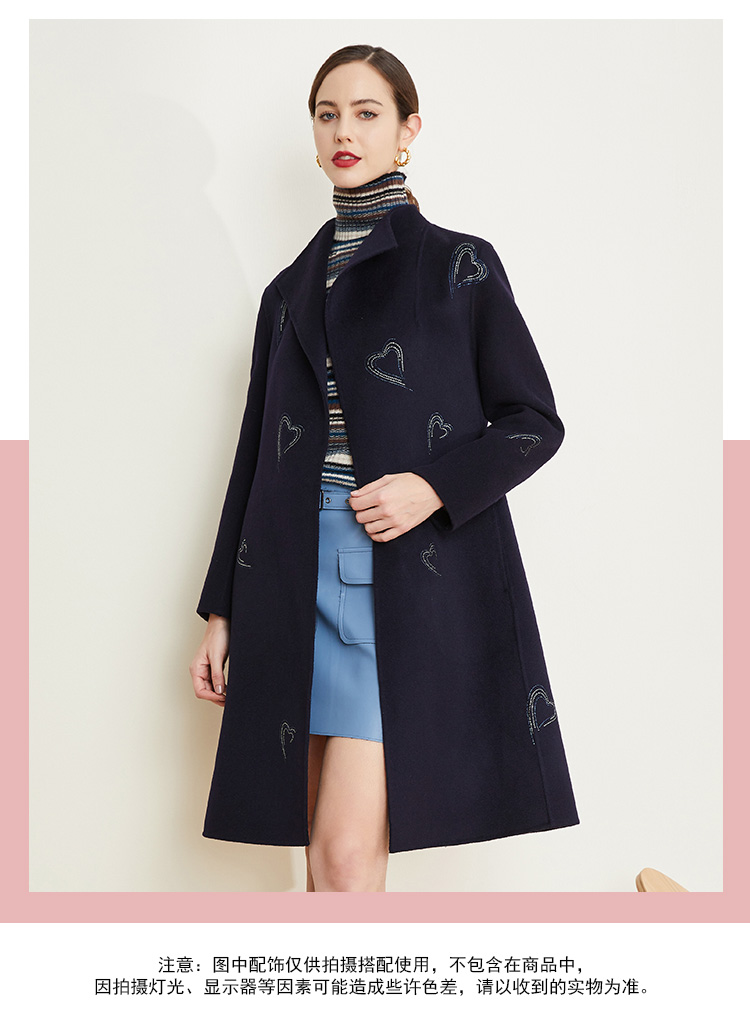 ND93U斯尔丽[专柜同款]瑟俪2021冬上新心形烫钻外套显瘦时尚中长大衣女