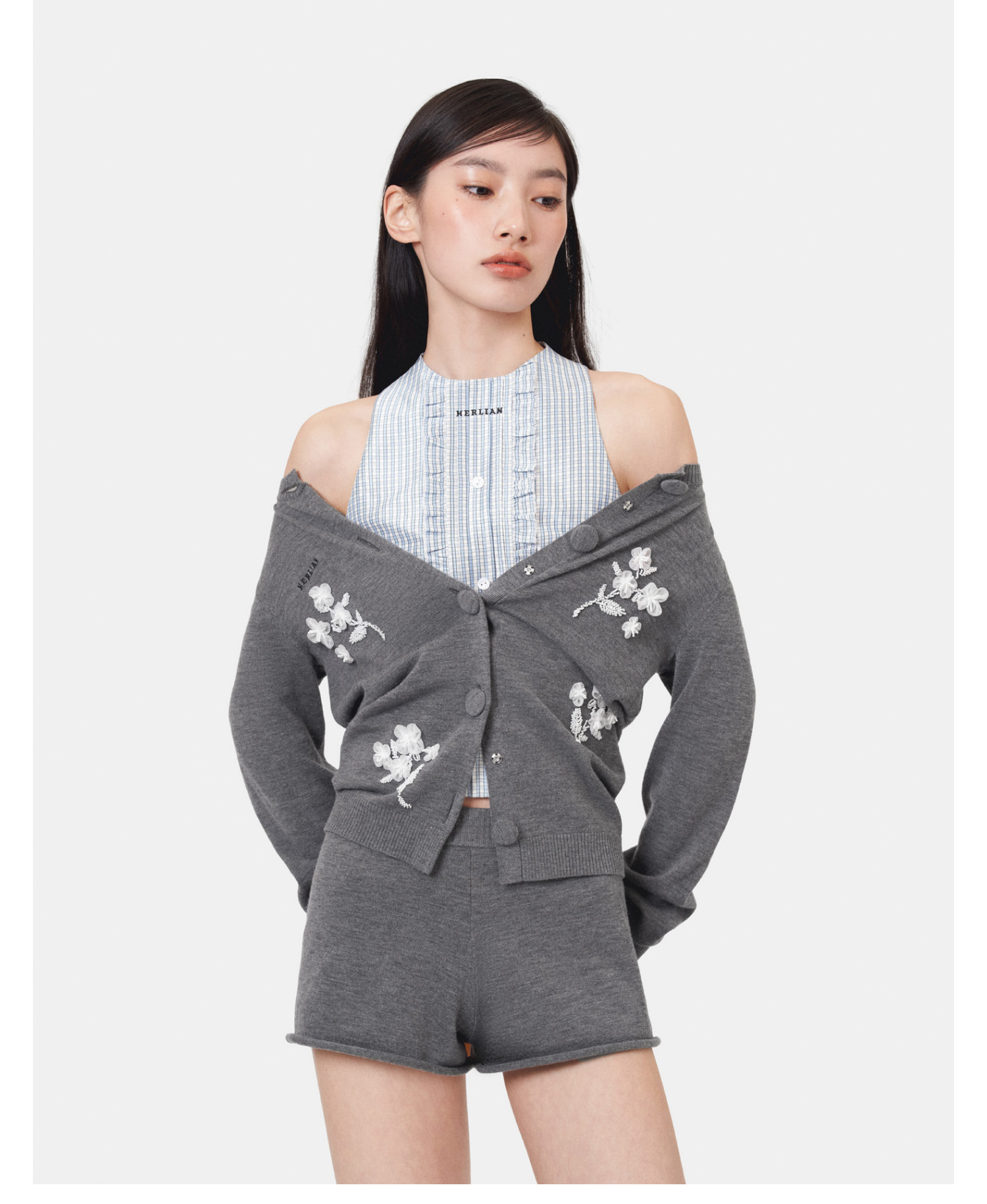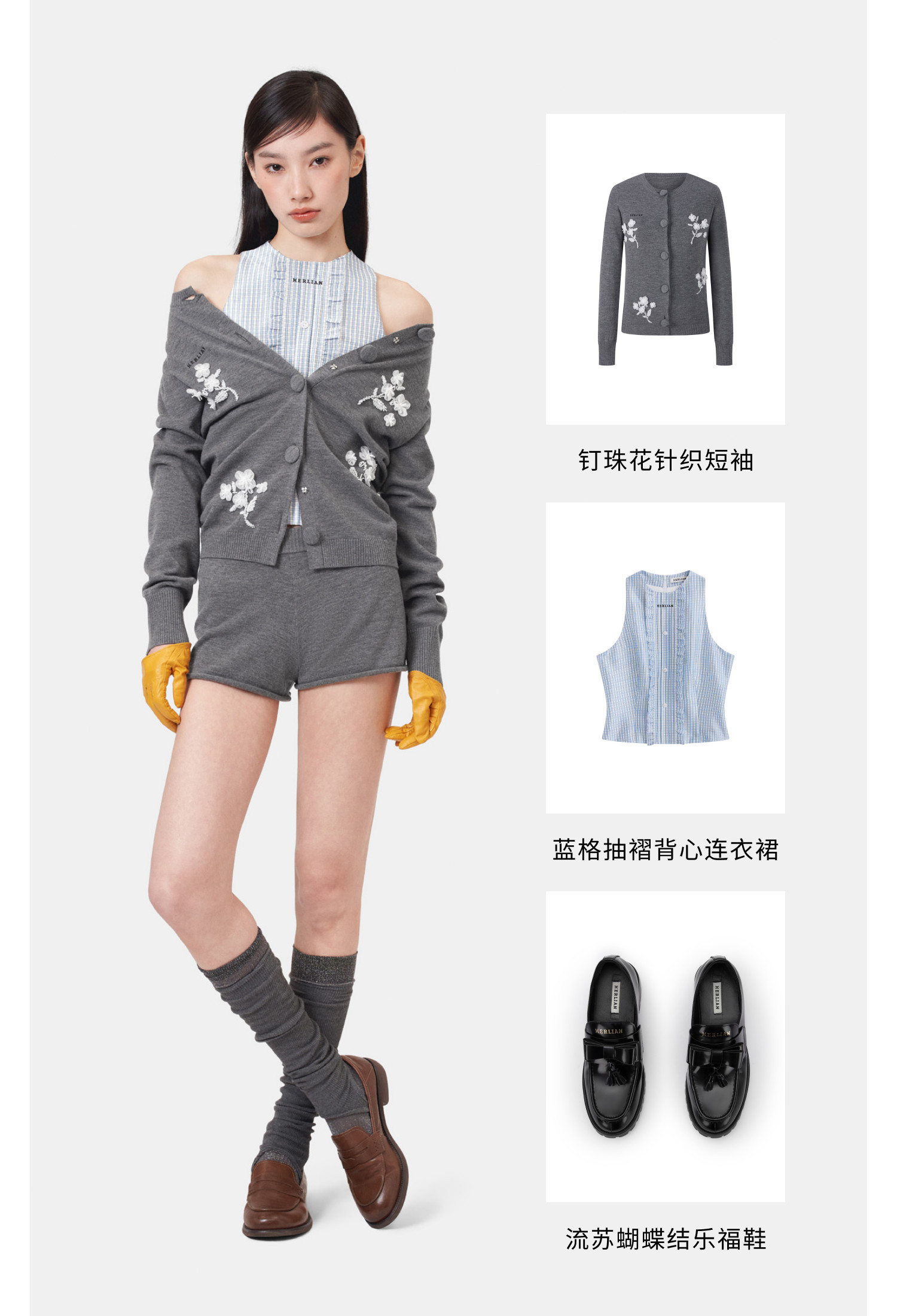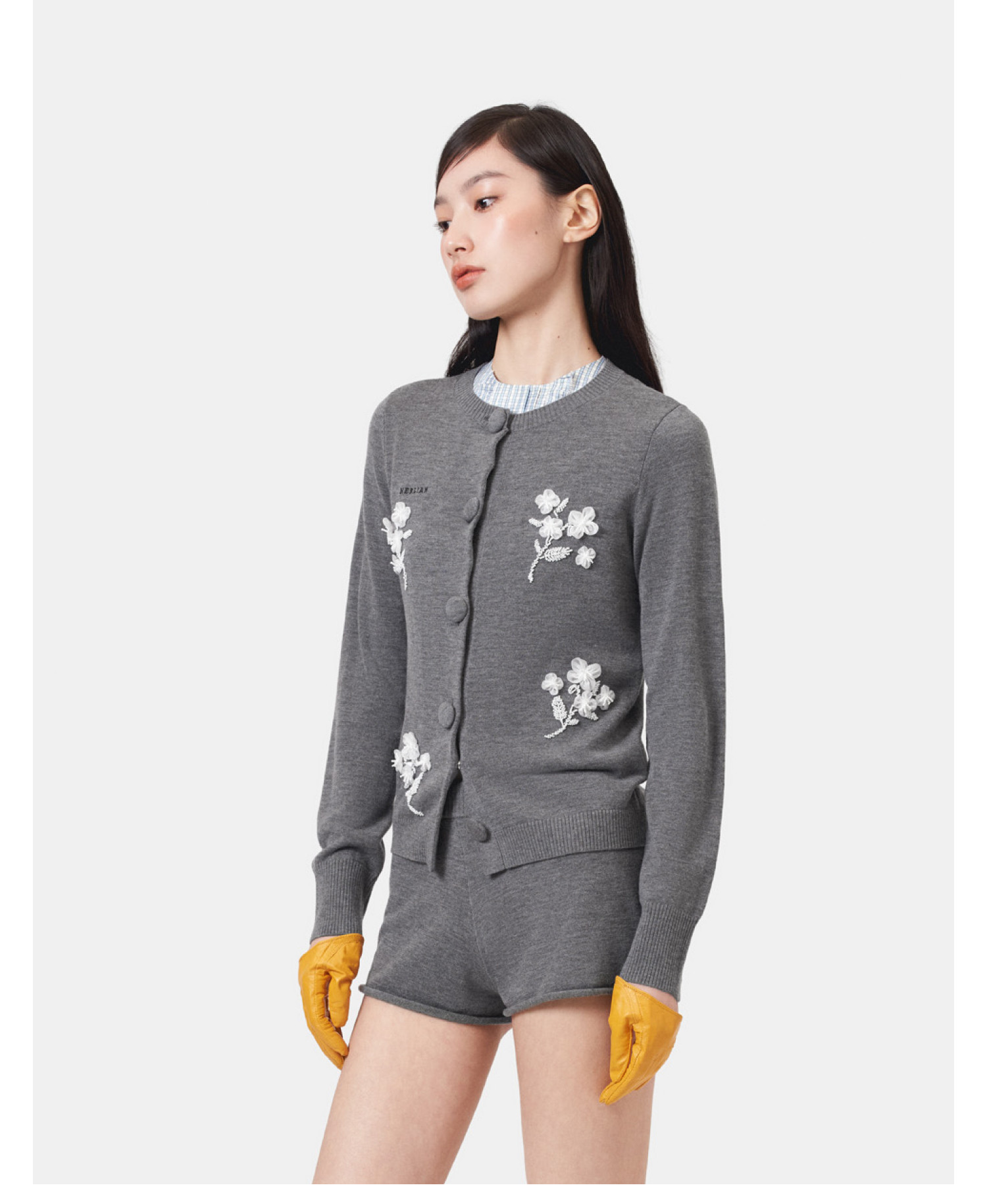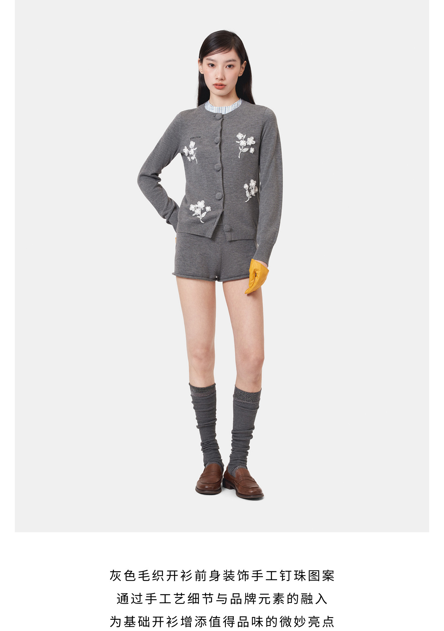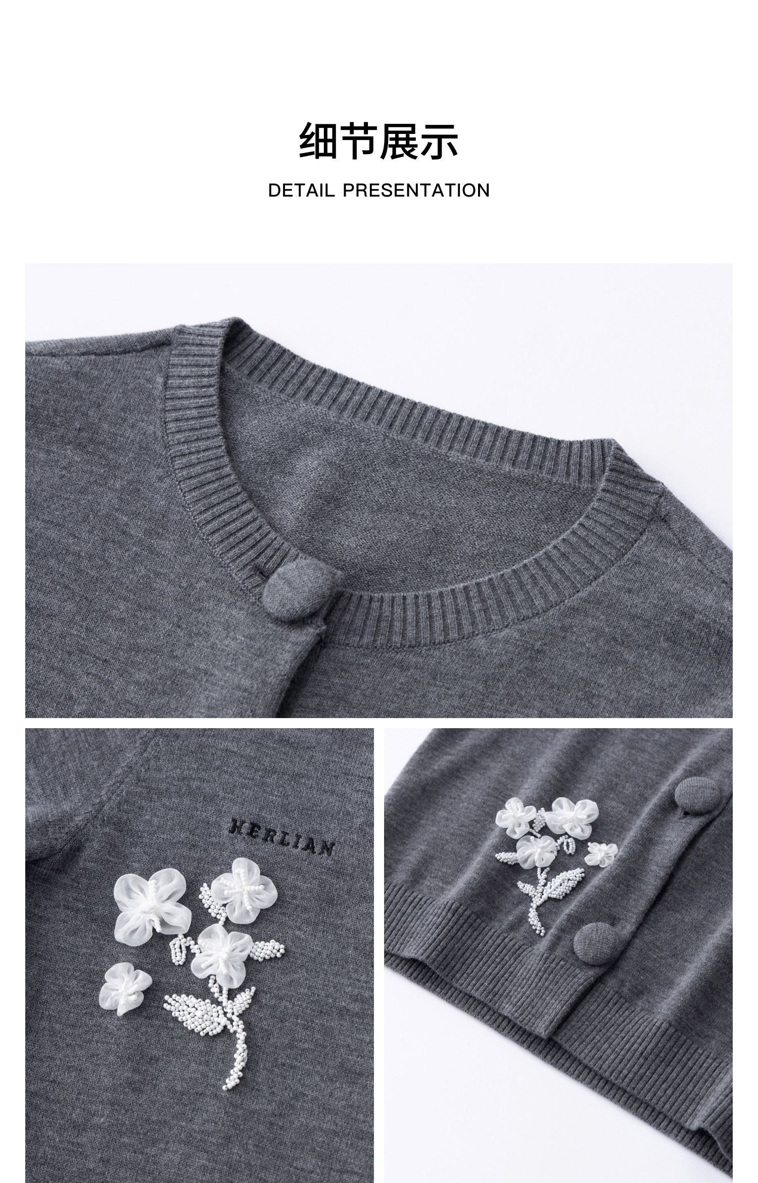 HERLIAN 2026年春季新品钉珠花女士圆领针织长袖开衫