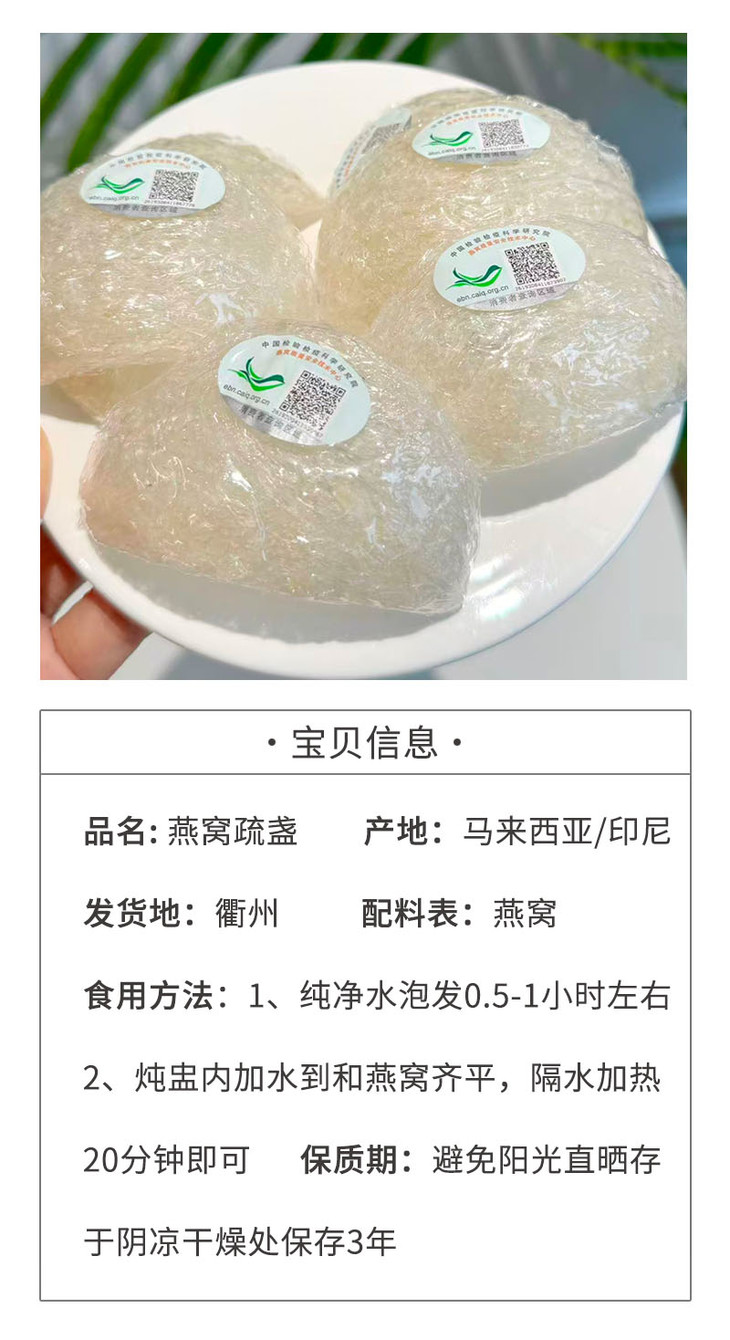 是工人纯手工挑毛,保留燕窝原始形态,无刷胶、无漂白,品质纯净
