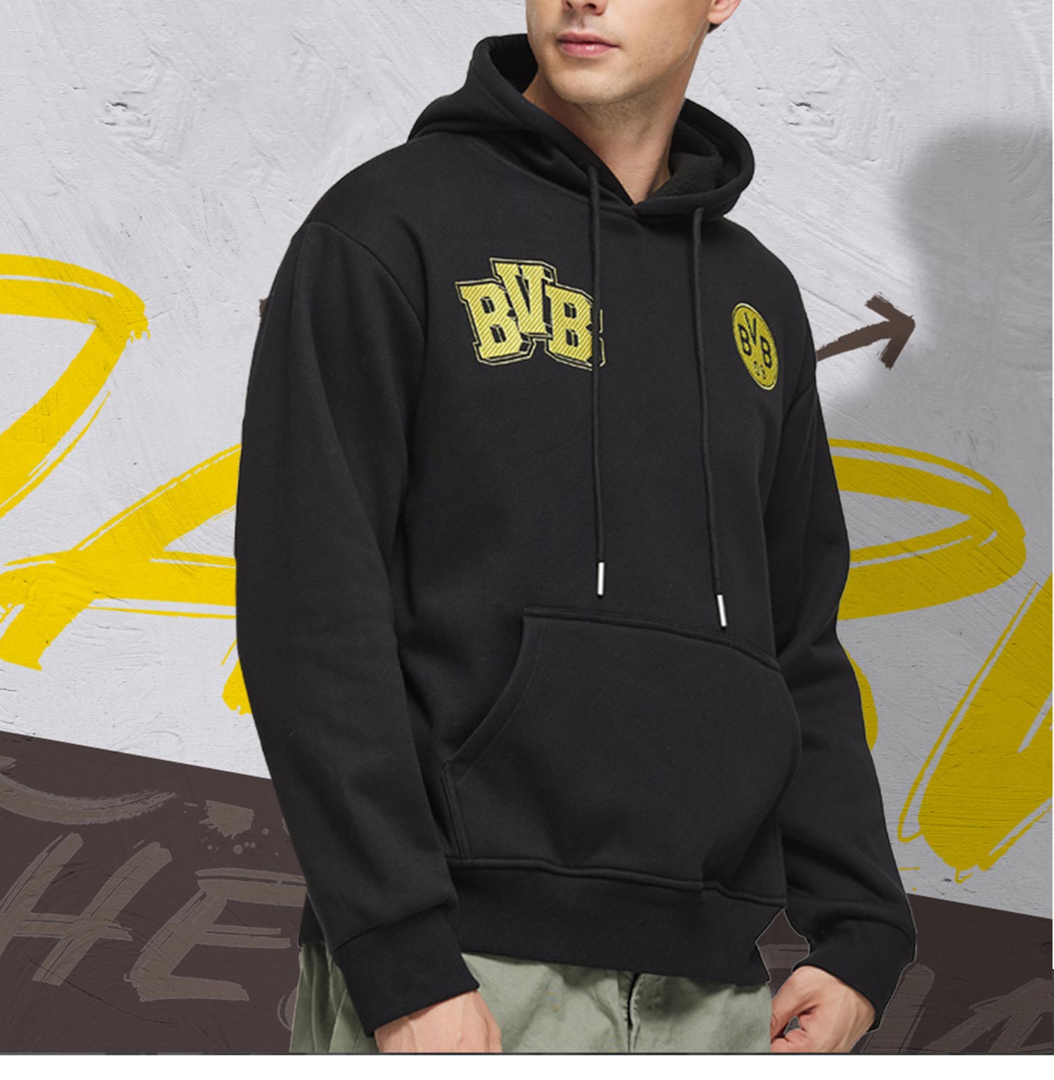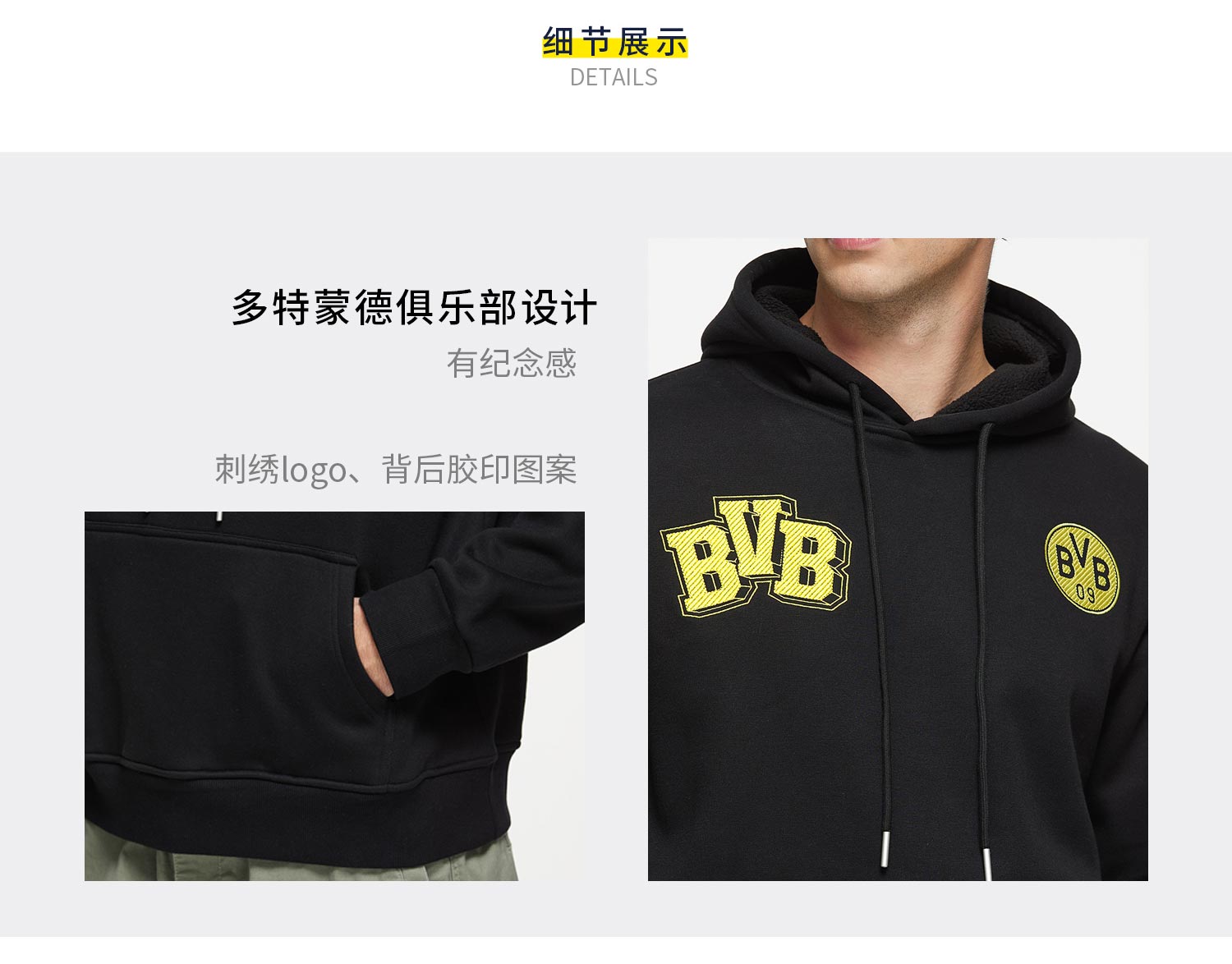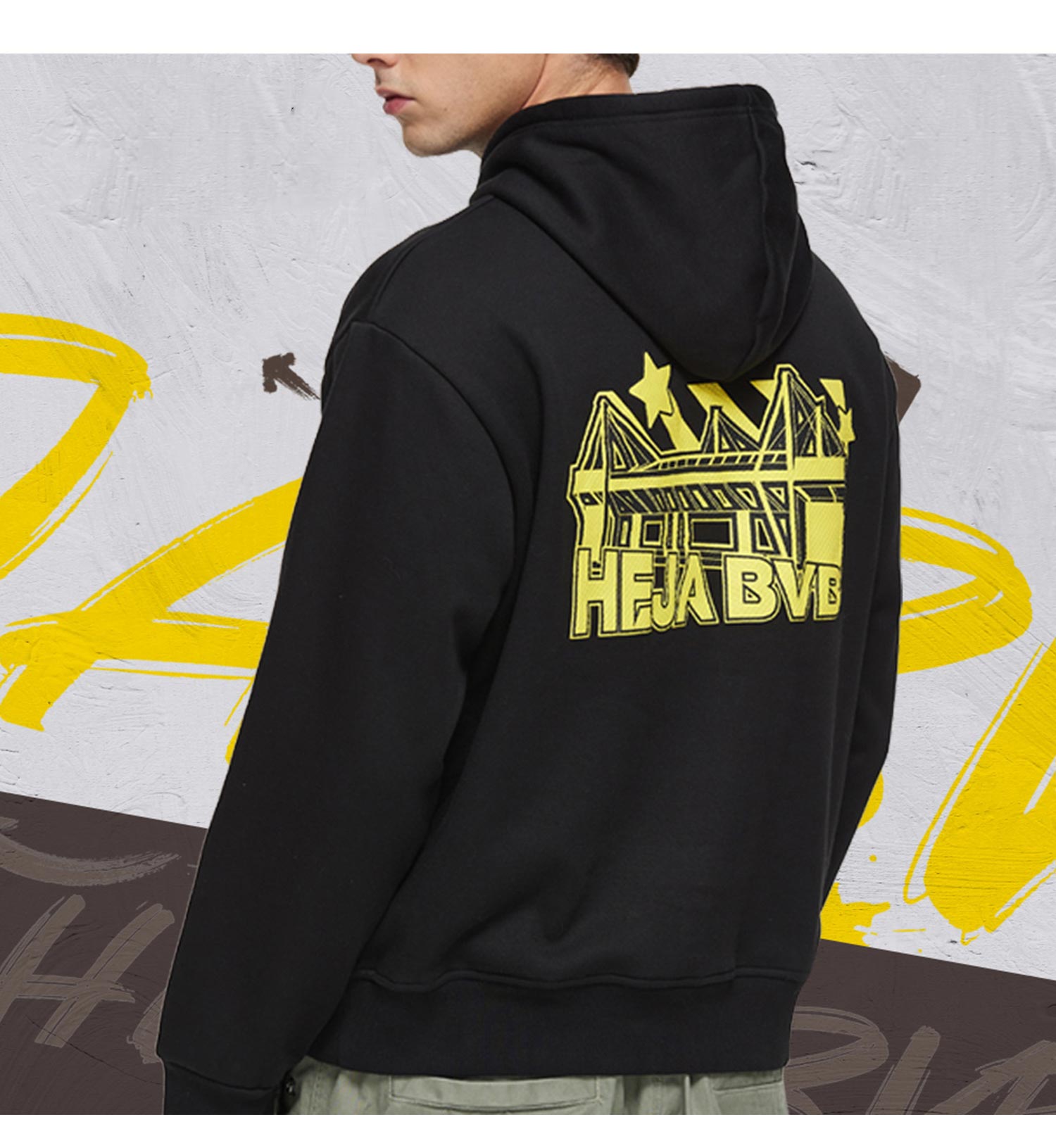 【官方正版】多特蒙德足球俱乐部|BVB黑色卫衣球迷主场帽衫