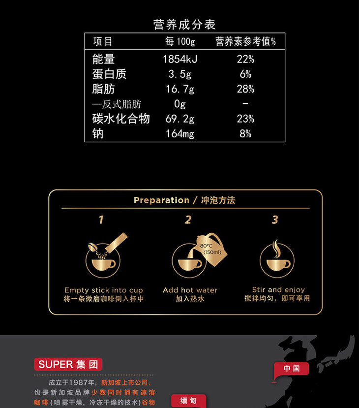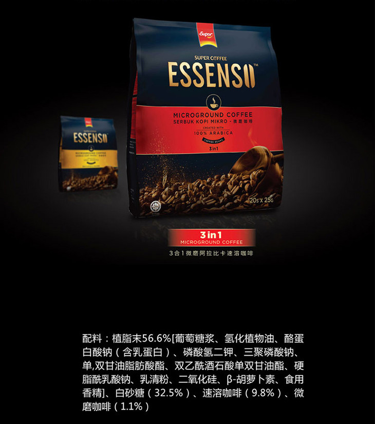 马来西亚L'ORESSENSO艾昇斯三合一500g/二合一320g含微研磨速溶咖啡(固体饮料) 微磨咖啡与速溶咖啡结合的美妙享受 020002/020003