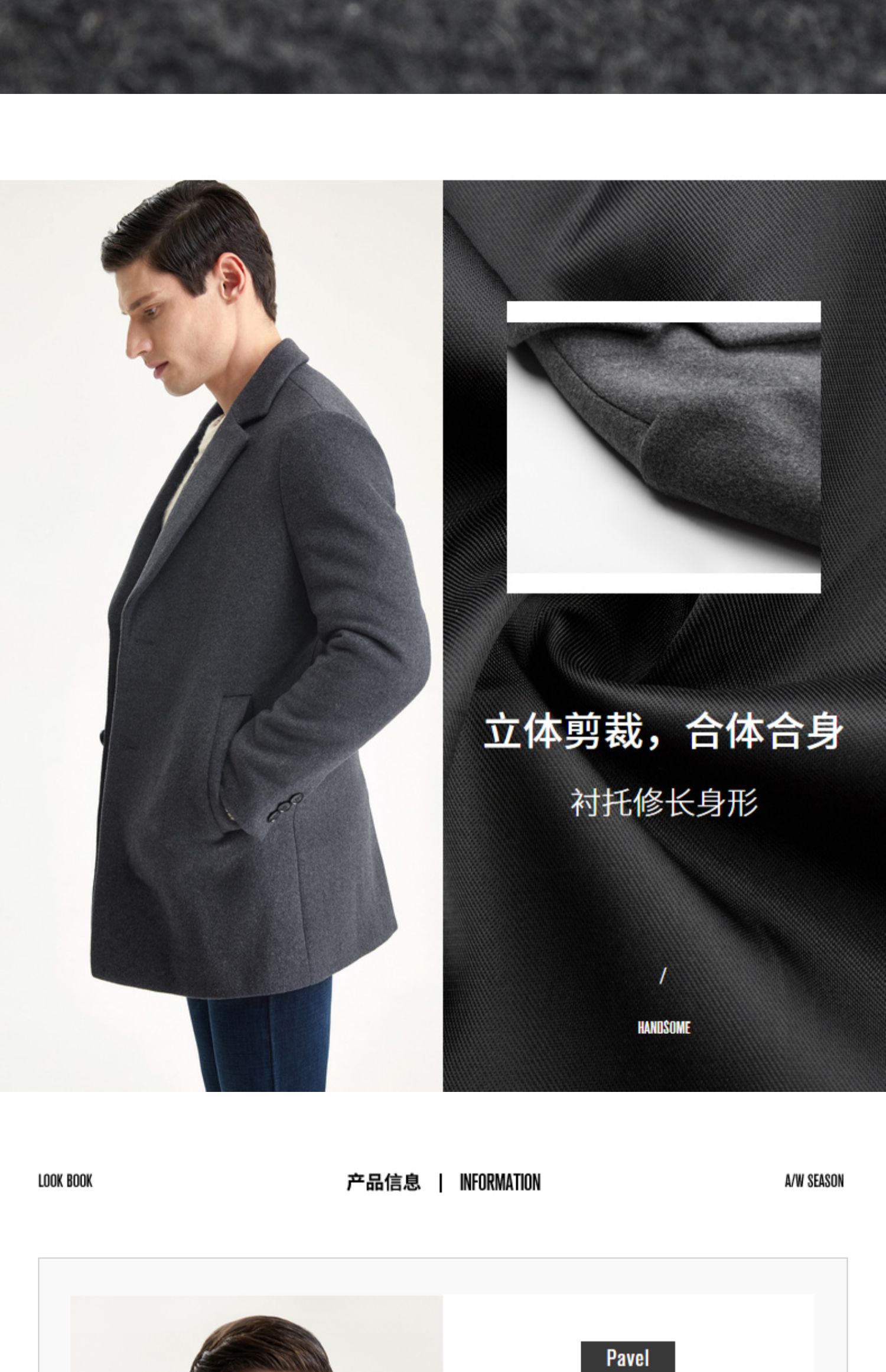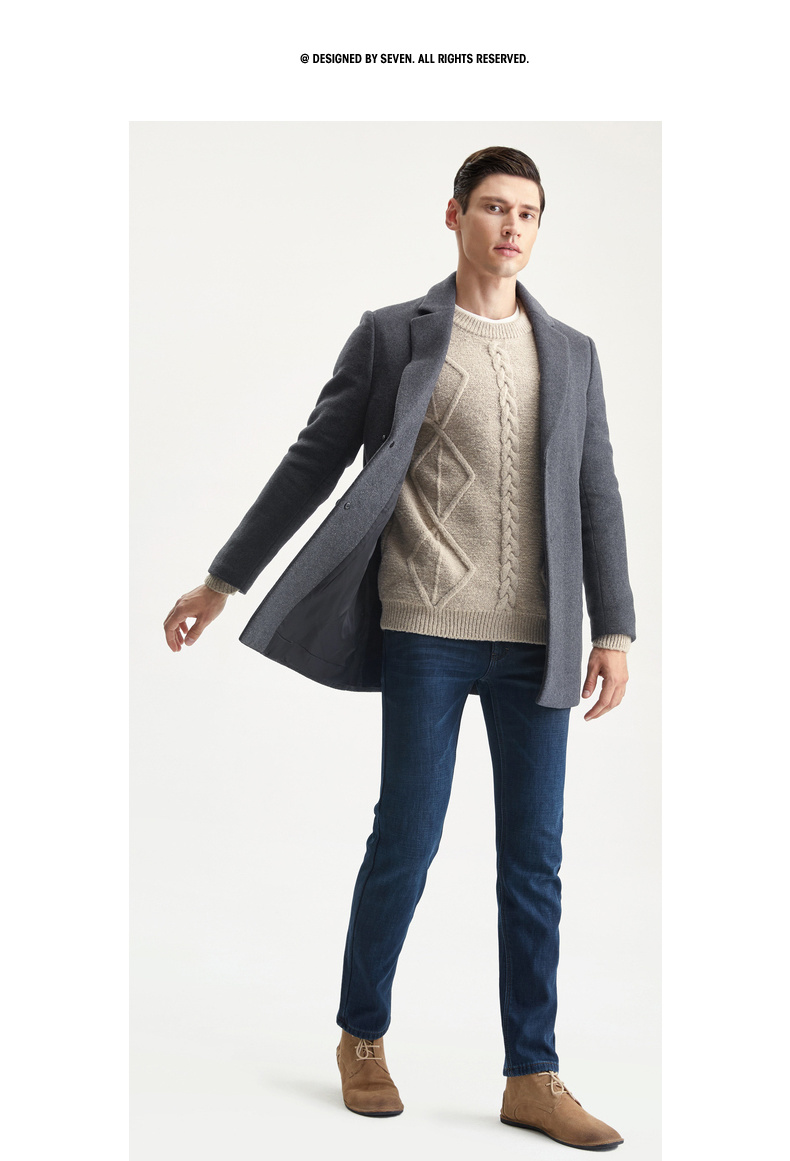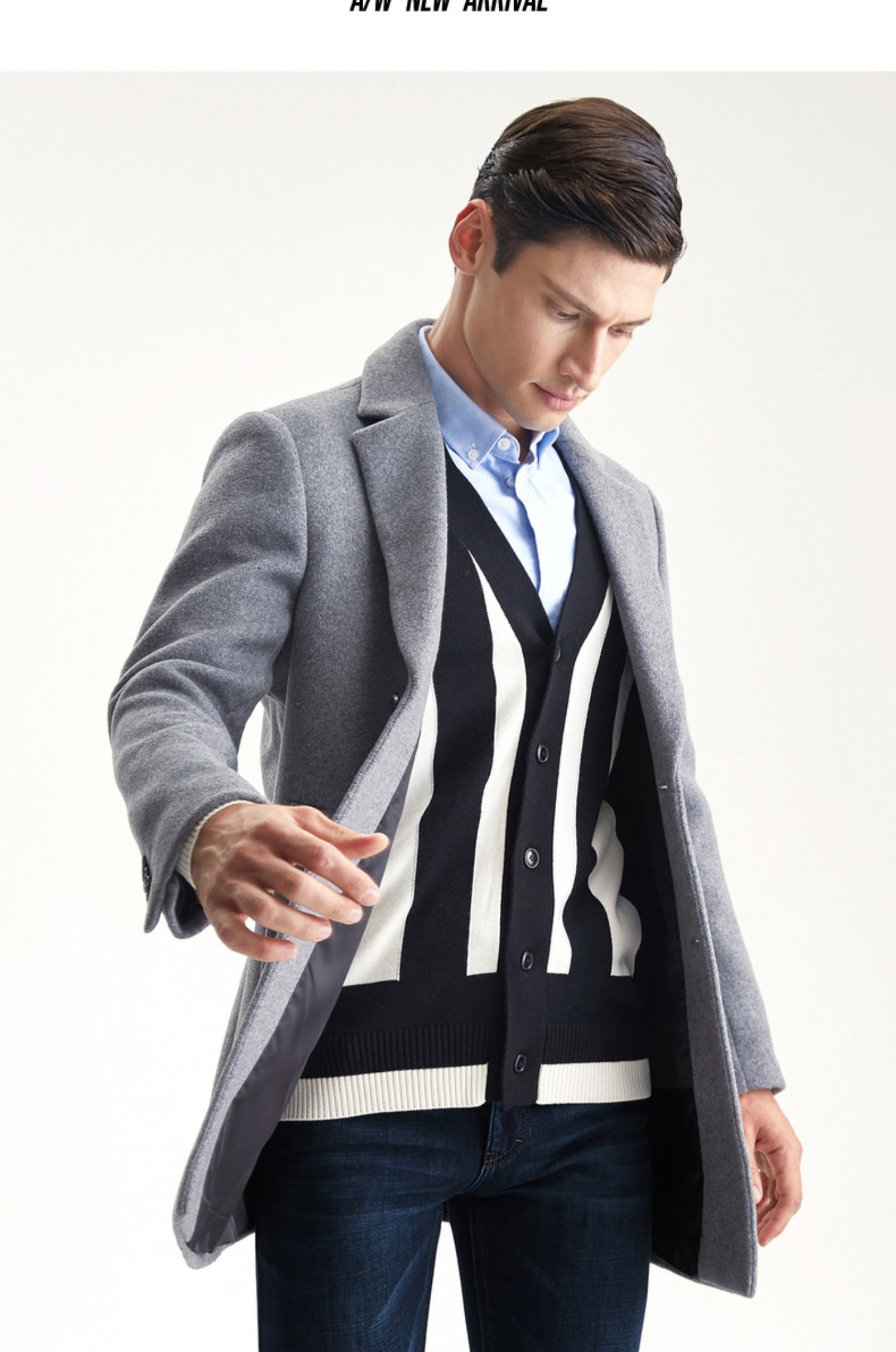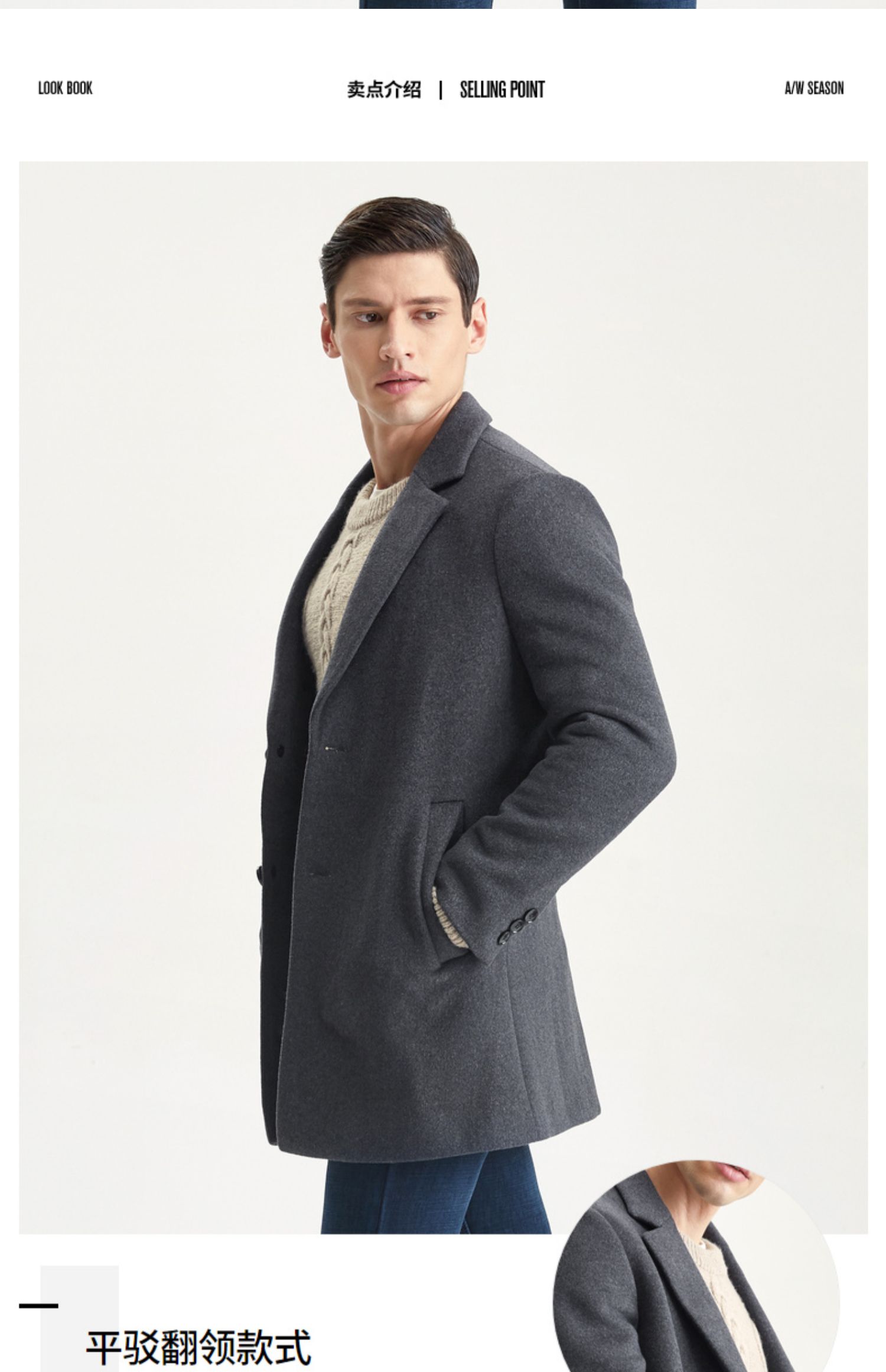 【特价】柒牌男装秋冬新品毛呢大衣商务休闲潮流男士时尚呢子外套 117D70110