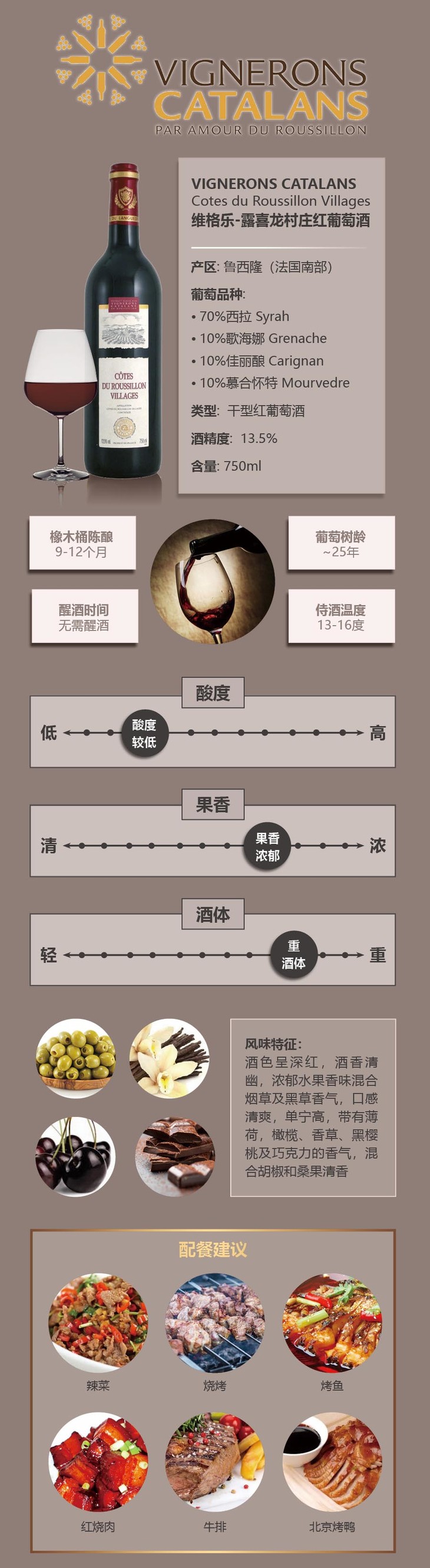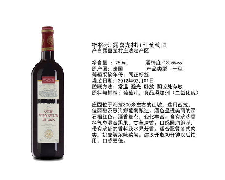 整箱特惠装 维格乐-露喜龙村庄红葡萄酒 6*Vignerons Catalans, Cotes du Roussillon Village 750mL