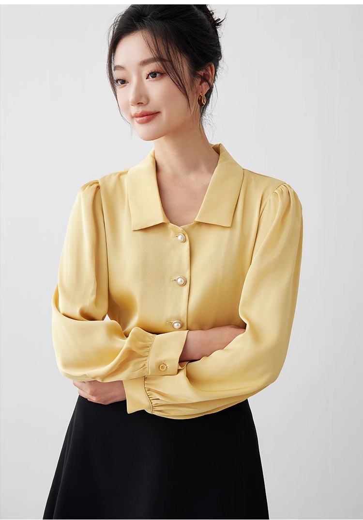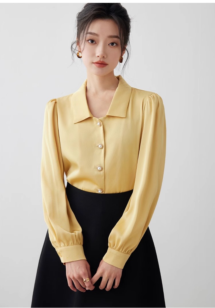 IWY/职业黄色衬衫女春季新款正装通勤女装教师工装衬衣高级感B0481