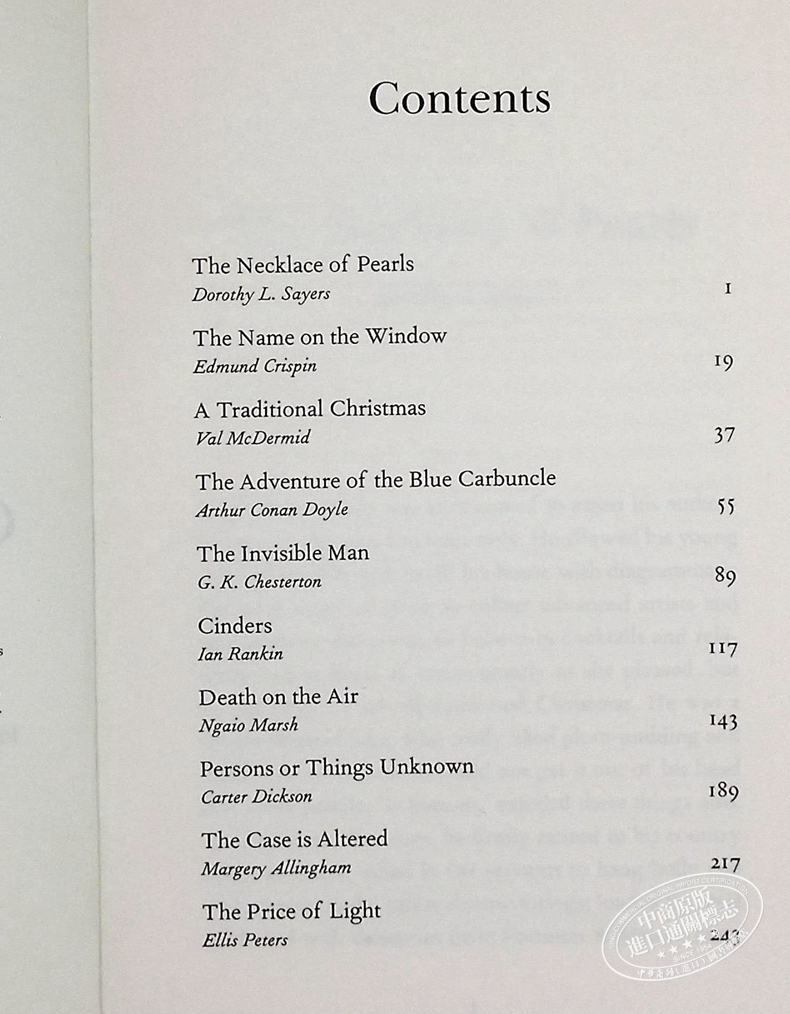 Featuring stories by Arthur Conan Doyle, Ngiao Marsh, Ellis Peters, Ian Rankin, Val McDermid, Edmund Crispin, Dorothy L Sayers, Carter Dickson, Margery Allingham and GK Chesterton.