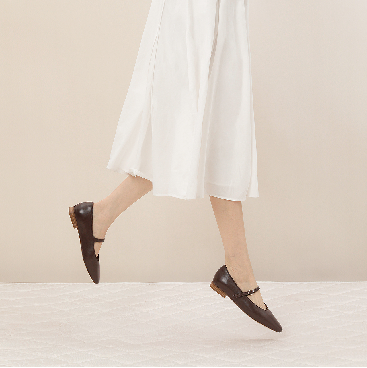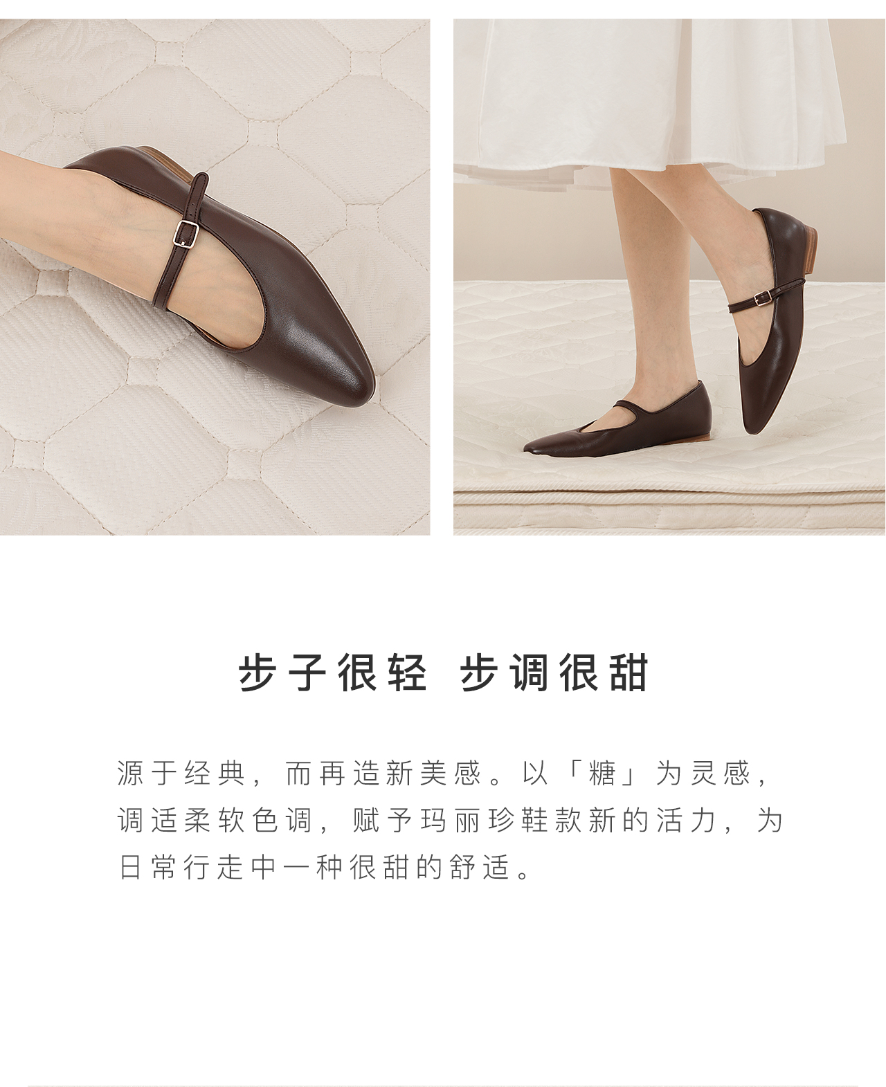 7or9玛丽珍小床垫平底鞋 - 咖啡糖
