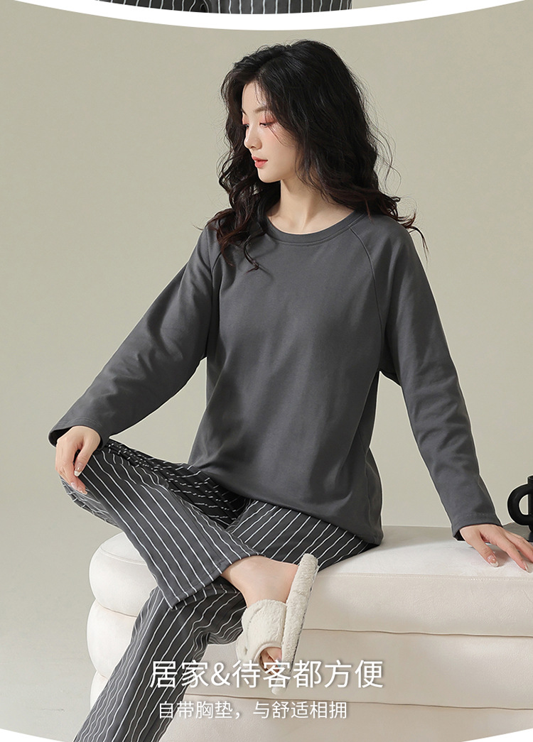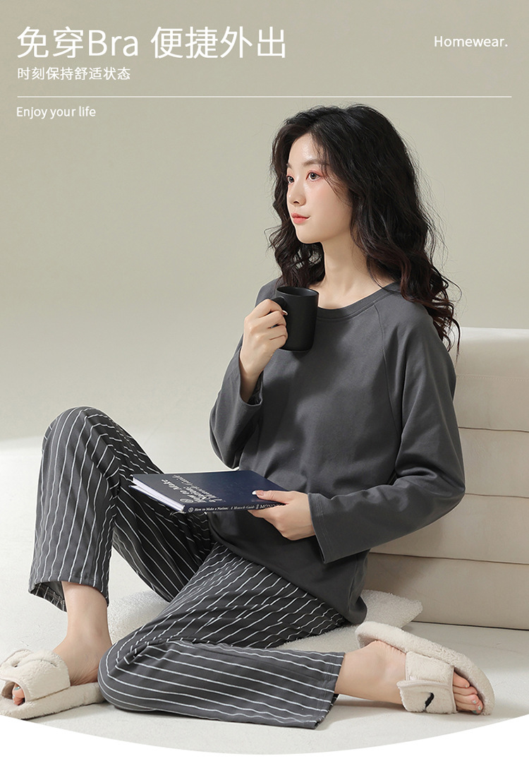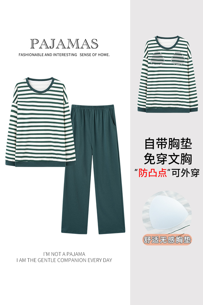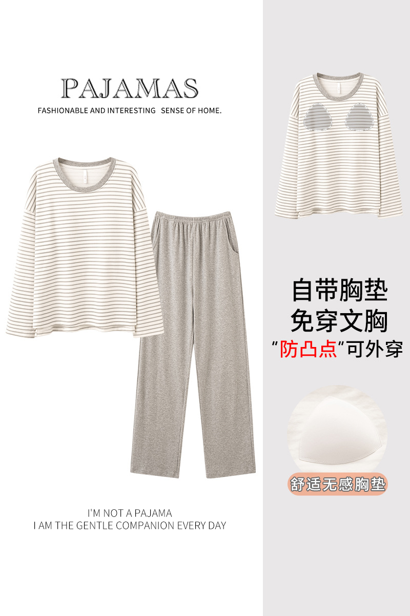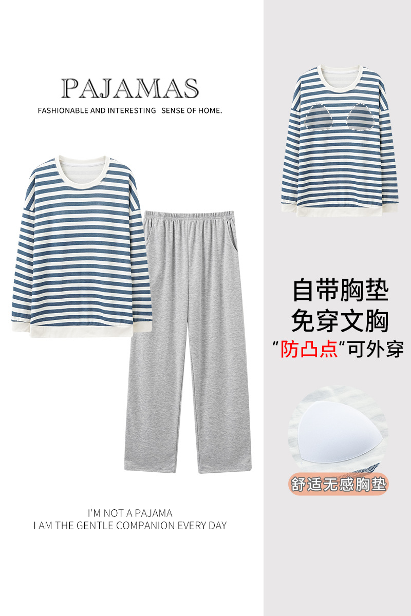 【免穿内衣家居服睡衣】可外穿女士睡衣套装 针织棉带胸垫家居服