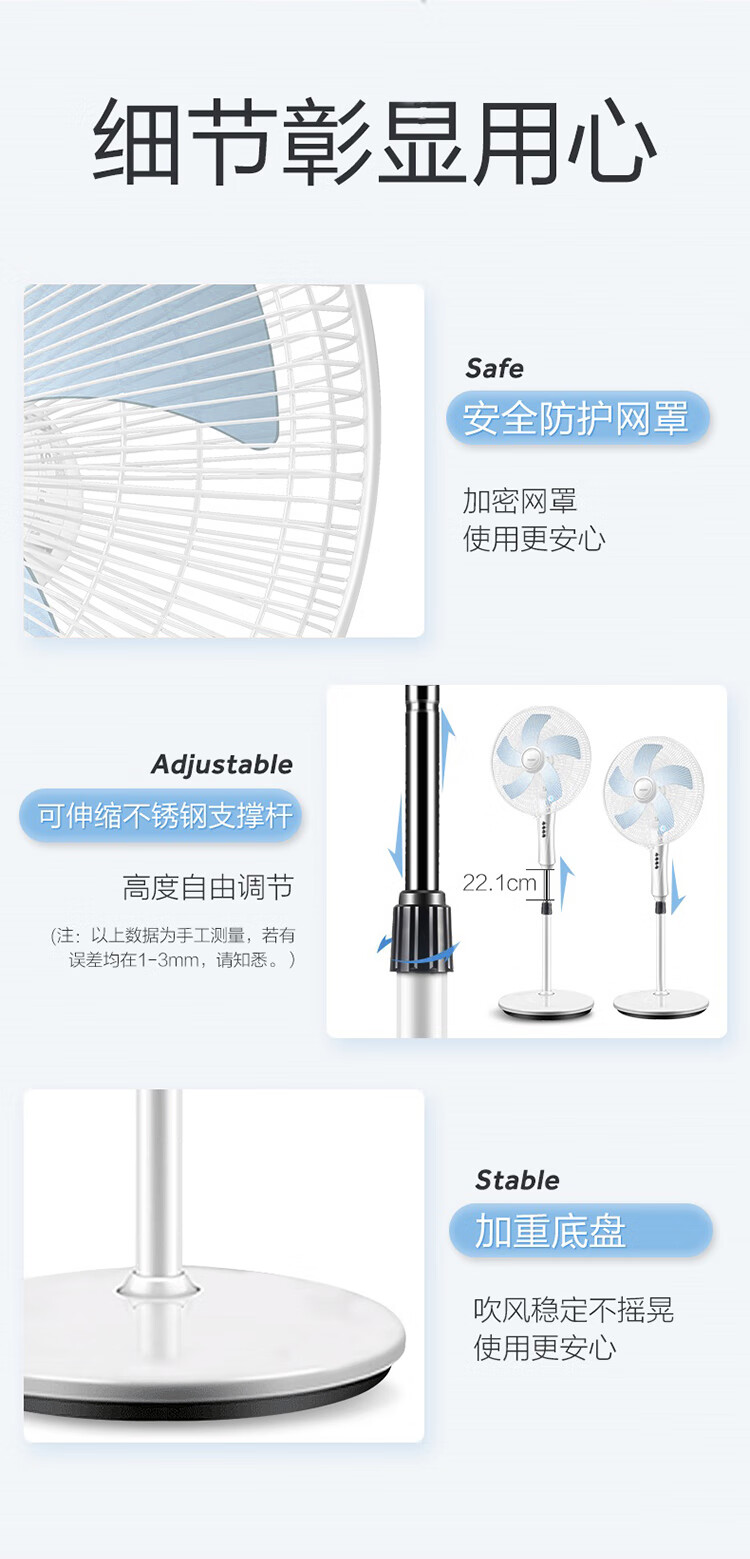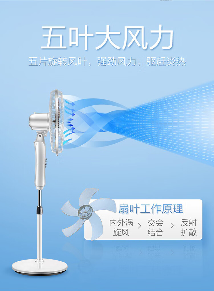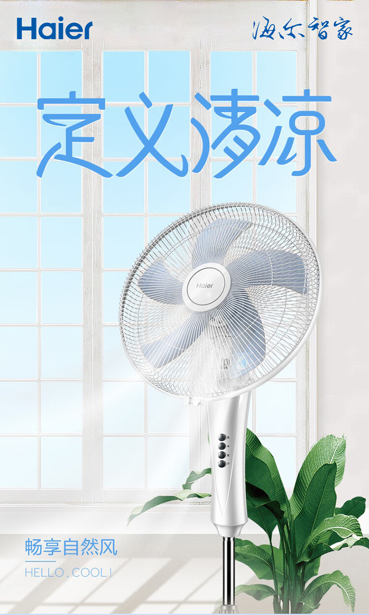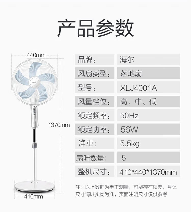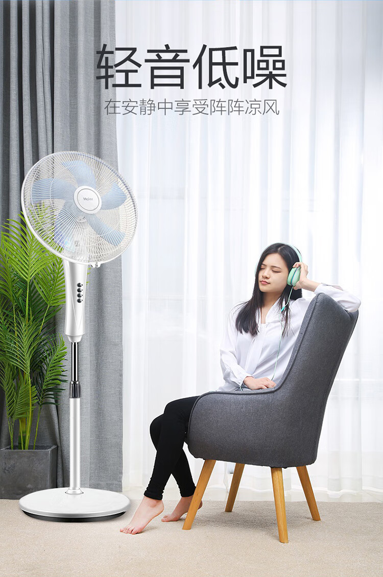 海尔(Haier)落地电风扇家用立式轻音低躁五叶三挡强风办公室宿舍XLJ4001A