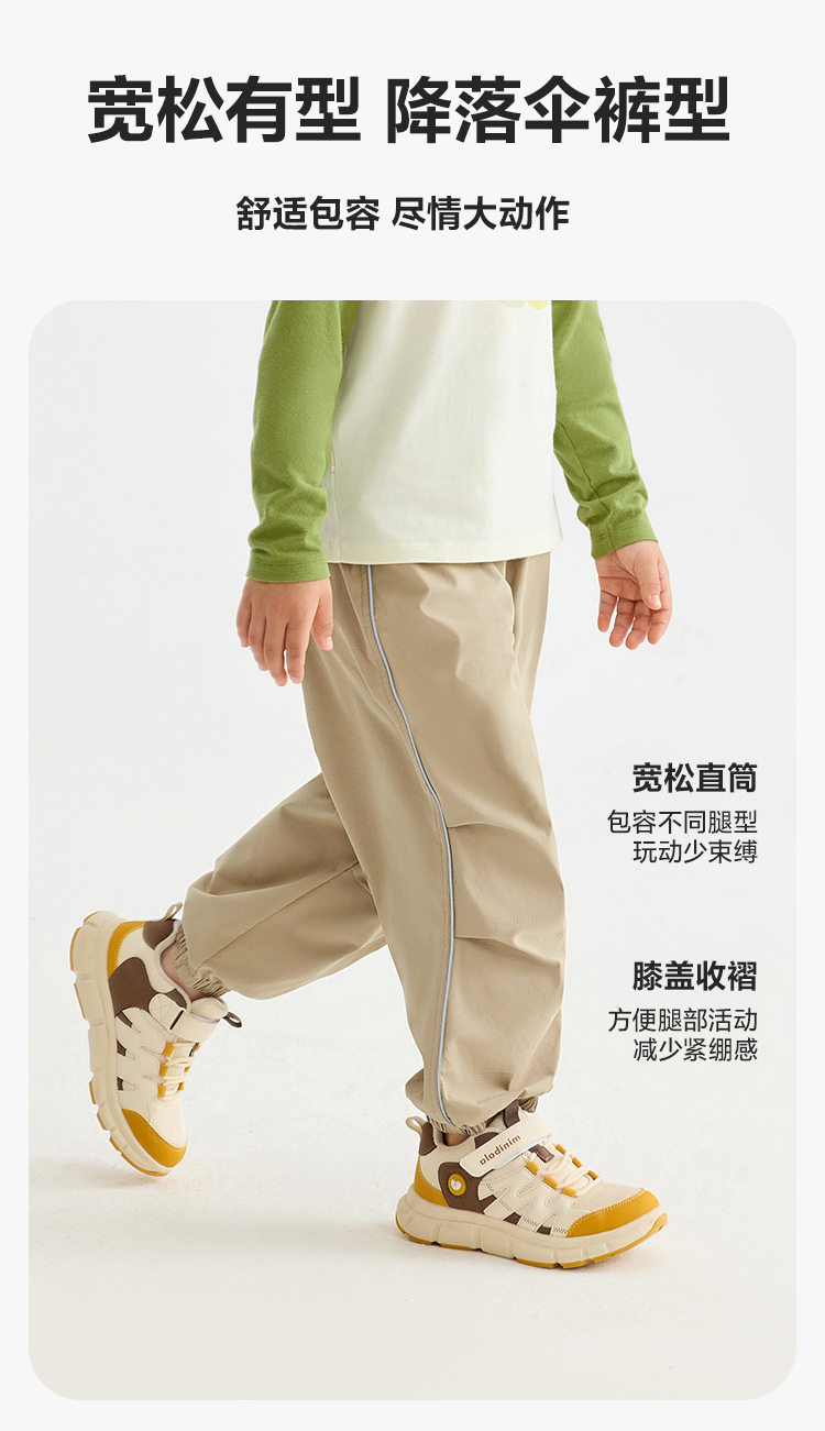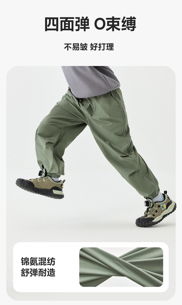 迷你巴拉男女童裤子2025春新品儿童户外弹力伞兵裤直筒裤